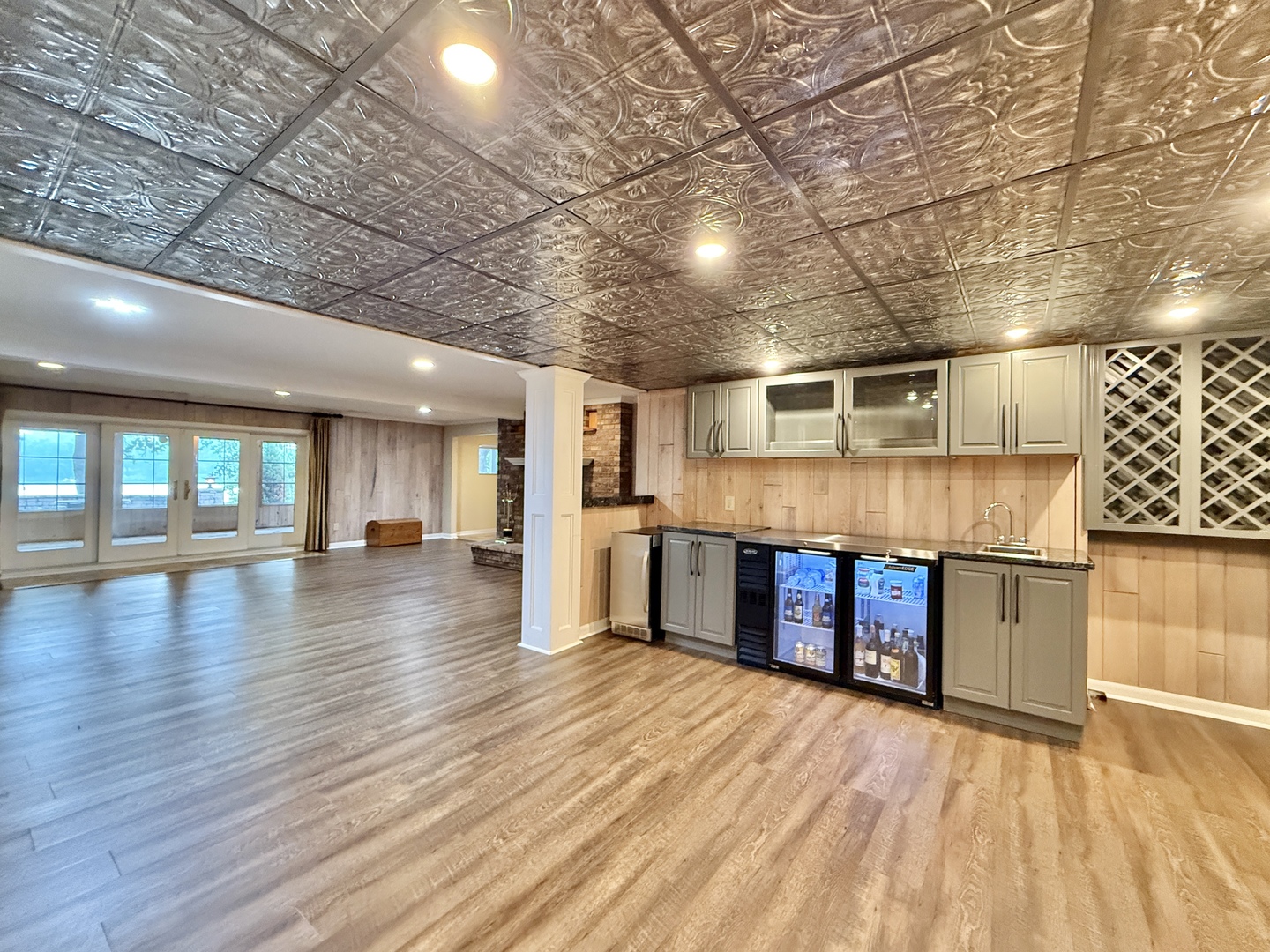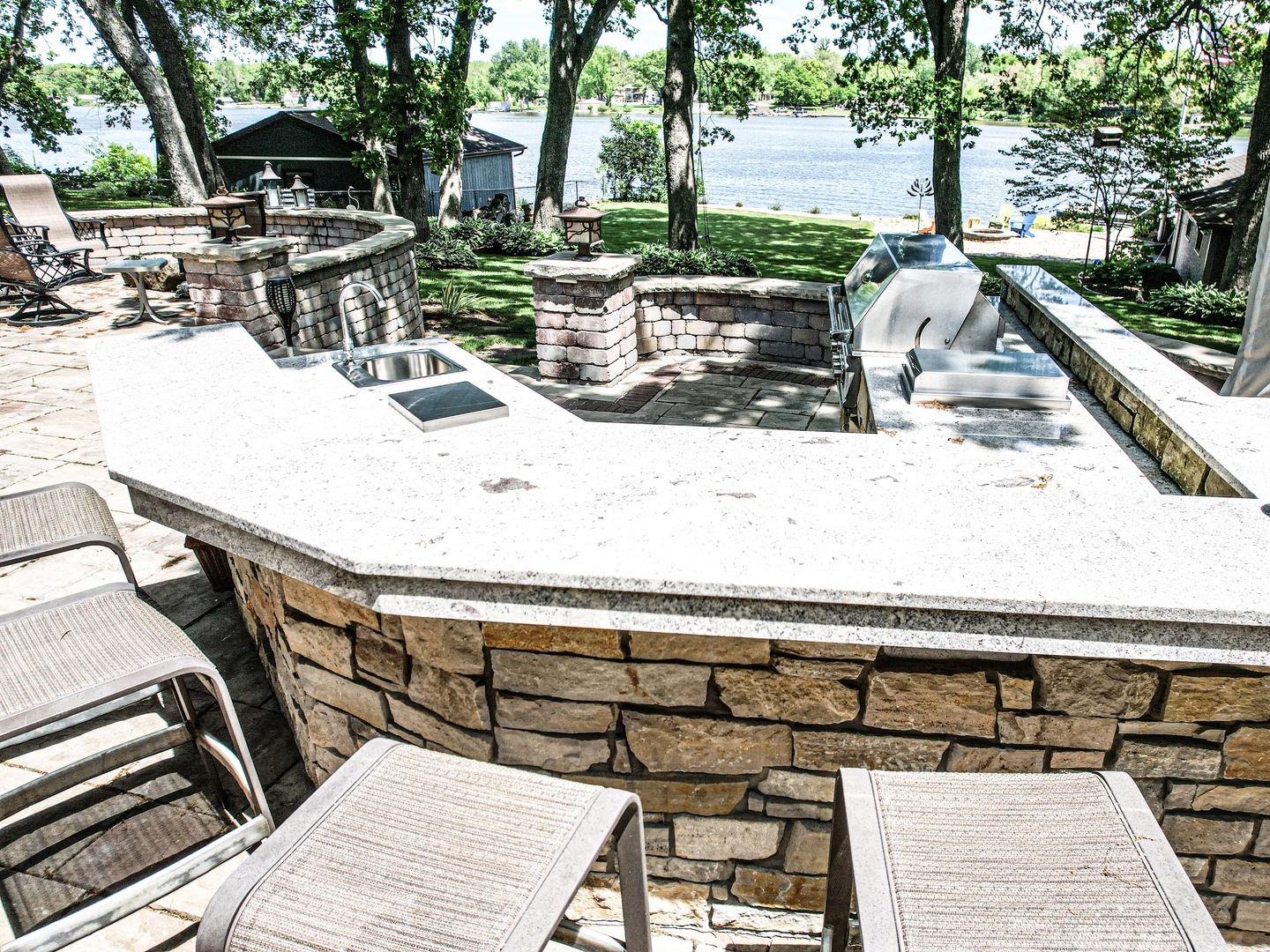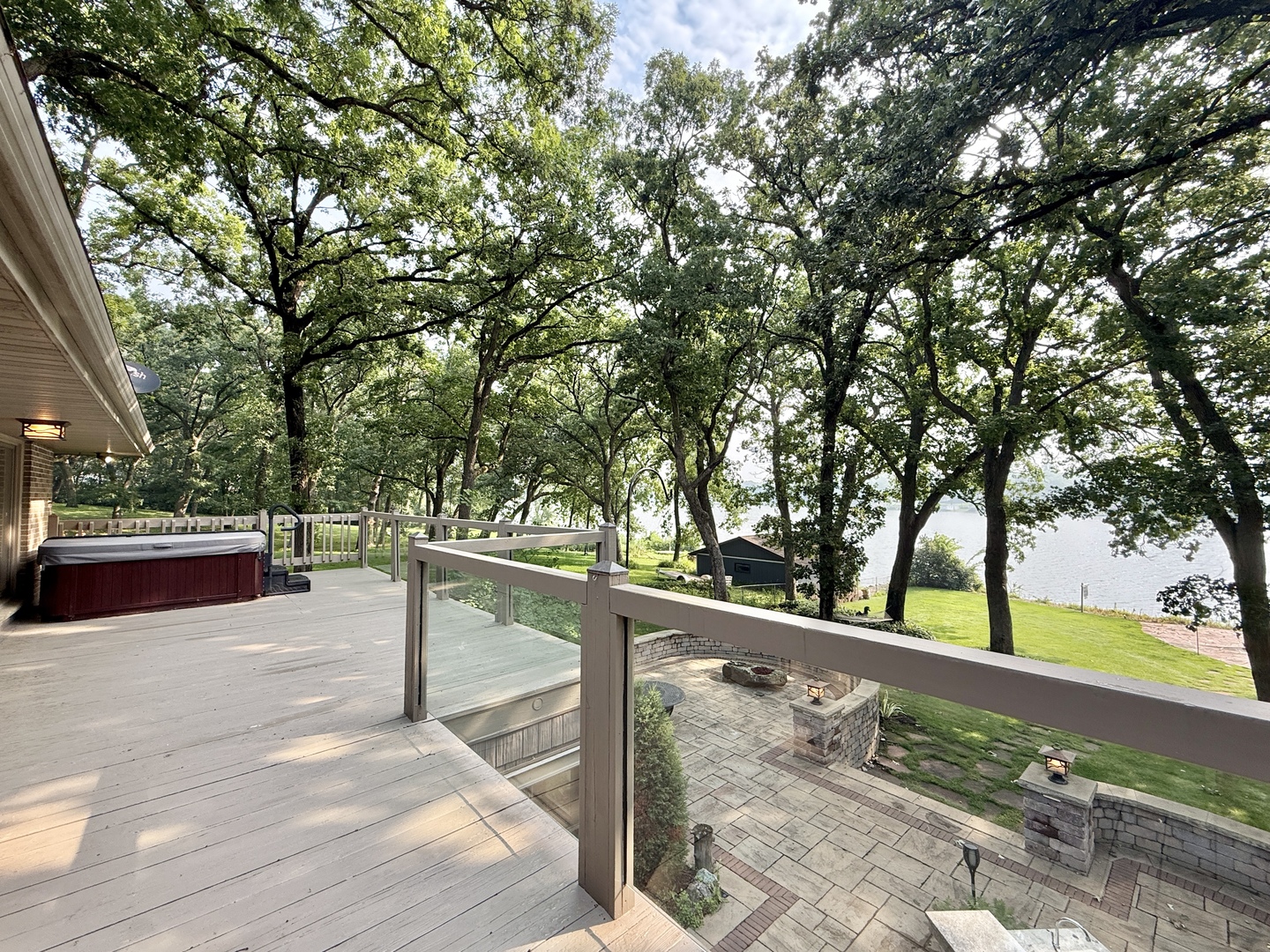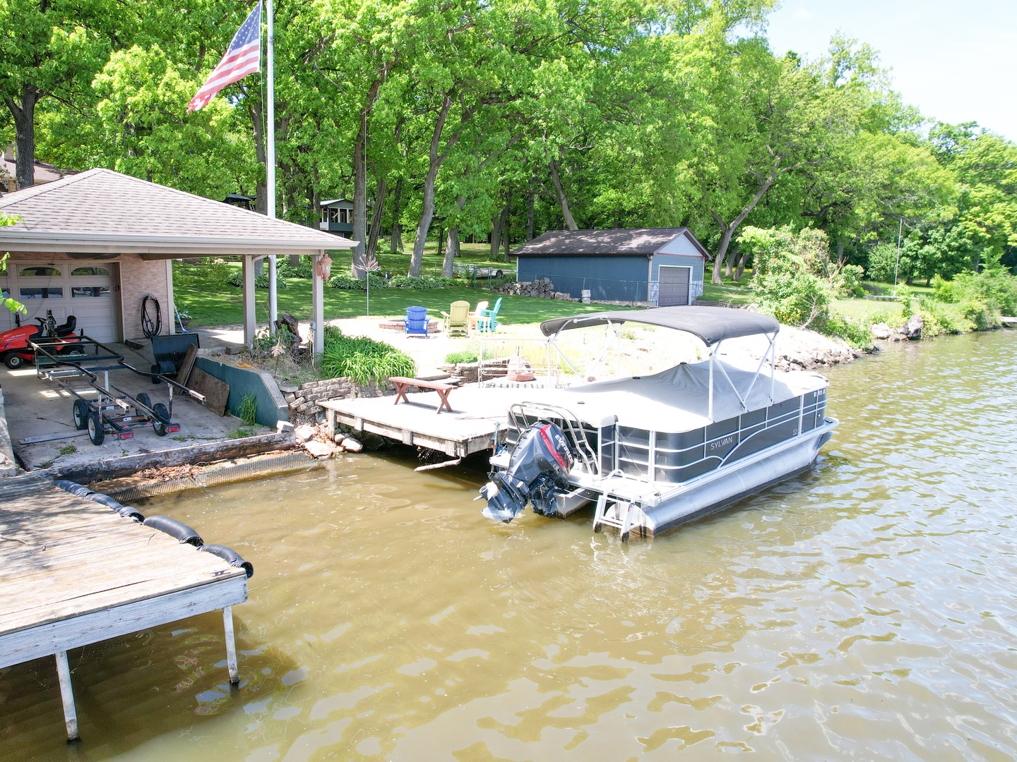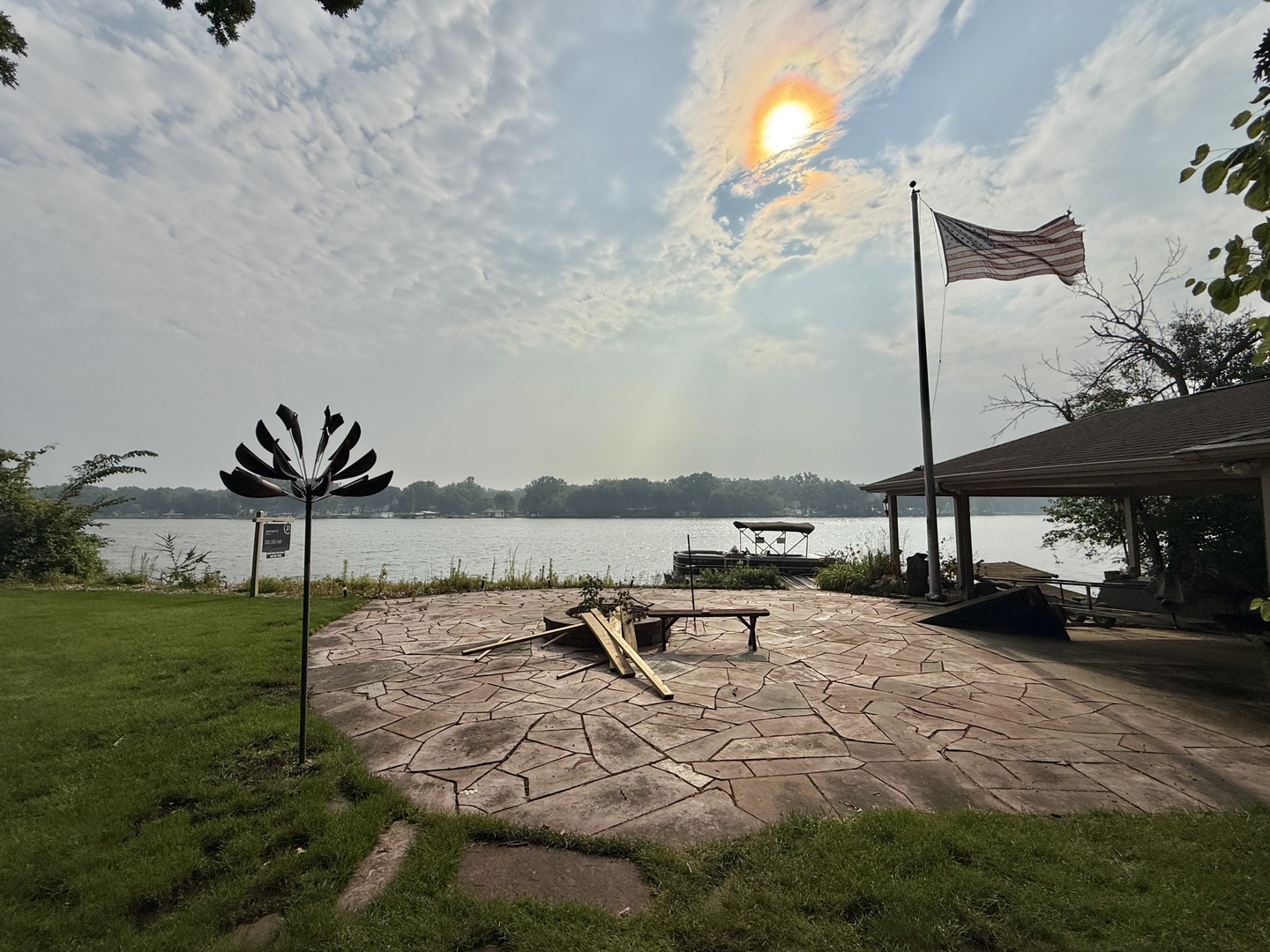 Experience a permanent vacation in this stunning riverside retreat, featuring 97 feet of water frontage on a beautifully landscaped half acre. The home is designed for seamless indoor-outdoor living, where you can watch the sunrise through expansive windows or from the large deck or custom stone patio w/ a lovely water-fire feature. Inside, the upscale kitchen with a massive granite island flows into a cozy living room anchored by a wood-burning fireplace. The walk-out lower level is built for entertaining, boasting a rec room with a second fireplace, wet bar, and a peaceful three-season room. The outdoor oasis includes a full kitchen with a gas grill, griddle, and sink. For boating enthusiasts, the property offers a large boathouse with a covered ramp, winch, gas, and electric, alongside two wood piers. Fire pit by river. Practical luxury meets durability here, as both the front step and the garage floors feature high-quality TSR coating. This virtually staged home truly has it all. Tax year is really 2025 for Wisconsin. See amenities list in documents.