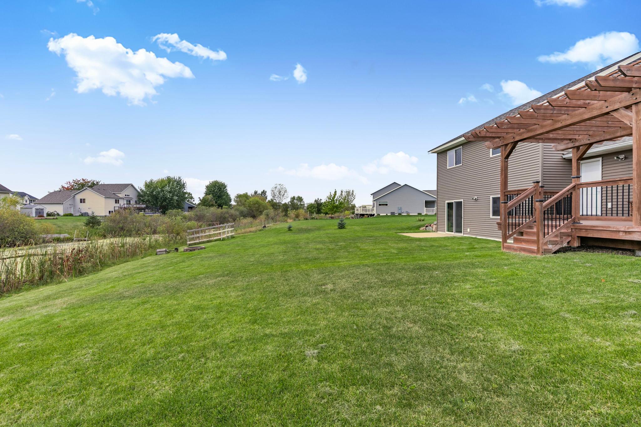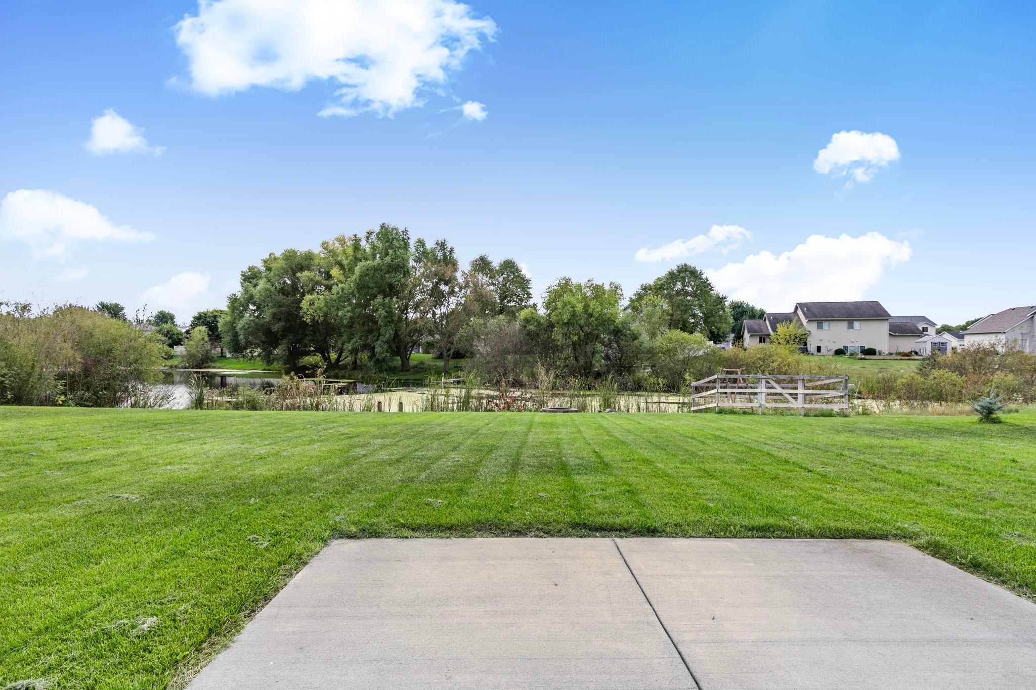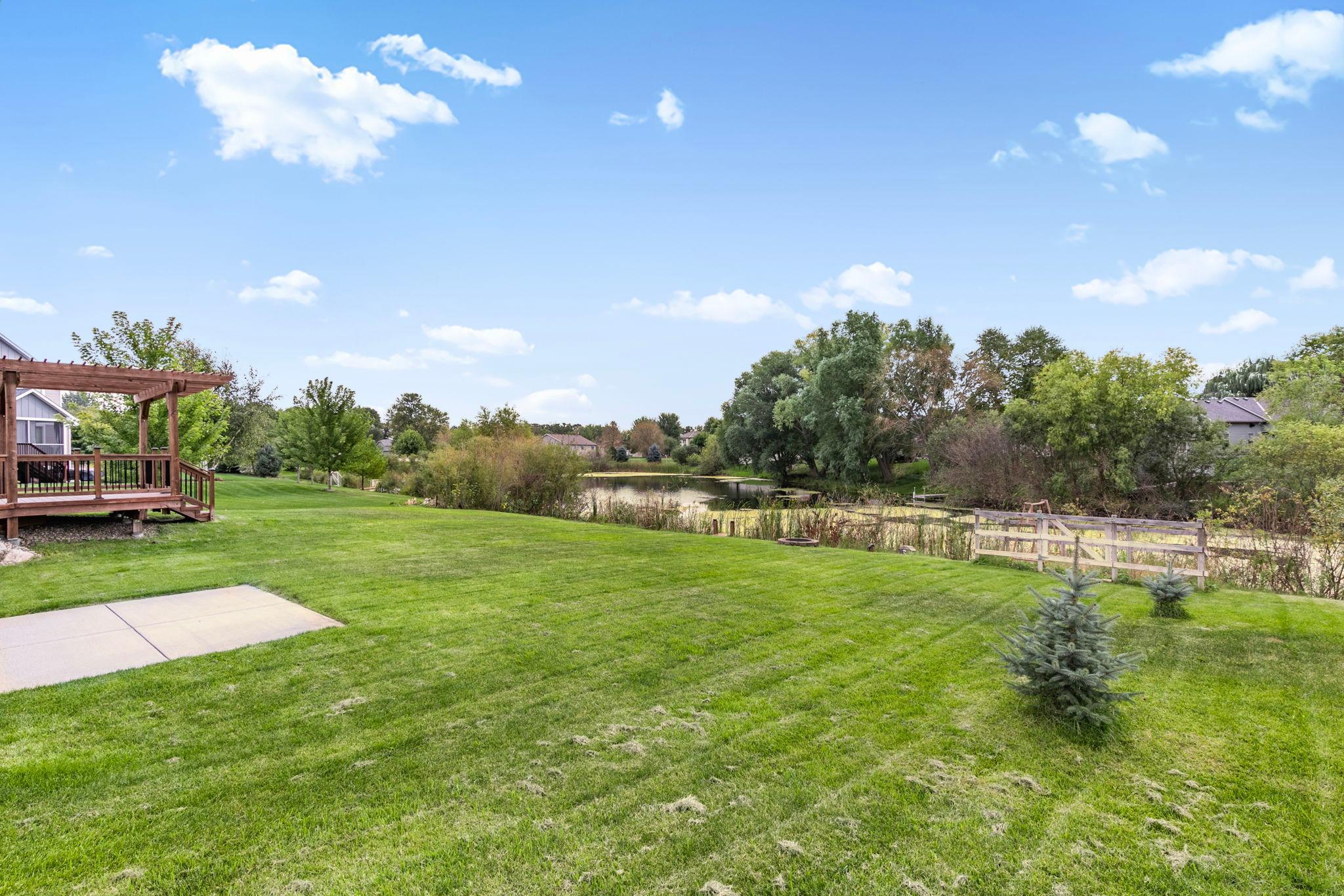 Stunning newer Tri-level walkout home offering 4 bedrooms and 3 bathrooms with beautiful hardwood floors throughout the main floor. The open concept design features vaulted ceilings, a modern kitchen with stainless steel appliances, large center island, and walk-in pantry. Enjoy seamless indoor/outdoor living with a spacious living area that walks out to a large deck with pergola overlooking the pond. The lower level walkout includes a bright family room, additional bedroom, full bath, and access to a concrete patio, perfect for entertaining or relaxing. The private owner's suite boasts a spa-like bath with walk-in shower and generous walk-in closet. Additional highlights include an irrigation system, stylish finishes, 3 car garage and ample storage. Nestled on a beautiful lot with serene pond views, this home combines modern comfort with an unbeatable setting.