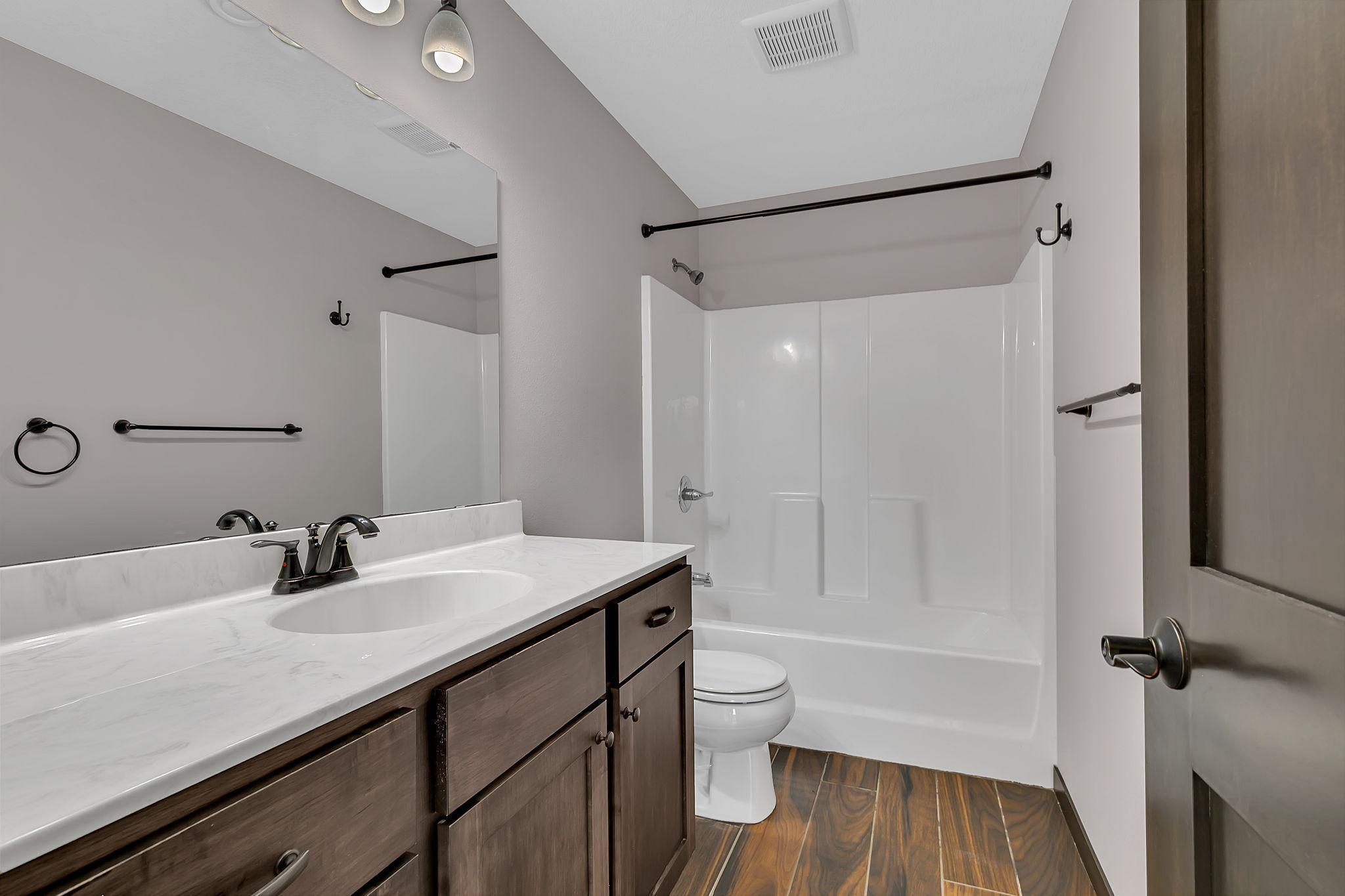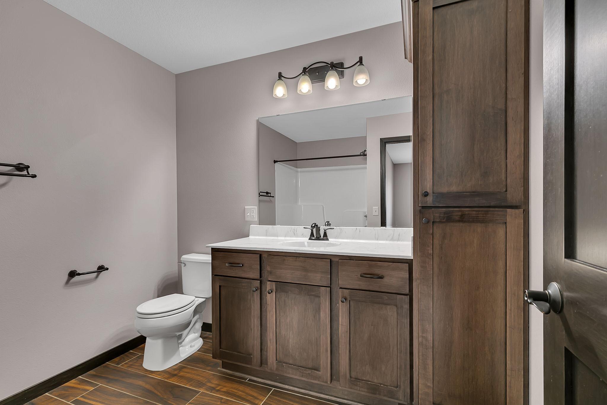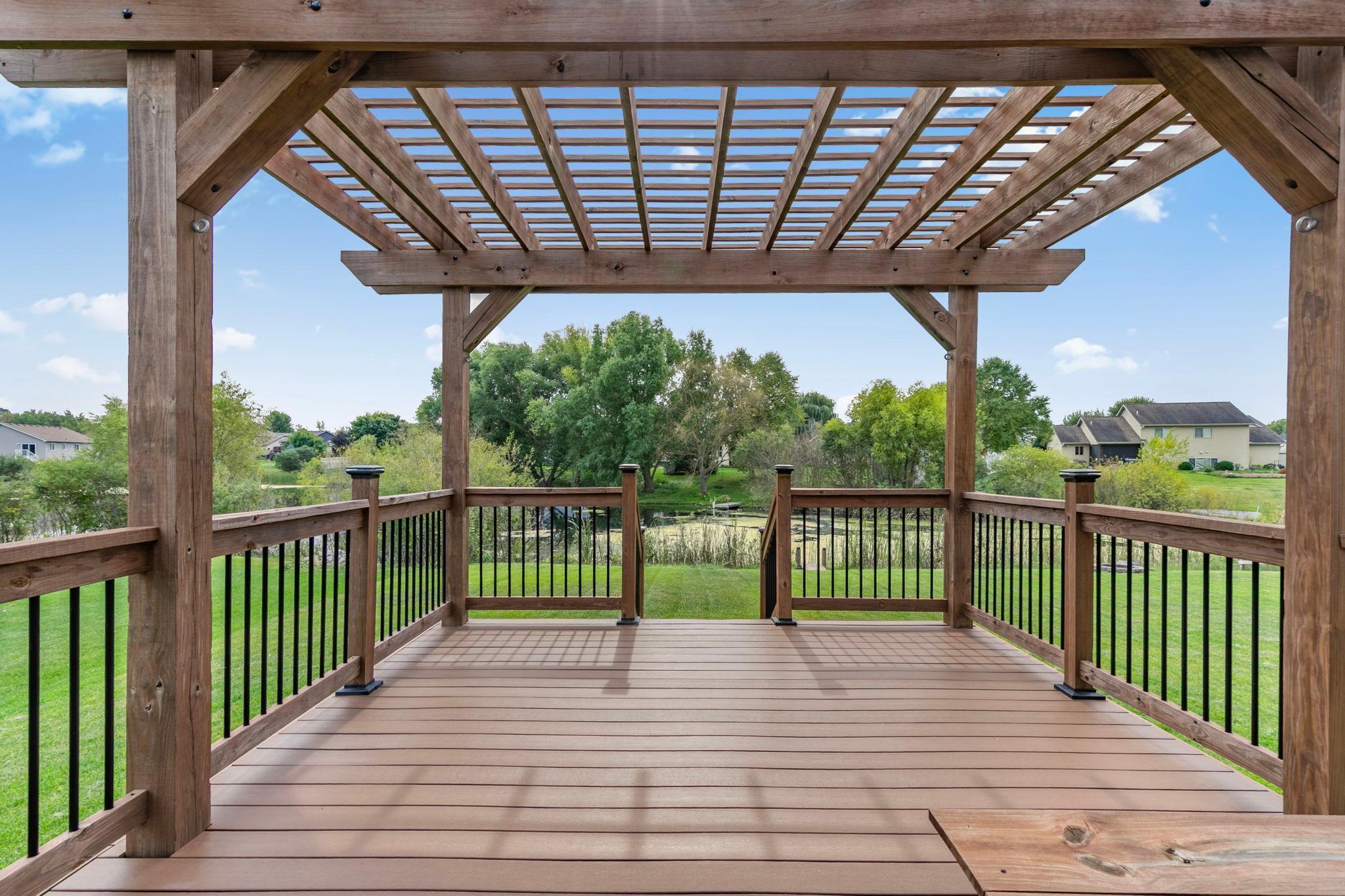 Stunning newer Tri-level walkout home offering 4 bedrooms and 3 bathrooms with beautiful hardwood floors throughout the main floor. The open concept design features vaulted ceilings, a modern kitchen with stainless steel appliances, large center island, and walk-in pantry. Enjoy seamless indoor/outdoor living with a spacious living area that walks out to a large deck with pergola overlooking the pond. The lower level walkout includes a bright family room, additional bedroom, full bath, and access to a concrete patio, perfect for entertaining or relaxing. The private owner's suite boasts a spa-like bath with walk-in shower and generous walk-in closet. Additional highlights include an irrigation system, stylish finishes, 3 car garage and ample storage. Nestled on a beautiful lot with serene pond views, this home combines modern comfort with an unbeatable setting.