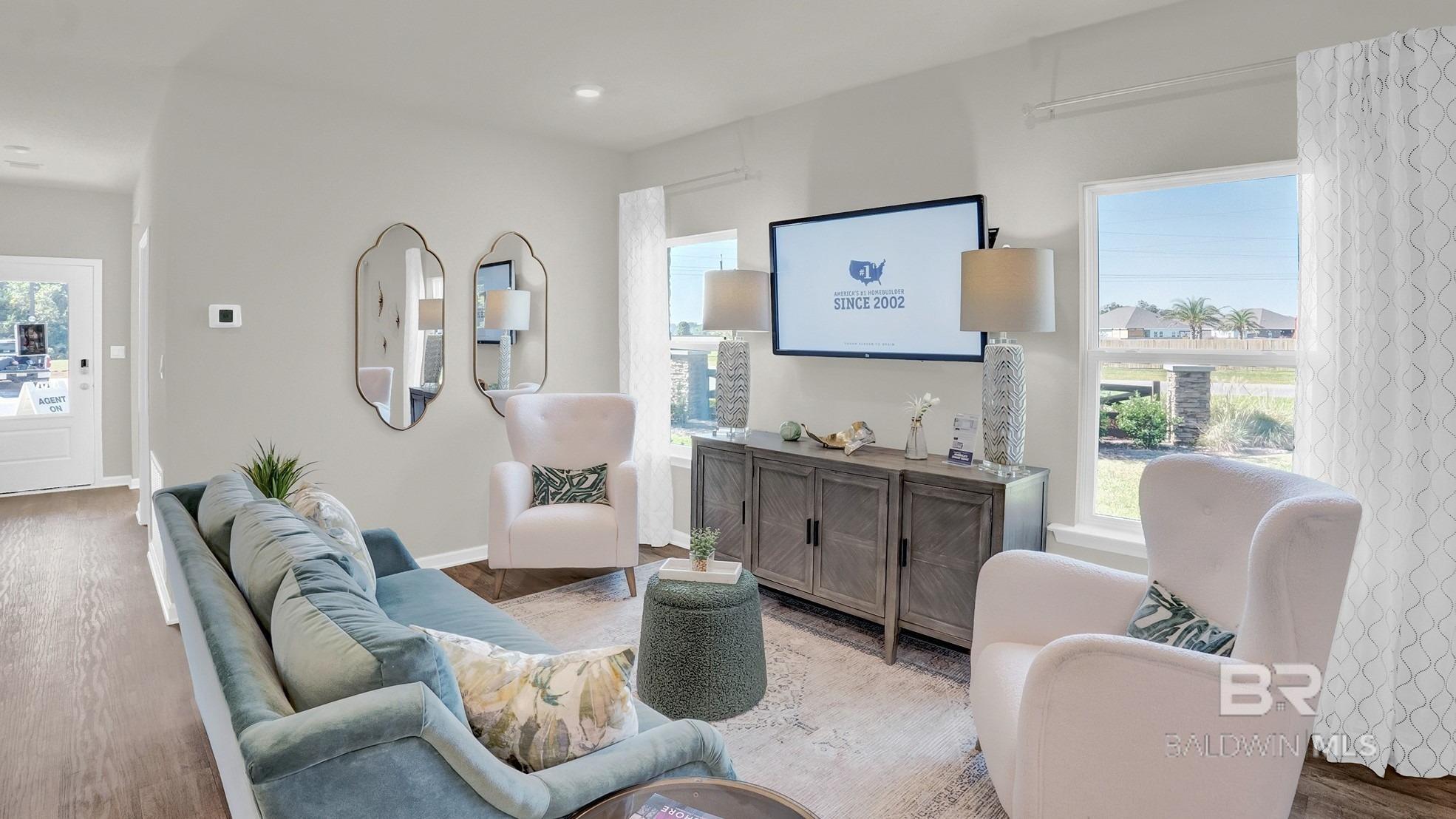 Welcome to 21123 Roughleaf Drive, a new home in our Dogwood Estates community of Summerdale. This 3-bedroom, 2-bathroom home boasts 1,430 square feet of functionality for convenient and comfortable living. It faces East, allowing you to enjoy picturesque sunsets from your backyard while still maintaining privacy from the luscious tree line the lot backs up to. As you enter the foyer, you will immediately notice the high-quality details and finishes throughout. Connected off the foyer are the study, laundry room, and garage. Continue walking down the hall and you will enter the great room. The open concept blends the kitchen, living, and dining areas seamlessly, allowing natural light to illuminate the space.The kitchen is fully equipped with white shaker-style cabinets, granite countertops, a center island, stainless steel appliances, and a pantry for storage.The owners suite is generously sized and includes a walk-in closet and private bathroom with a double sink vanity, granite countertops, and an enclosed shower. Bedrooms two and three offer all kind of possibilities. A conveniently located bathroom with a bathtub/shower combination can be found nestled between these two bedrooms. The outdoor area includes a covered patio and spacious backyard, perfect for relaxation or entertainment. The Smart Home Connect Technology System includes your video doorbell, keyless entry door lock, programmable thermostat, a touchscreen control device, a smart light switch, and more. Homes include a one-year builder warranty and a 10-year structural warranty. These homes are being built to Gold FORTIFIED HomeTM certification, which may save the buyer on their homeowners insurance (See Sales Representative for details). Contact us today to make Dogwood Estates your new home! Pictures of similar home may be included and may not represent actual colors and options in subject property. Buyer to verify all information during due diligence. Estimated completion of May 2026!