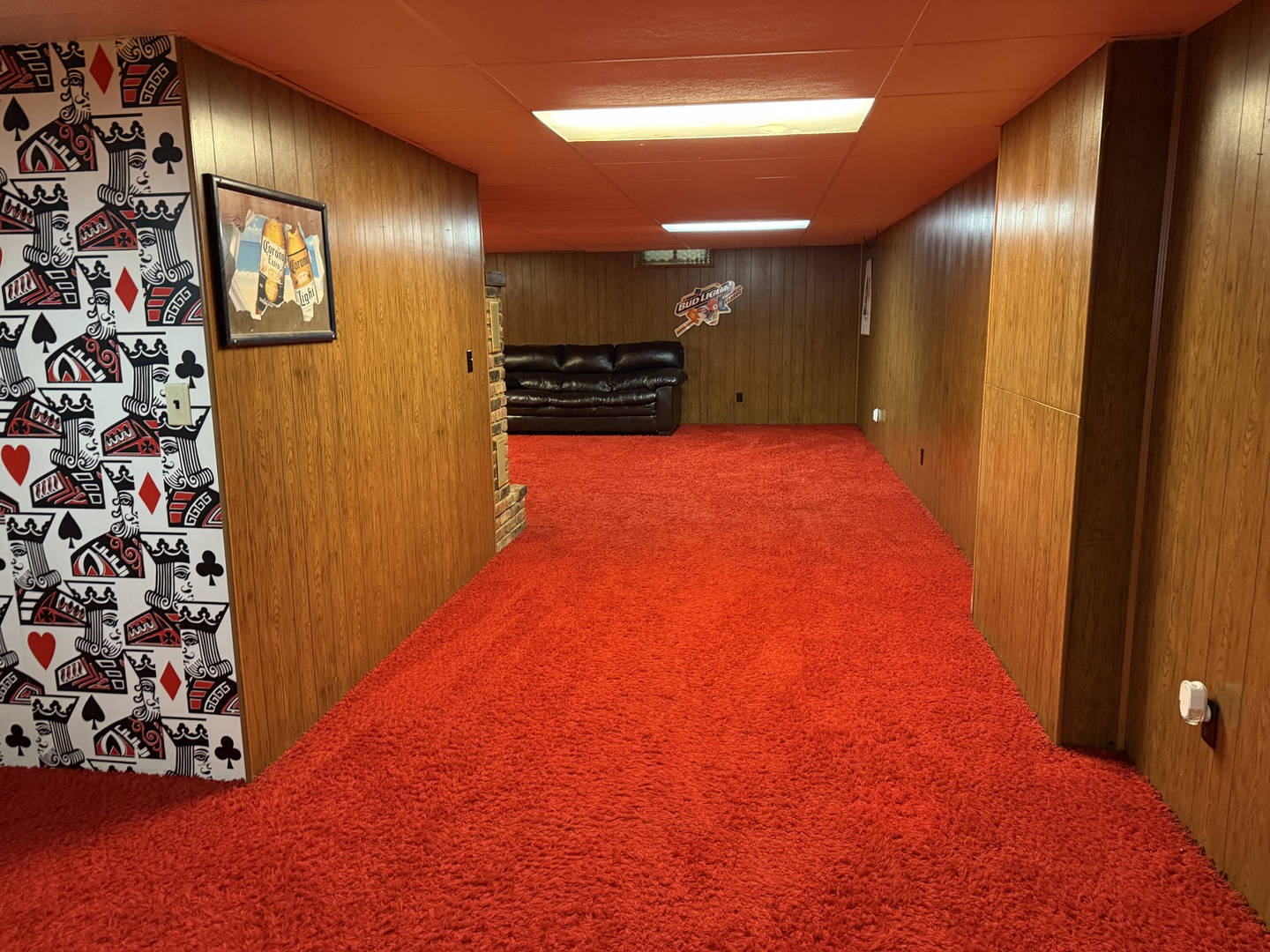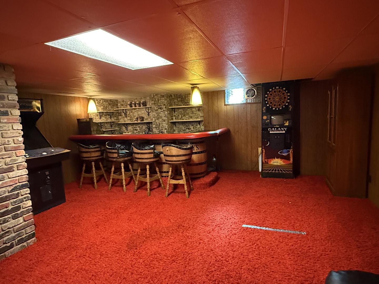 Welcome to this charming brick ranch featuring four spacious bedrooms and two full bathrooms. Step back in time as you walk downstairs to this retro themed basement. It's perfect for entertaining, complete with a bar, a rec room, and an additional family room. The main level boasts elegant hardwood floors, adding warmth and character to the home. Step outside to a lovely deck off the back, perfect for outdoor gatherings and relaxation. Nestled in a peaceful neighborhood, this home offers ample room for family living and entertaining. Don't miss out on this fantastic opportunity!