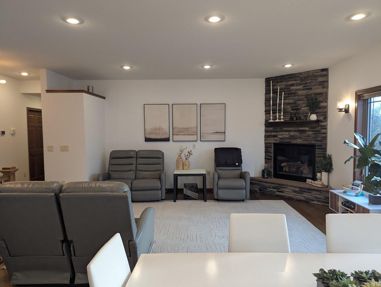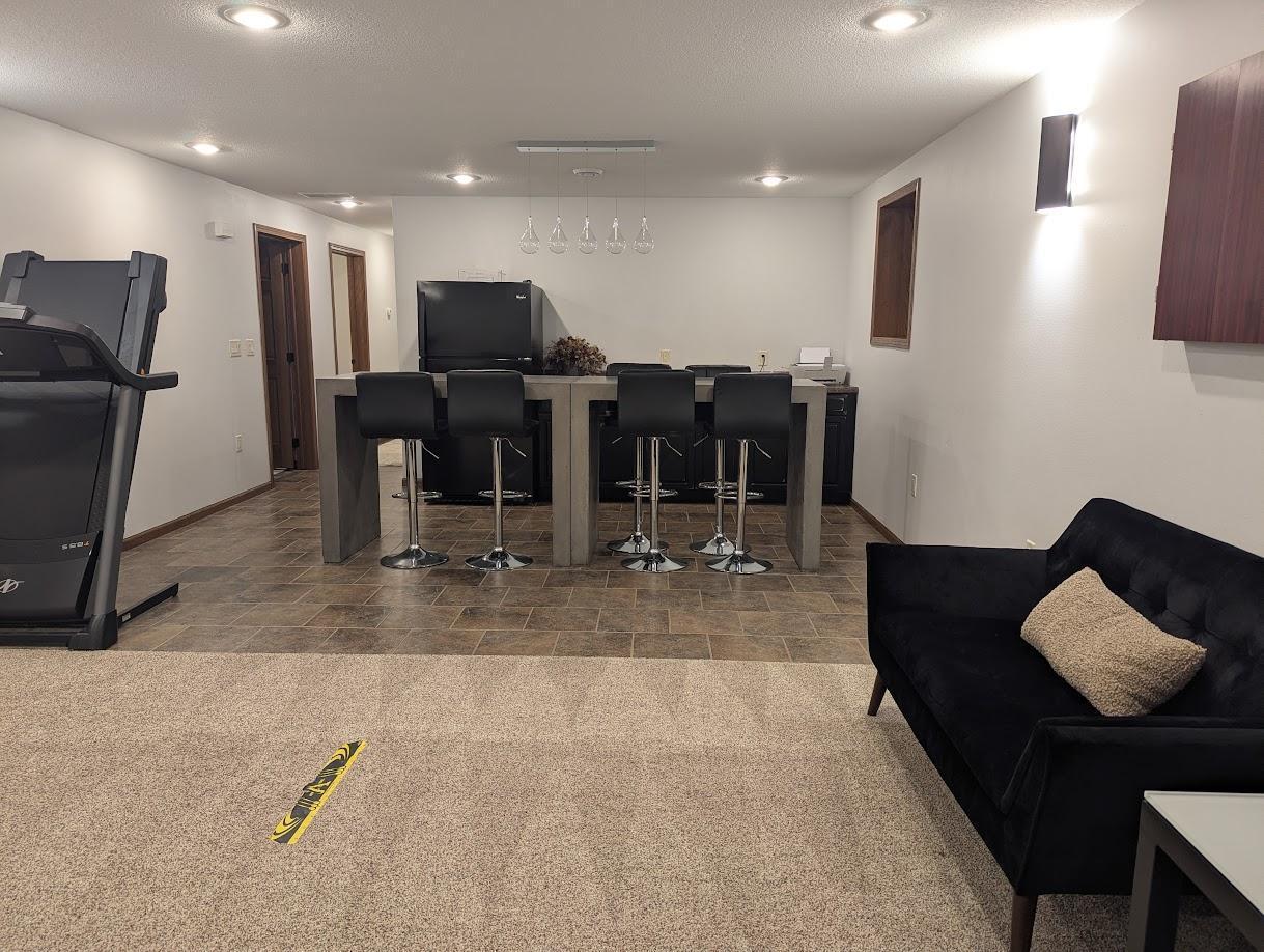 Home has a total of 4 bedrooms, 3 baths along with a large open living room, dining and kitchen area. The laundry is also on the main floor, The main floor has a primary bedroom with large WIC and bath along with another bedroom and bath. The basement has 2 more bedrooms, bath, den, wet bar area and family room. The is also a 3 car garage and a storage shed.