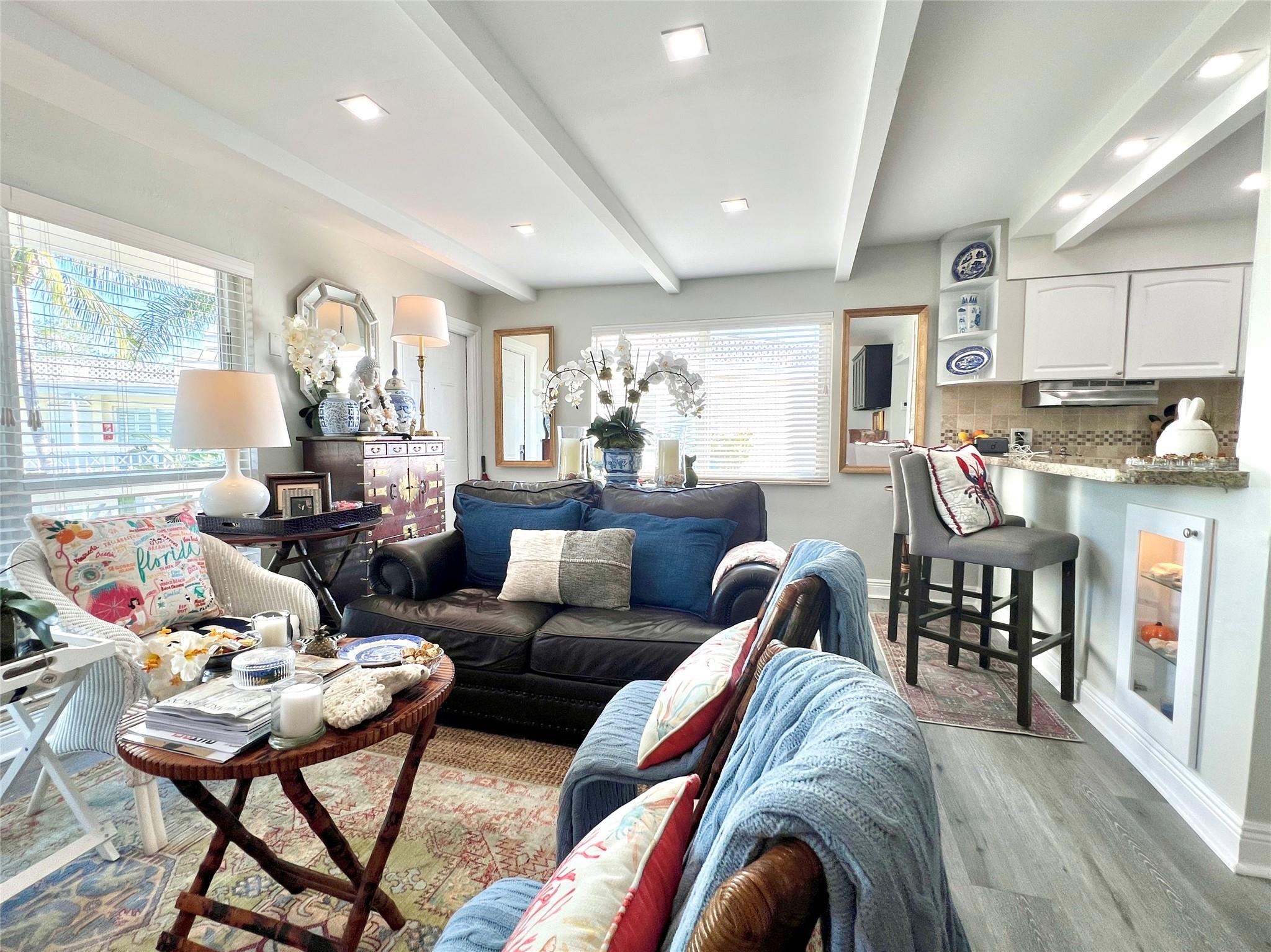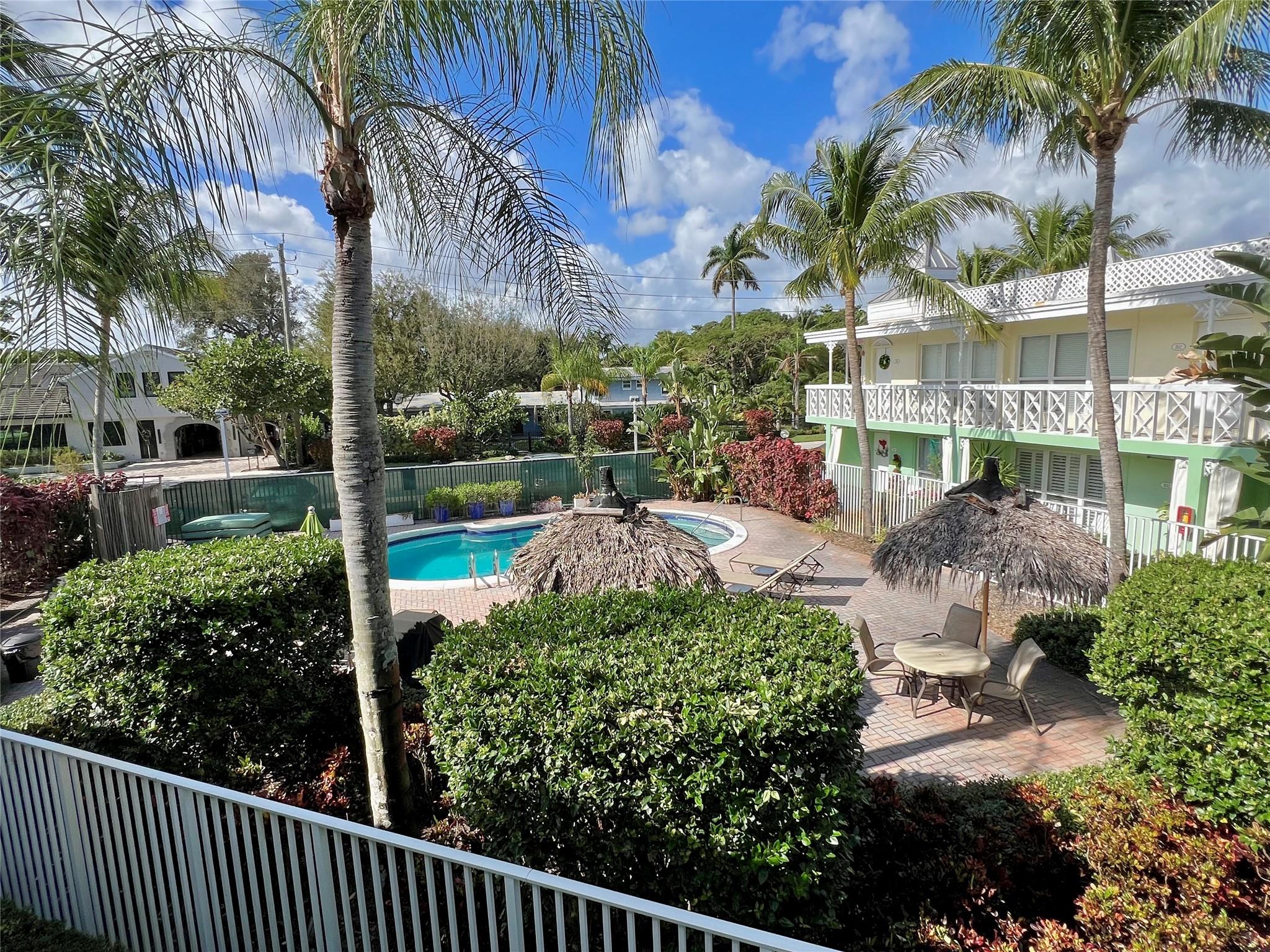 Fantastic opportunity to own a charming one-bedroom, one-bathroom unit in a boutique, Key West-style community, just half a block from the vibrant restaurants, shops, and entertainment on Wilton Drive. This second-floor corner unit features an updated interior with a semi-private patio just outside your door, impact windows and doors, abundant natural light, and a view of the pool area from the living room. With vinyl floors throughout, a heated pool, and BBQ area, the beautifully landscaped and well-maintained grounds make this the perfect place to call home. Pet-friendly (under 20 pounds, with approval), with laundry and additional storage on-site. One assigned parking spot. NO LEASE - 1st 6 months. Tenant occupied until November 1.
