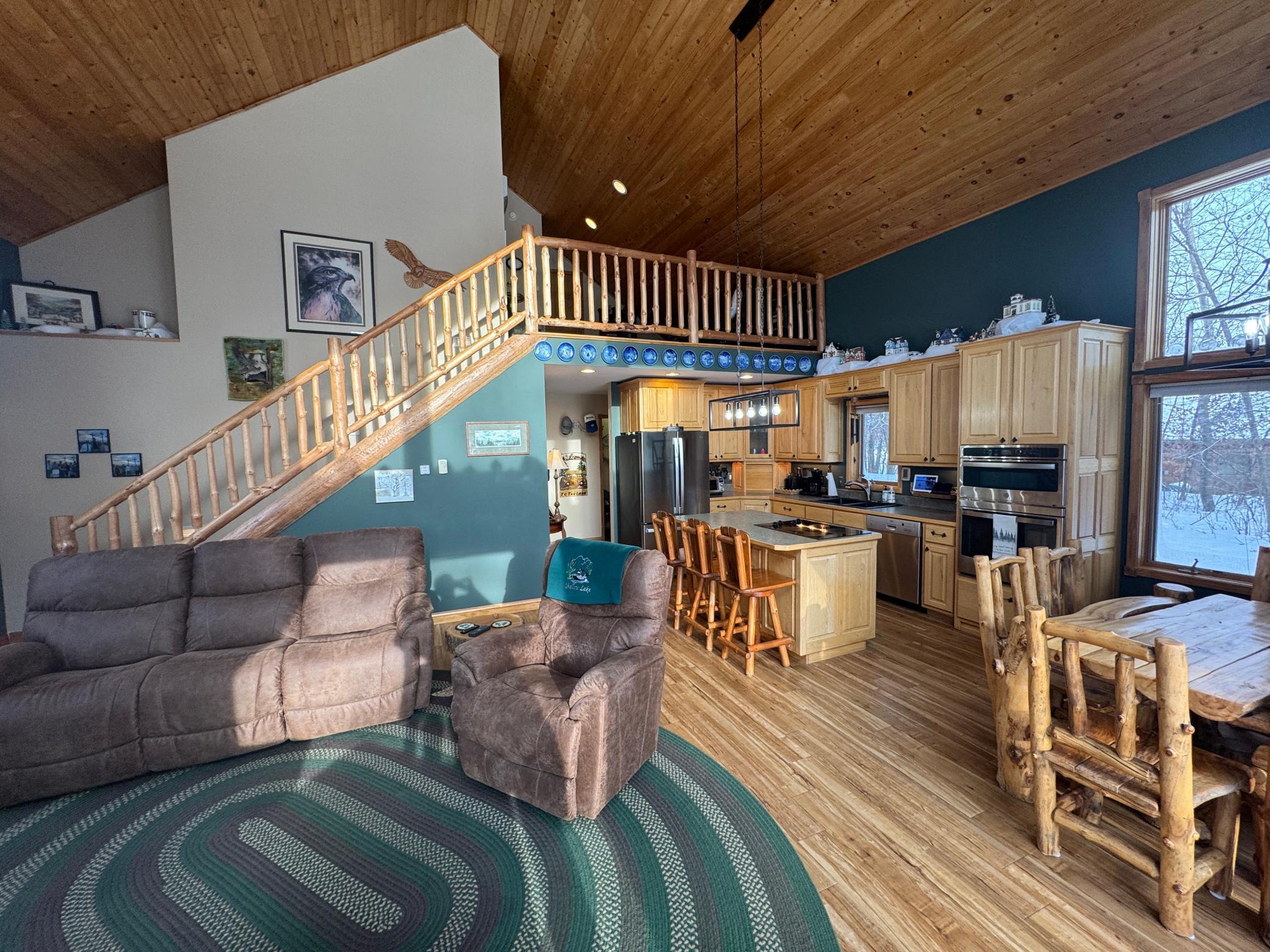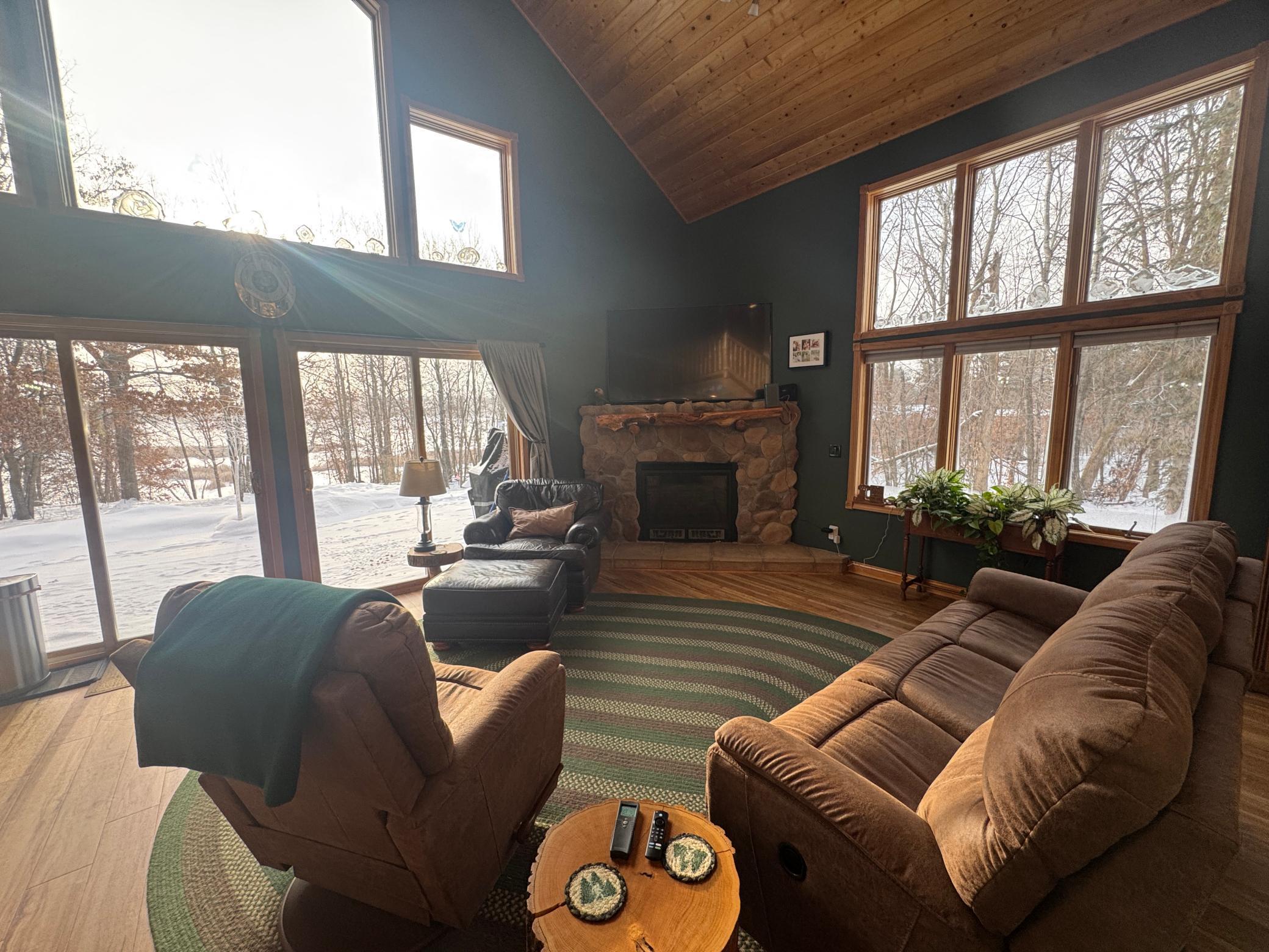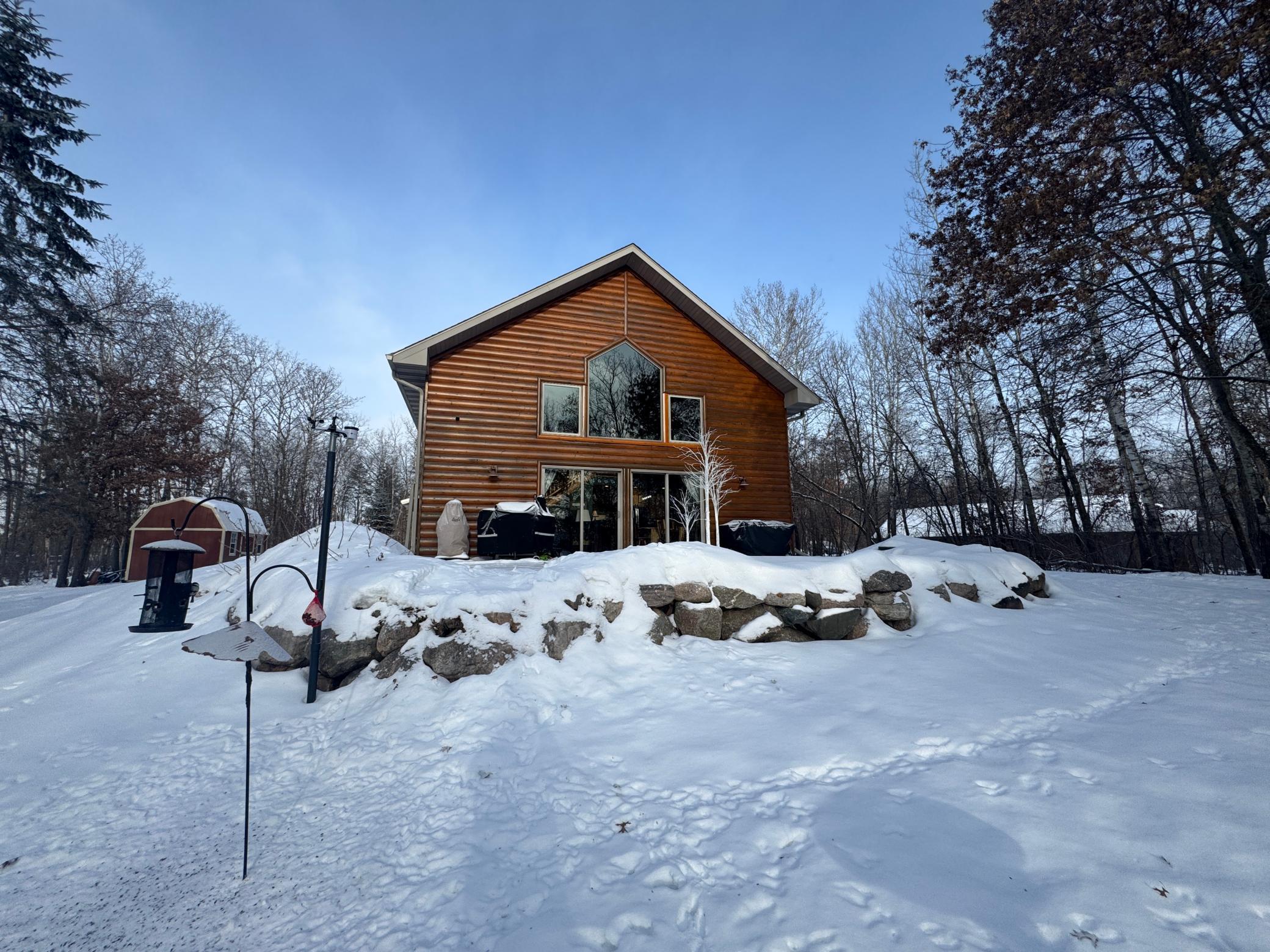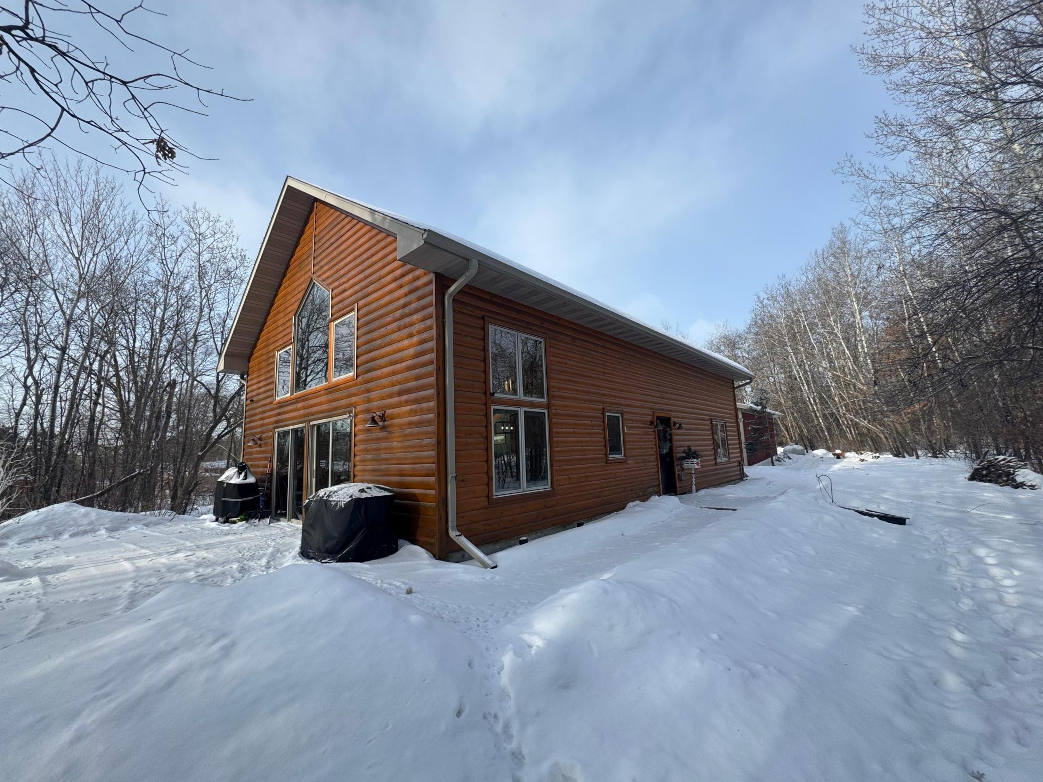 Take a look at this lake home on Shallow Lake near Nevis.Situated perfectly on a 2.5 acre lot with 190 of frontage.This well-cared for home has so much to offer and has many recent upgrades.On the main level, youll find everything you need with 2 sizeable bedrooms, a 3/4 bath, new stackable washer and dryer.The Kitchen and living room feature vaulted ceilings finished in pine tongue and groove wood, a gas fireplace, new kitchen appliances, and east-facing lake views.Upstairs features a lofted space perfect for a desk or reading nook and will lead you to the primary bedroom with a full bathroom.Sit on the lakeside concrete patio and enjoy the sounds of nature and the animals that frequent this property.The pole building is 30 x 32 with concrete floor and power.Brand new roof and gutters on the house in 2025.Shallow Lake offers fishing and recreational opportunities, and depending on water level and type of watercraft it has access to both Deer Lake and Lake Belle Taine.