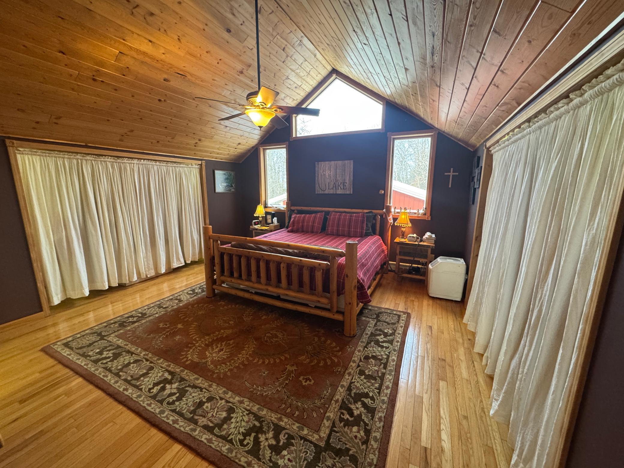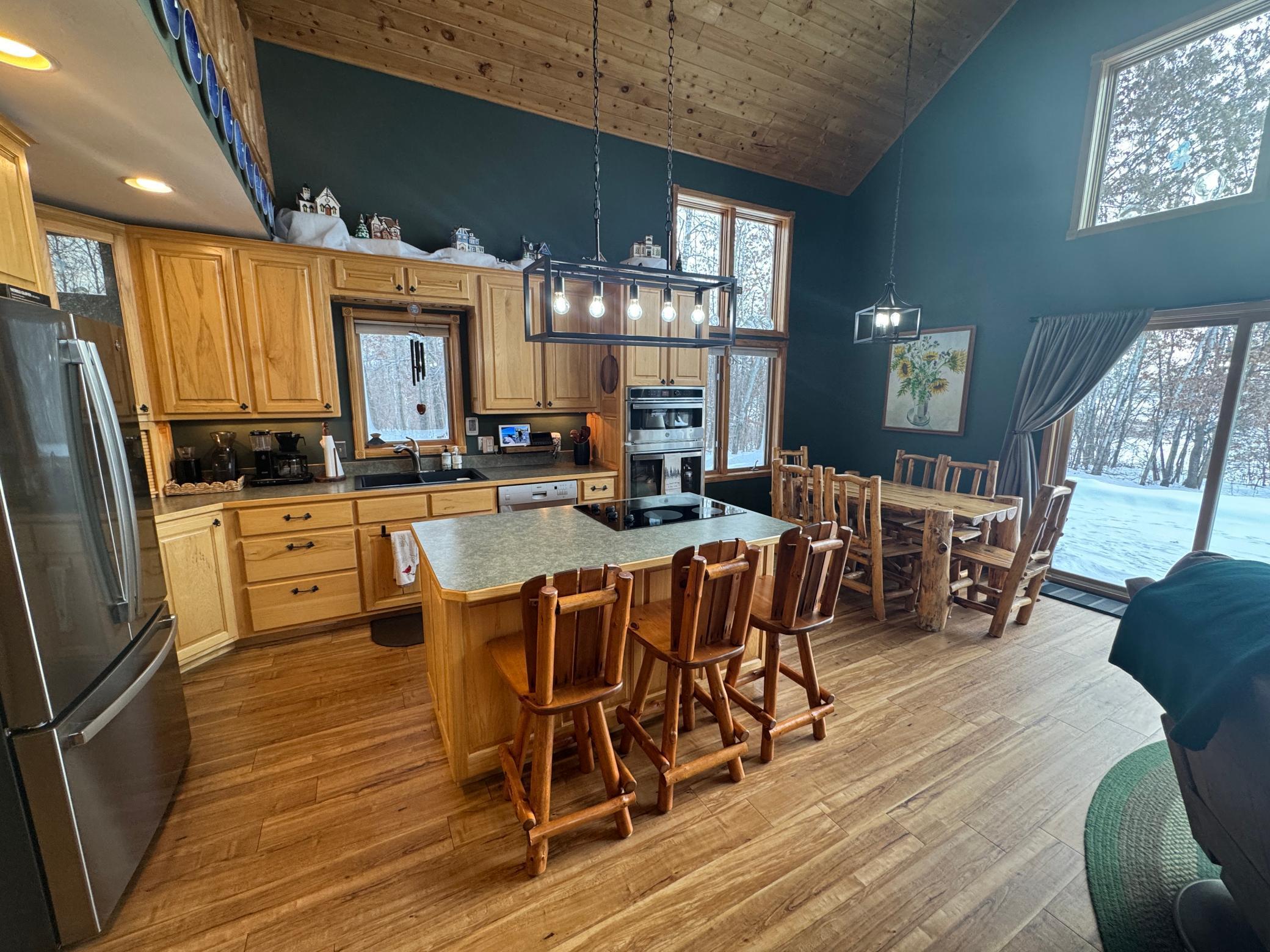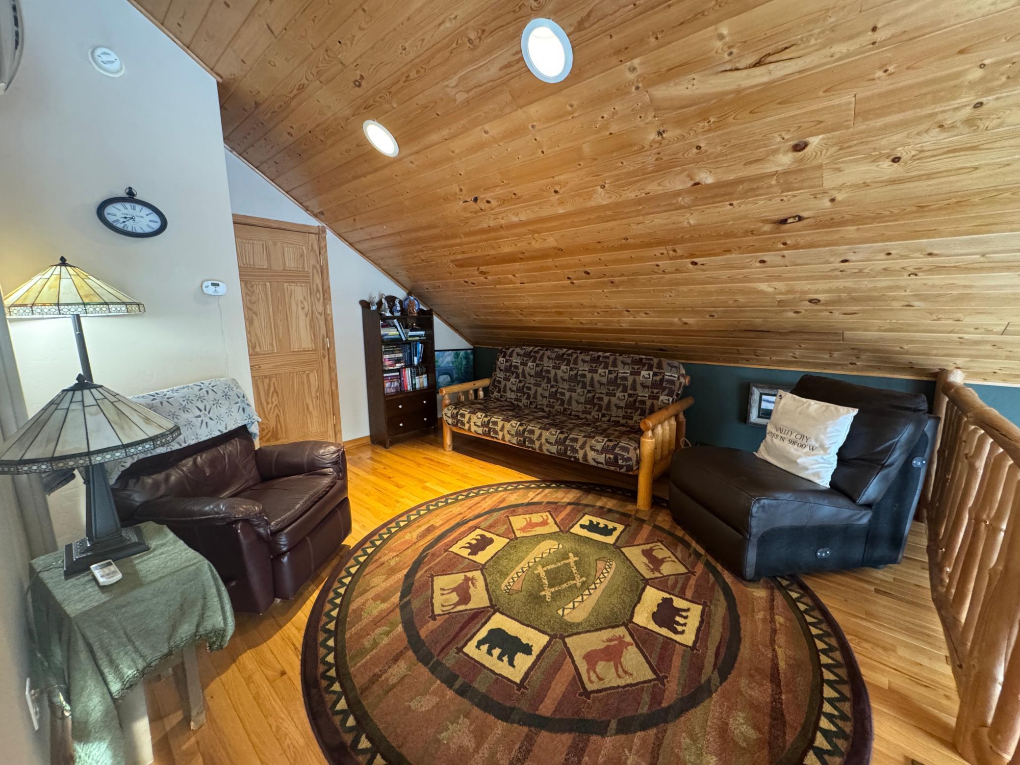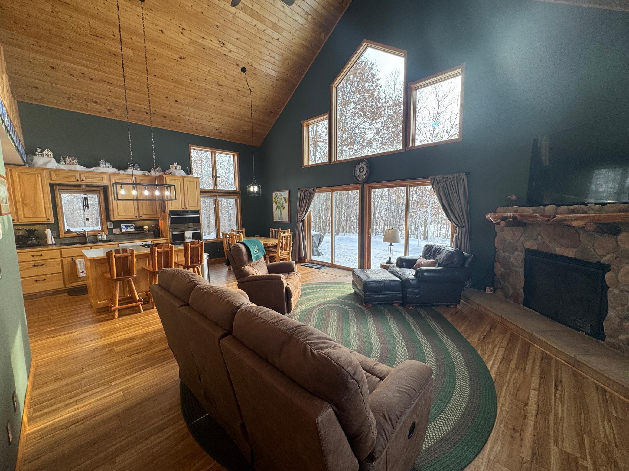 Take a look at this lake home on Shallow Lake near Nevis.Situated perfectly on a 2.5 acre lot with 190 of frontage.This well-cared for home has so much to offer and has many recent upgrades.On the main level, youll find everything you need with 2 sizeable bedrooms, a 3/4 bath, new stackable washer and dryer.The Kitchen and living room feature vaulted ceilings finished in pine tongue and groove wood, a gas fireplace, new kitchen appliances, and east-facing lake views.Upstairs features a lofted space perfect for a desk or reading nook and will lead you to the primary bedroom with a full bathroom.Sit on the lakeside concrete patio and enjoy the sounds of nature and the animals that frequent this property.The pole building is 30 x 32 with concrete floor and power.Brand new roof and gutters on the house in 2025.Shallow Lake offers fishing and recreational opportunities, and depending on water level and type of watercraft it has access to both Deer Lake and Lake Belle Taine.