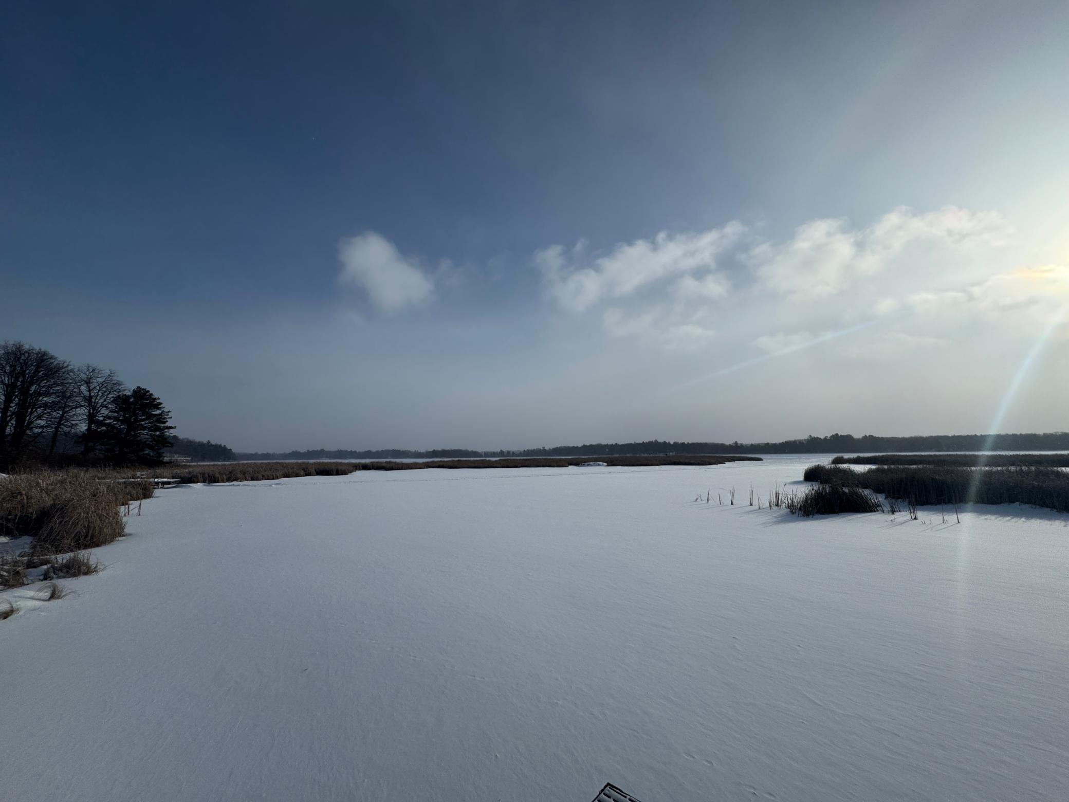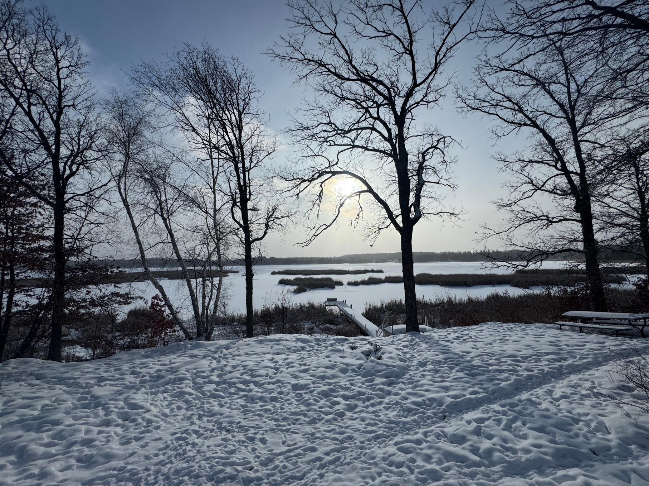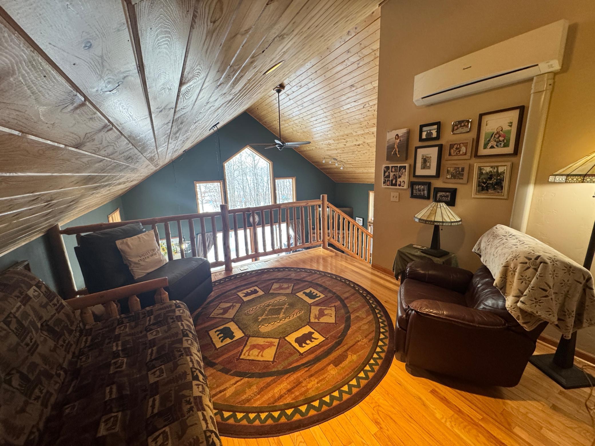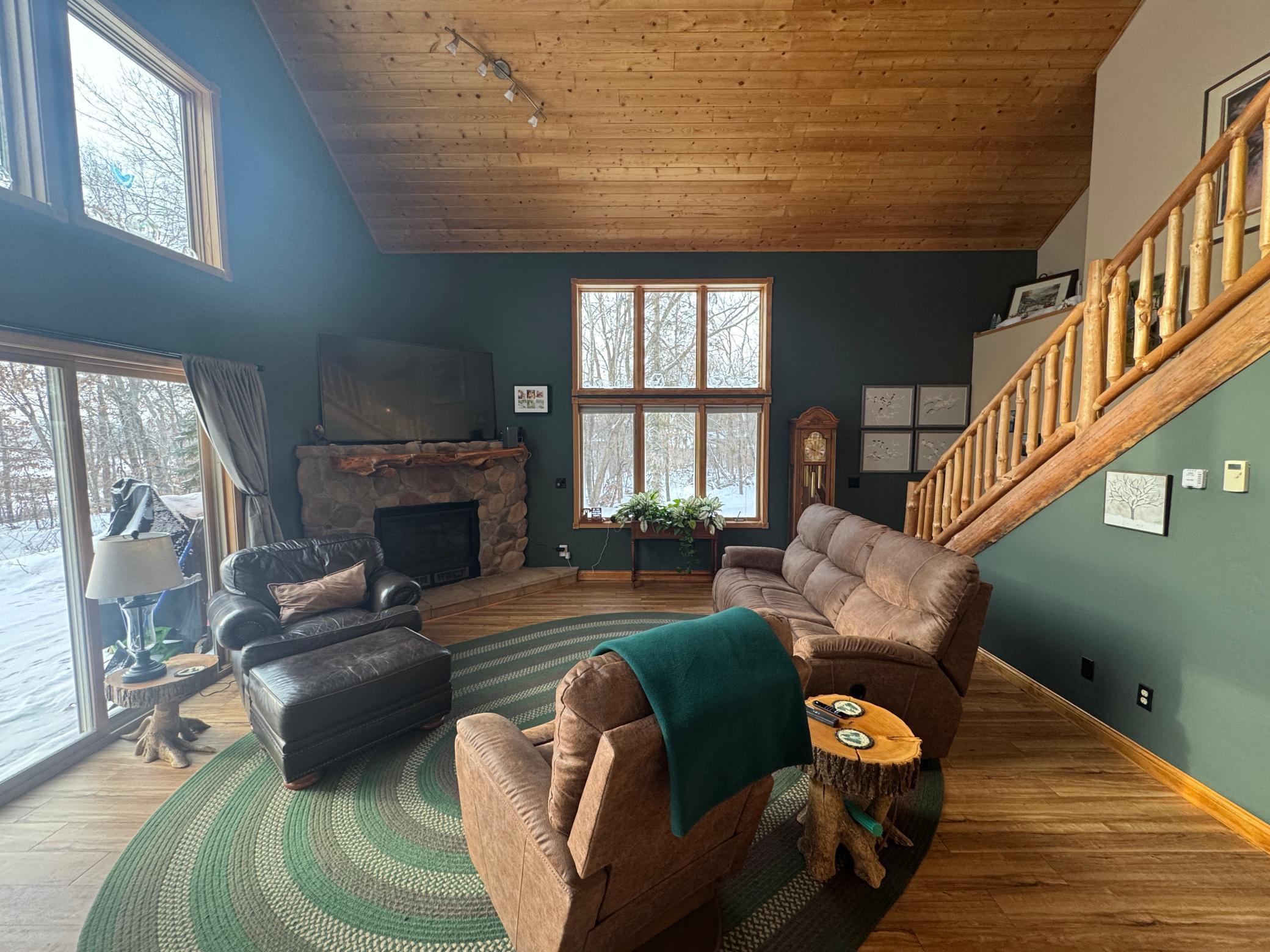 Take a look at this lake home on Shallow Lake near Nevis.Situated perfectly on a 2.5 acre lot with 190 of frontage.This well-cared for home has so much to offer and has many recent upgrades.On the main level, youll find everything you need with 2 sizeable bedrooms, a 3/4 bath, new stackable washer and dryer.The Kitchen and living room feature vaulted ceilings finished in pine tongue and groove wood, a gas fireplace, new kitchen appliances, and east-facing lake views.Upstairs features a lofted space perfect for a desk or reading nook and will lead you to the primary bedroom with a full bathroom.Sit on the lakeside concrete patio and enjoy the sounds of nature and the animals that frequent this property.The pole building is 30 x 32 with concrete floor and power.Brand new roof and gutters on the house in 2025.Shallow Lake offers fishing and recreational opportunities, and depending on water level and type of watercraft it has access to both Deer Lake and Lake Belle Taine.