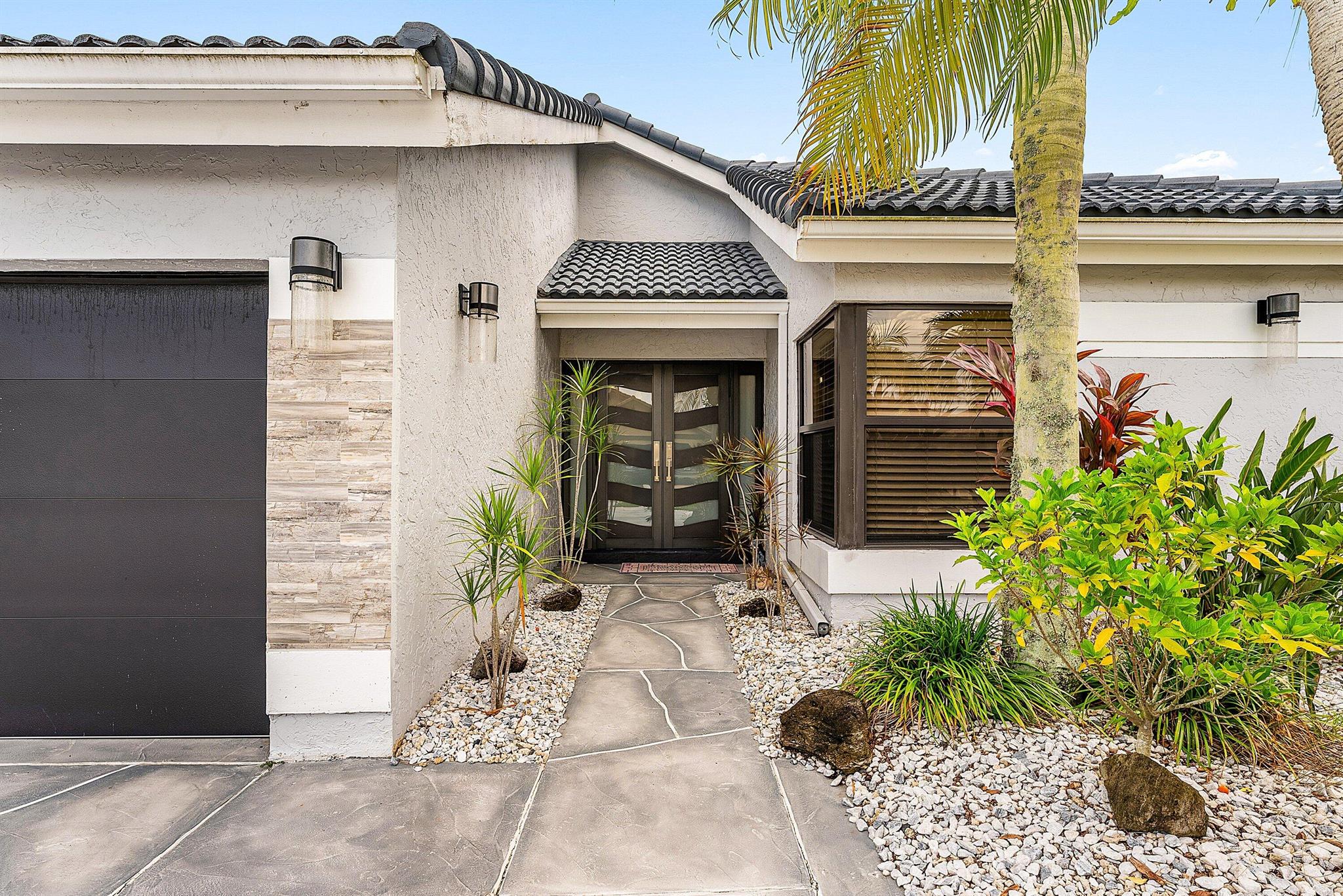 Located on a quiet cul-de-sac street in prestigious Boca Woods Country Club, this move-in-ready 3 bedroom/2 bath home was recently remodeled with contemporary updates. The reconfigured kitchen offers an expanded pantry, breakfast area & top-of-the-line appliances. The former atrium now enlarges the 3rd bedroom with an added closet, impact skylight & matching flooring. Additional features include add'l recessed lighting throughout, impact garage & entry doors, new interior paint, new A/C, and new water heater. A spacious private backyard provides room for a pool. Boca Woods Country Club offers resort style amenities, including 2 championship golf courses, Har Tru tennis courts, pickleball state of the art fitness center, spa, game room, fully renovated clubhouse, fine dining & much more.