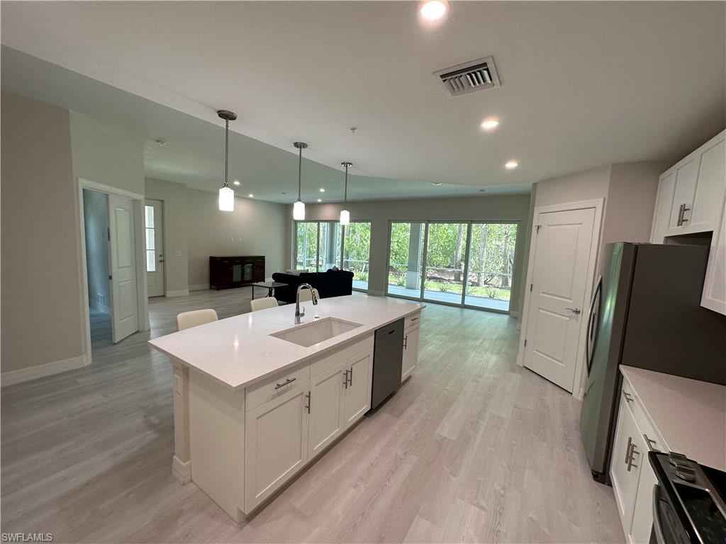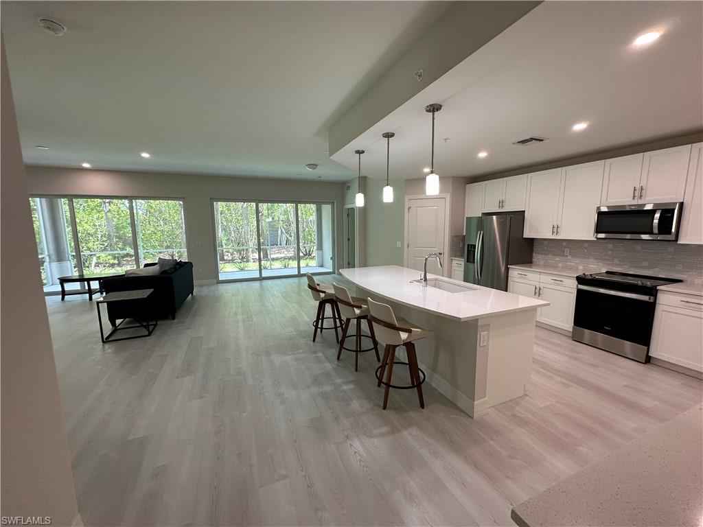 Enjoy the lifestyle of this Grand Coach Home in the Antilles Community. This spacious first floor condo has an open concept floor plan and includes 3 bedrooms, 2 full bathrooms, screened lanai and 2-car garage. This condo offers features and finishes to include fine and contemporary elements such as Shaker style kitchen cabinetry, quartz countertops and stainless steel kitchen appliances. The unit is conveniently located within walking distance to the community Flamingo Club. Conveniently located within 5 miles of Marco Island and SE Naples Restaurants and shopping.