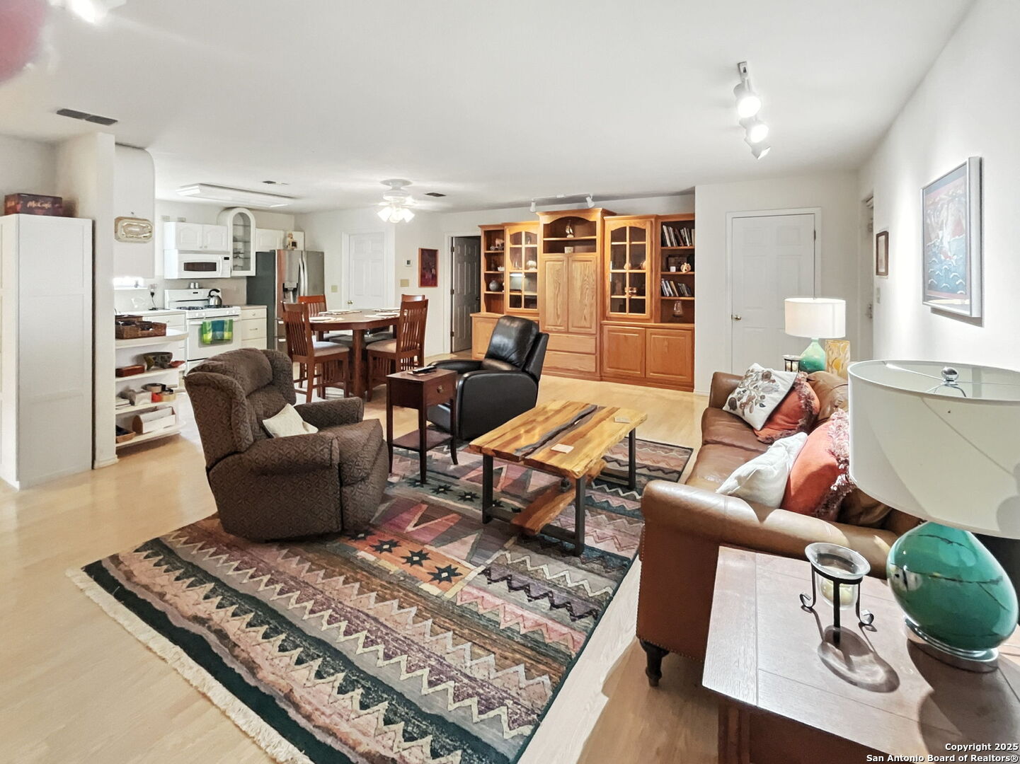 A distinctive barndominium in Pipe Creek, Texas, offers 1,698 sq. ft. of living space with two bedrooms and two bathrooms. Built in 1999, the home includes a water softener, gas log fireplace, spacious bedrooms, a study/office, and an open floor plan with a mix of wood laminate and carpet flooring. The study can easily serve as a third bedroom. The expansive attic, equipped with spray foam insulation, is partially floored and could be finished to create two or three additional bedrooms or serve as extra storage. A 60 x 19 covered parking area provides ample space for an RV or boat, while the .375-acre lot features native plants and multiple water taps. The property is conveniently located near Bandera, Boerne, and Pipe Creek, with an easy commute to San Antonio via Highway 16. In addition, the home includes a large attached, fully finished workshop with all utilities and air conditioning.
