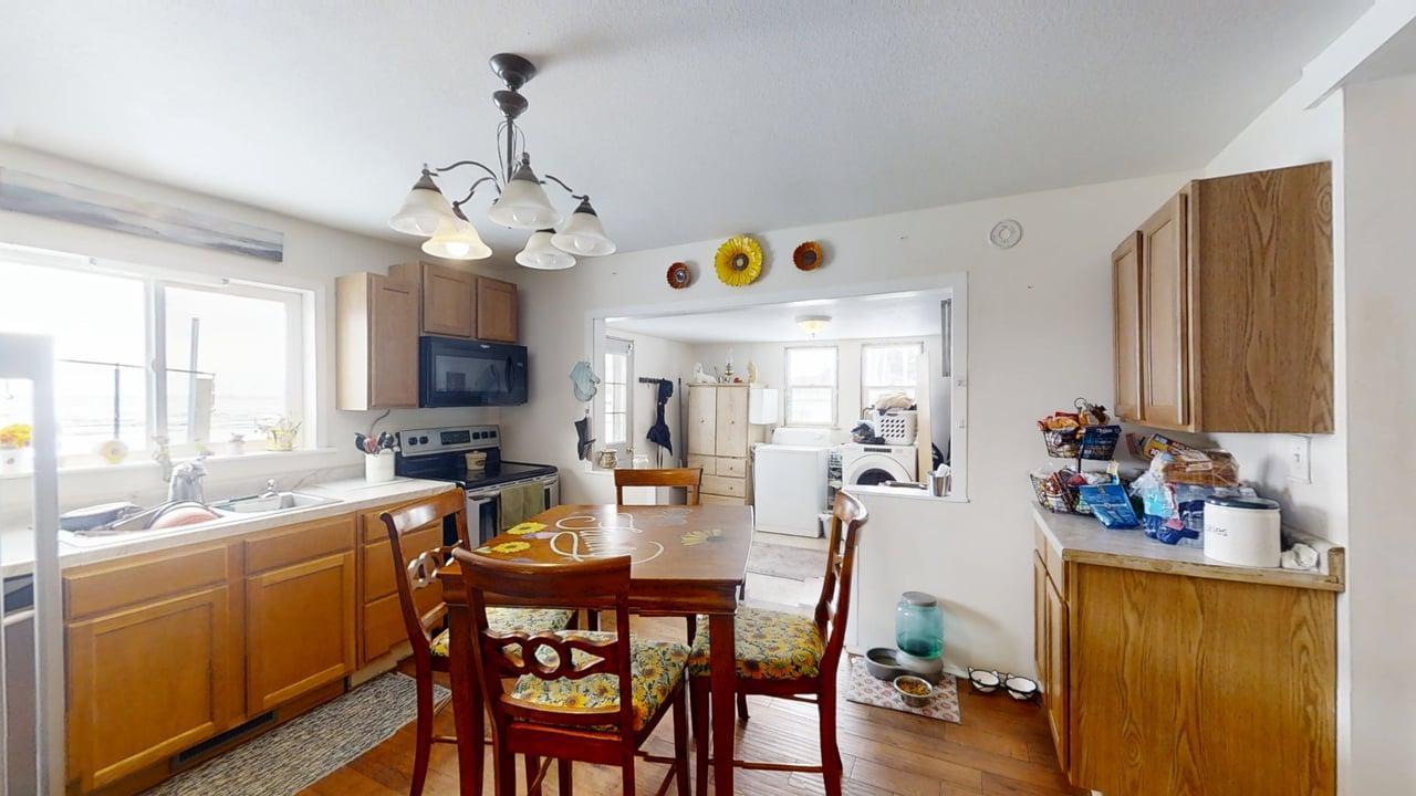Spacious three bedroom home set on an impressive four-lot parcel, offering room to grow and endless possibilities! The main level features an enclosed front porch, a generously sized living room, dedicated dining room, a remodeled kitchen and full bath, and one main-level bedroom, along with a convenient laundry room off the kitchen. Two additional bedrooms are located upstairs, providing separation and privacy. Recent improvements include new appliances (2021), a new furnace (2021), updated electrical, and new plumbing, offering peace of mind for years to come. Outside, enjoy a detached garage and expansive yard space across four lots - perfect for expansion, recreation, or outdoor entertaining! Sold as is.