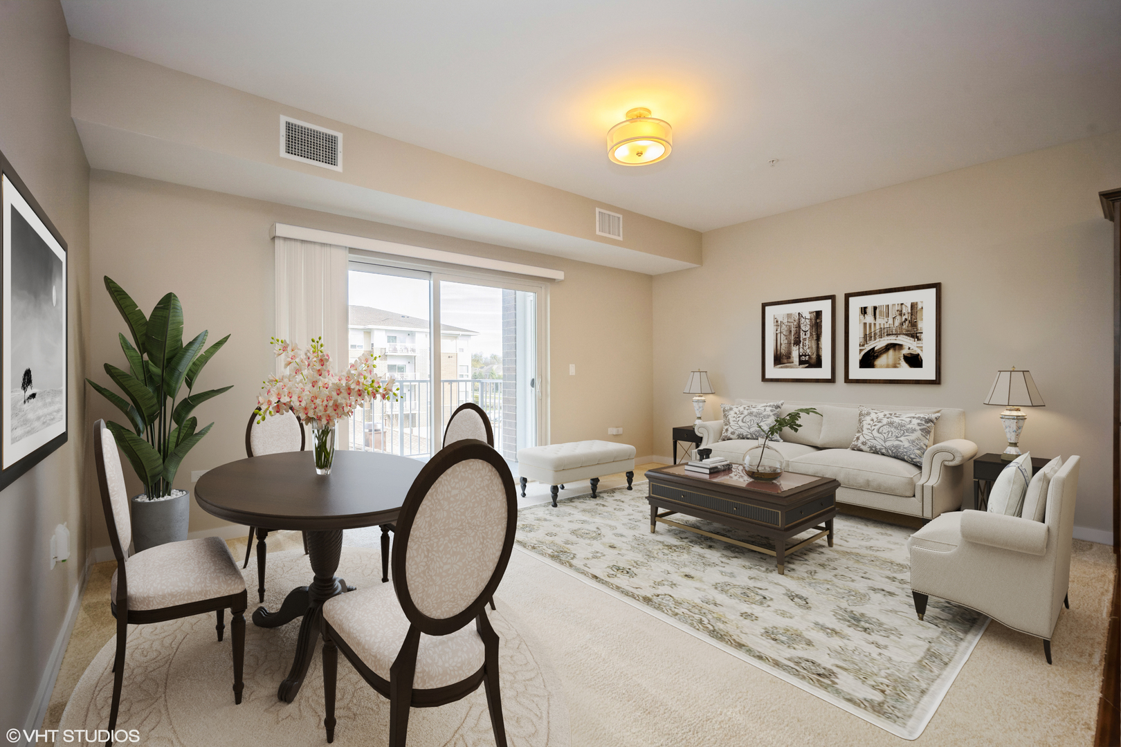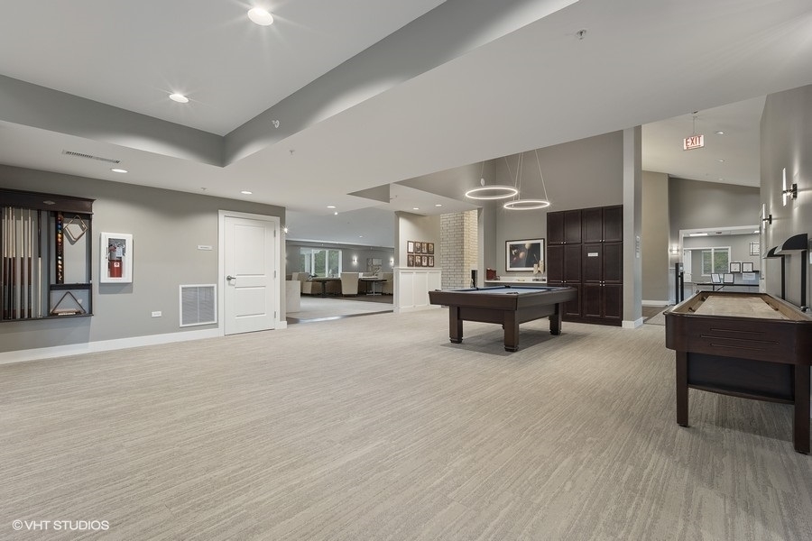 BUYER INCENTIVE: 4 MONTHS OF PAID ASSESSMENT AT CLOSING FOR A TOTAL SAVINGS OF $13,764. Experience active, independent senior living at the Lodge of Northbrook, a maintenance-free community for those 55 and older. This second-floor unit offers a northwest balcony view of Willow Hill Golf Course, allowing you to enjoy holiday lights in winter and 4th of July fireworks in summer. The beautiful kitchen features stainless steel appliances, granite counters, and a large island for food prep, along with a breakfast bar for stools. The main bedroom boasts a large walk-in closet and a bath with a handicapped-accessible shower. The second bedroom can serve as an office or caregiver room. A hall bath includes a full-size washer and dryer in the laundry closet. This unit comes with one parking spot in a heated garage and offers ample in-unit storage as well as an extra storage locker. Conveniently located near the elevator, it provides easy access to your assigned parking space. Amenities include exercise classes, a beauty salon, an artist studio, a fitness room, and community rooms for card groups. Enjoy a complimentary continental breakfast and transportation shuttle available Monday through Friday, with dining options from Monday to Friday and Sunday brunch at the Bistro. The monthly assessment covers property taxes, common insurance, utilities, and both exterior and interior maintenance. A complete list of amenities included in one low monthly fee is available under additional documents. Income qualification is required for residency.Please see the Lodge of Northbrook website for more information.