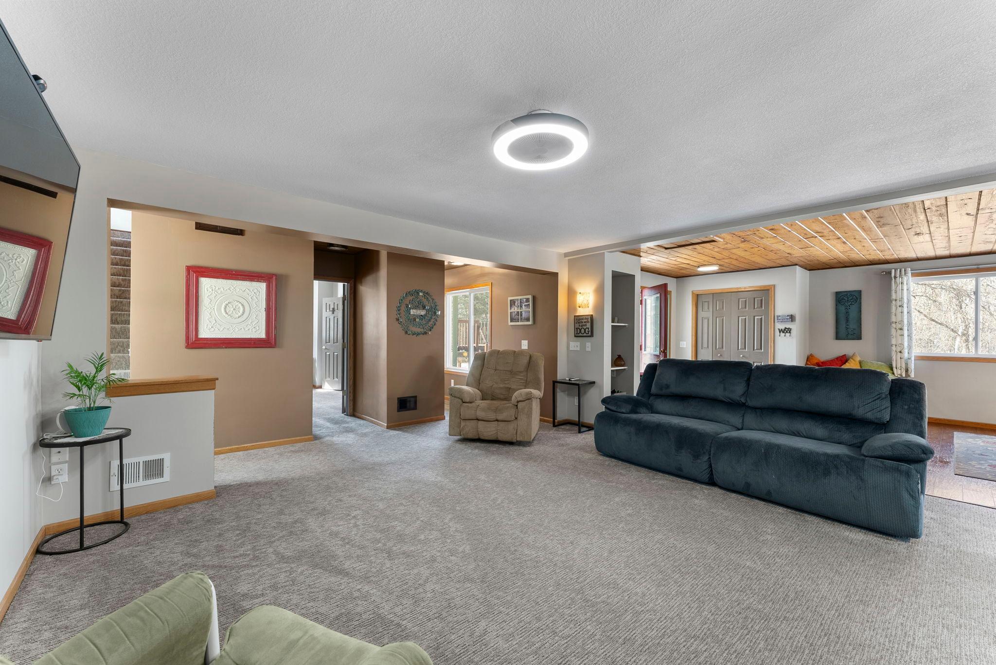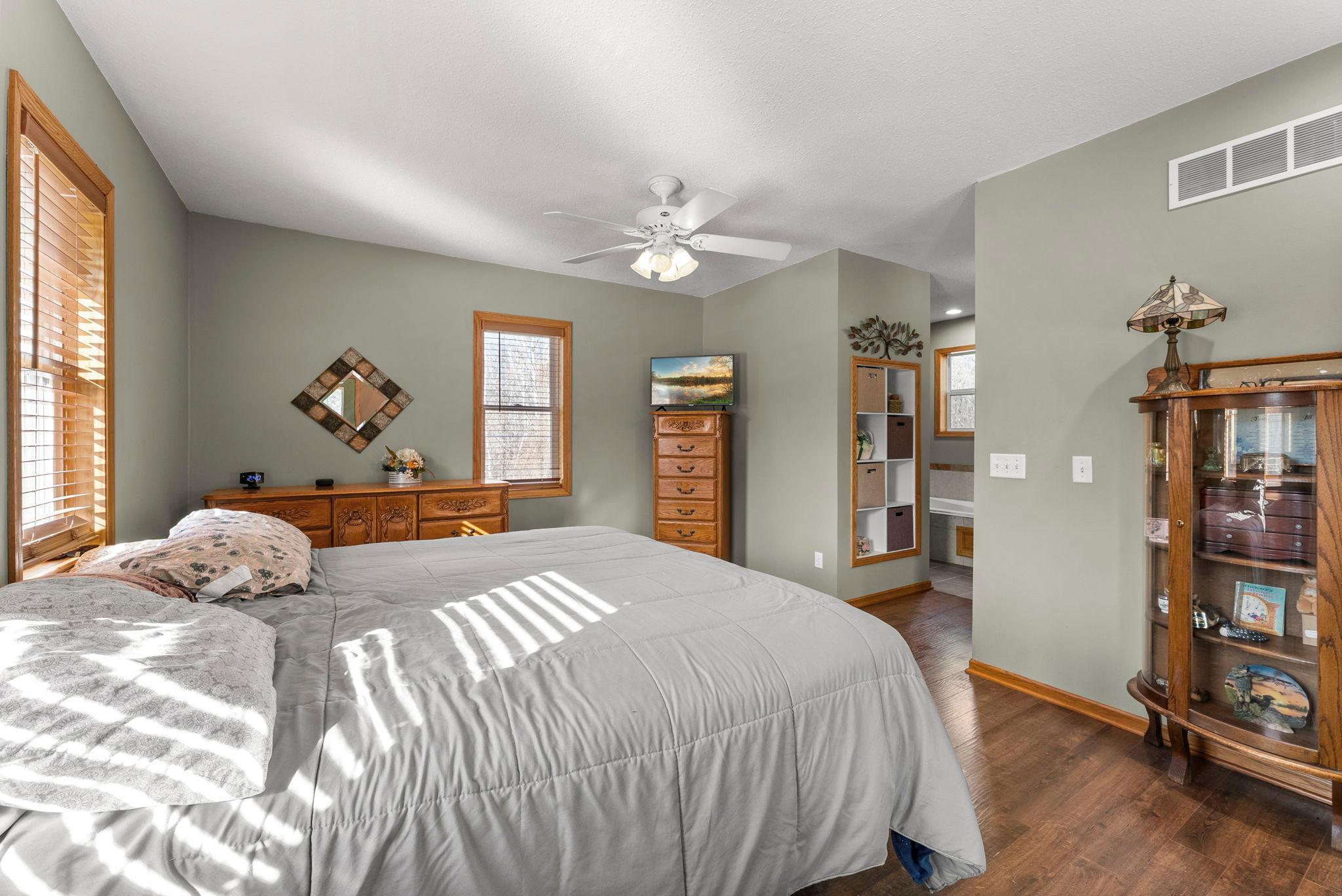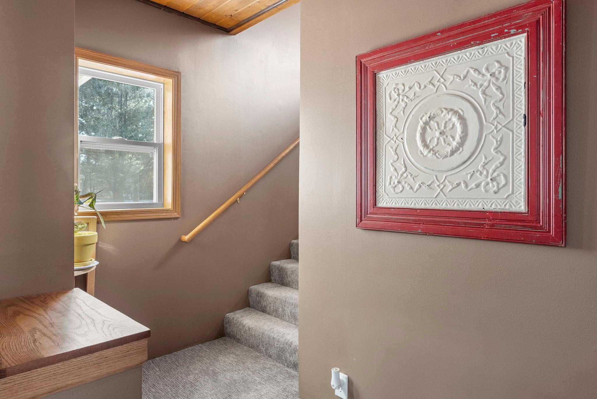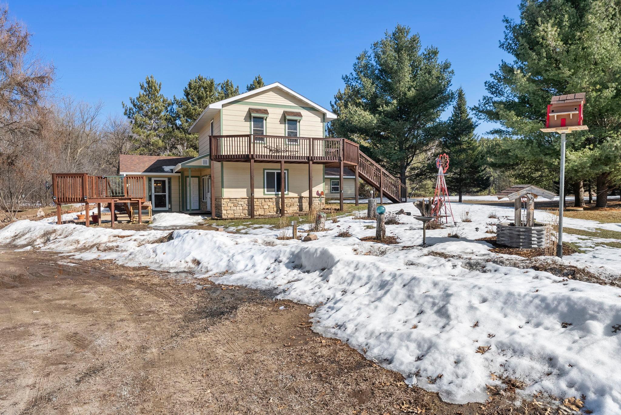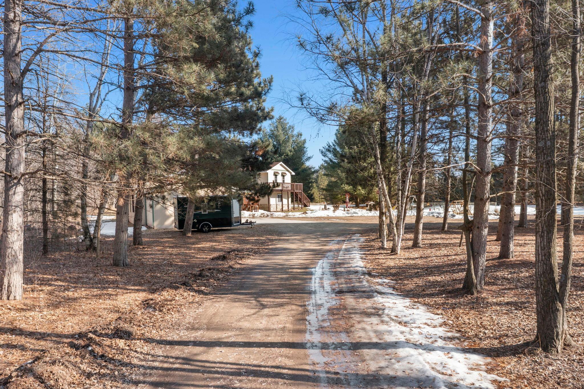 Charming 4-bedroom, 3-bath home tucked into the trees on 5 tranquil acres. Designed for comfortable single-level living, the main living areas flow easily with abundant natural light and peaceful views of surrounding woods and frequent wildlife.The master suite occupies its own private level, featuring an ensuite bath, a walk-in closet, and direct access to a deck for morning coffee or evening quiet. A fenced garden offers space for vegetables and pets, and thoughtful outdoor areas invite strolls through the property.Many updates, including: Furnace, Ac, Septic, New Drilled Well,and Carpet.This peaceful retreat combines privacy and practicality, ample parking and a detached garage, making it an ideal home for those seeking country calm with everyday convenience.