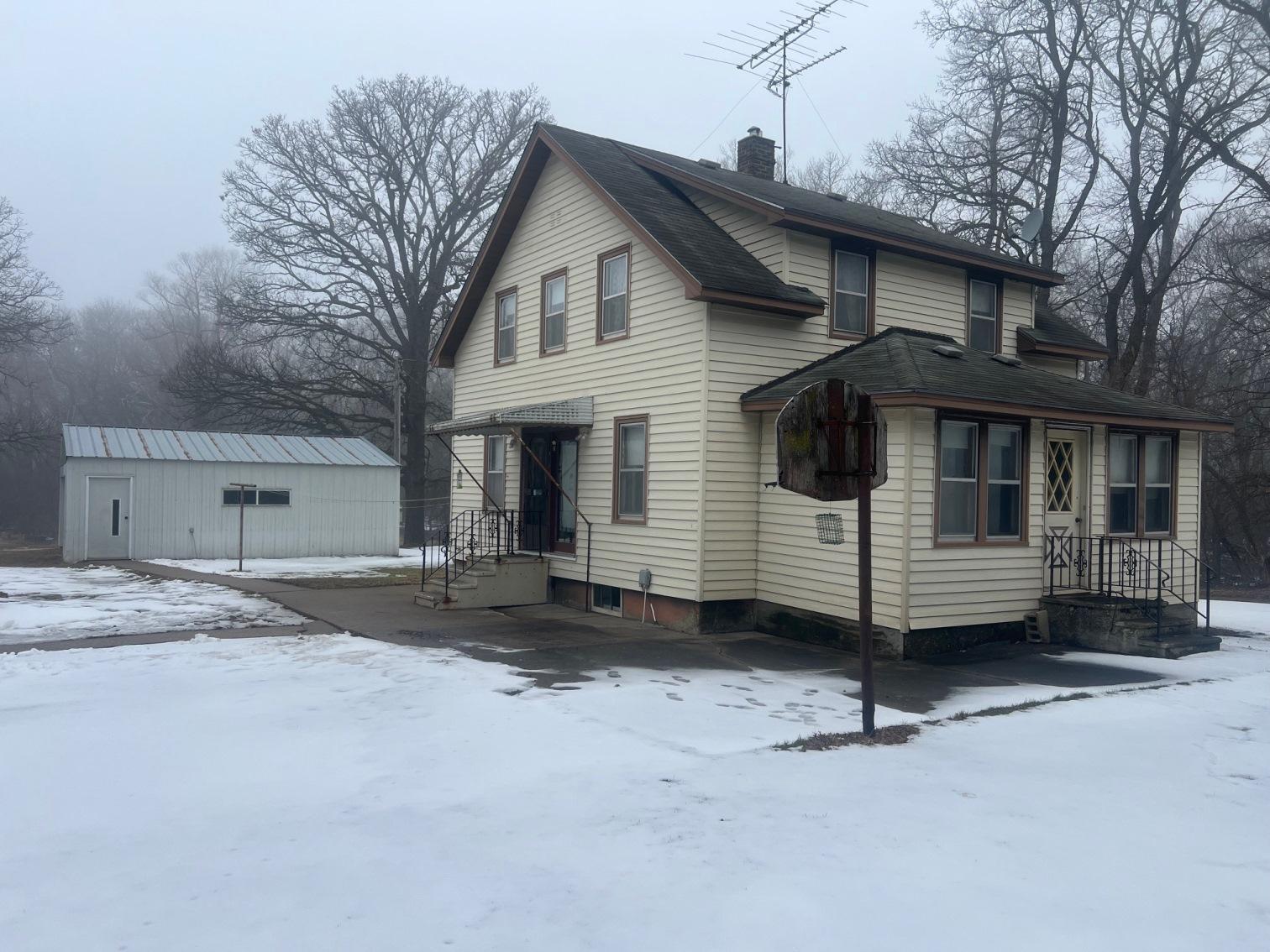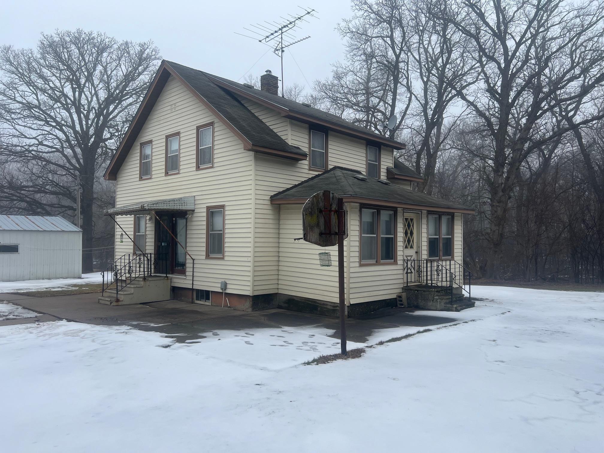 Solid 2 story home nestled on 2 acres with Virgin Oaks, 2 nice metal buildings with concrete, huge open back yard surrounded by woods and wildlife!!! Home has 3 bedrooms with two more potential bedrooms that just need closets!!! Huge kitchen, big dining and living on the main floor, main floor bath with laundry hook-ups. The three legal bedrooms are good sized on the second level with a 4th room to be whatever you'd like!!! Full unfinished lower level with poured wall foundation, forced air furnace with central air and a water softener which is newer. Sitting on a blacktop road just down from birdwing spa and across from Star Lake. Line up a showing today. This won't last long! Property to be Sold as is. 20x20 pole shed.