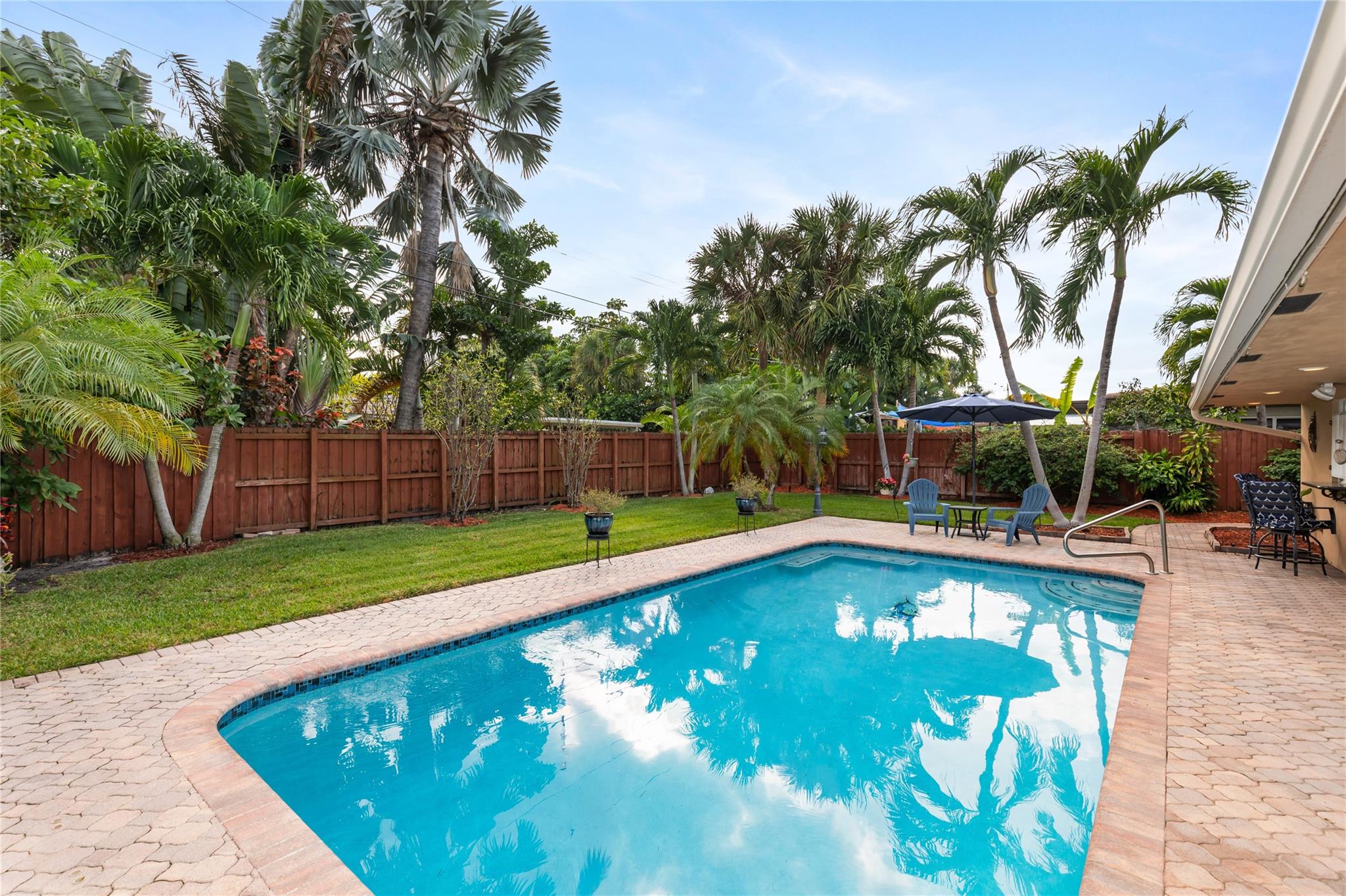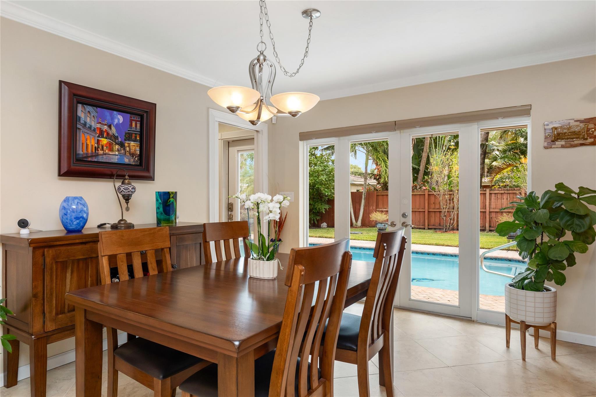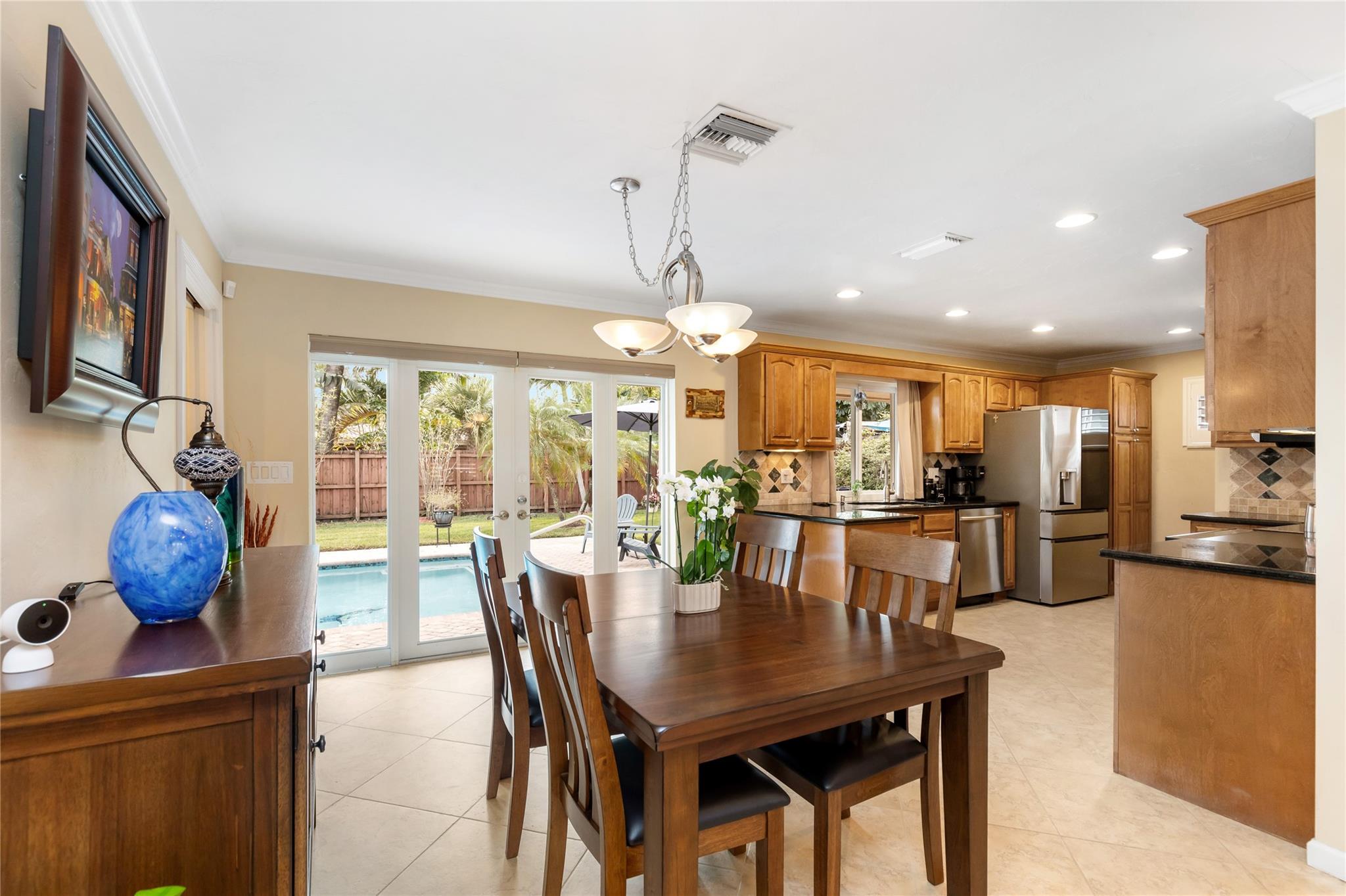 Beautifully maintained 3BR/2BA home in sought after Imperial Point with a private Tropical Backyard and Sparkling Pool. Enjoy an updated kitchen with brand-new appliances. Spacious living and dining areas with a Full-House Generator, plantation shutters, crown molding and neutral finishes throughout. The primary suite offers pool access and a well-appointed bath with jetted tub and glass enclosure. Outdoor features include a heater/chiller pool system, lush landscaping, and ample patio space for entertaining. Additional upgrades: New A/C, Mosquito Misting system, and Impact Windows/Doors. Move-in ready home in a fantastic East Fort Lauderdale location, close to shopping, dining, parks, and about 2 miles to the beach without the beach price!