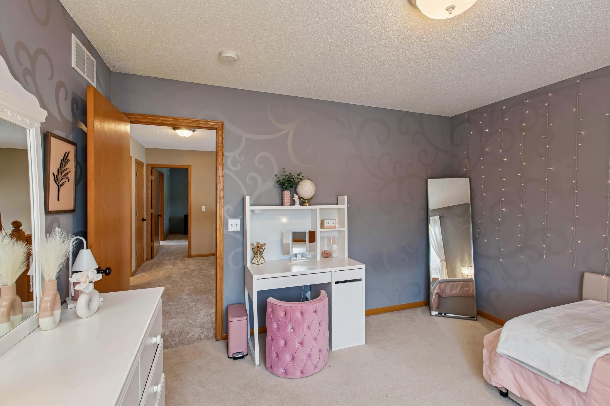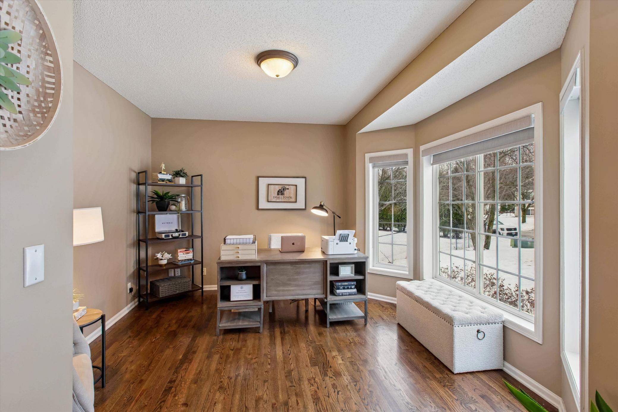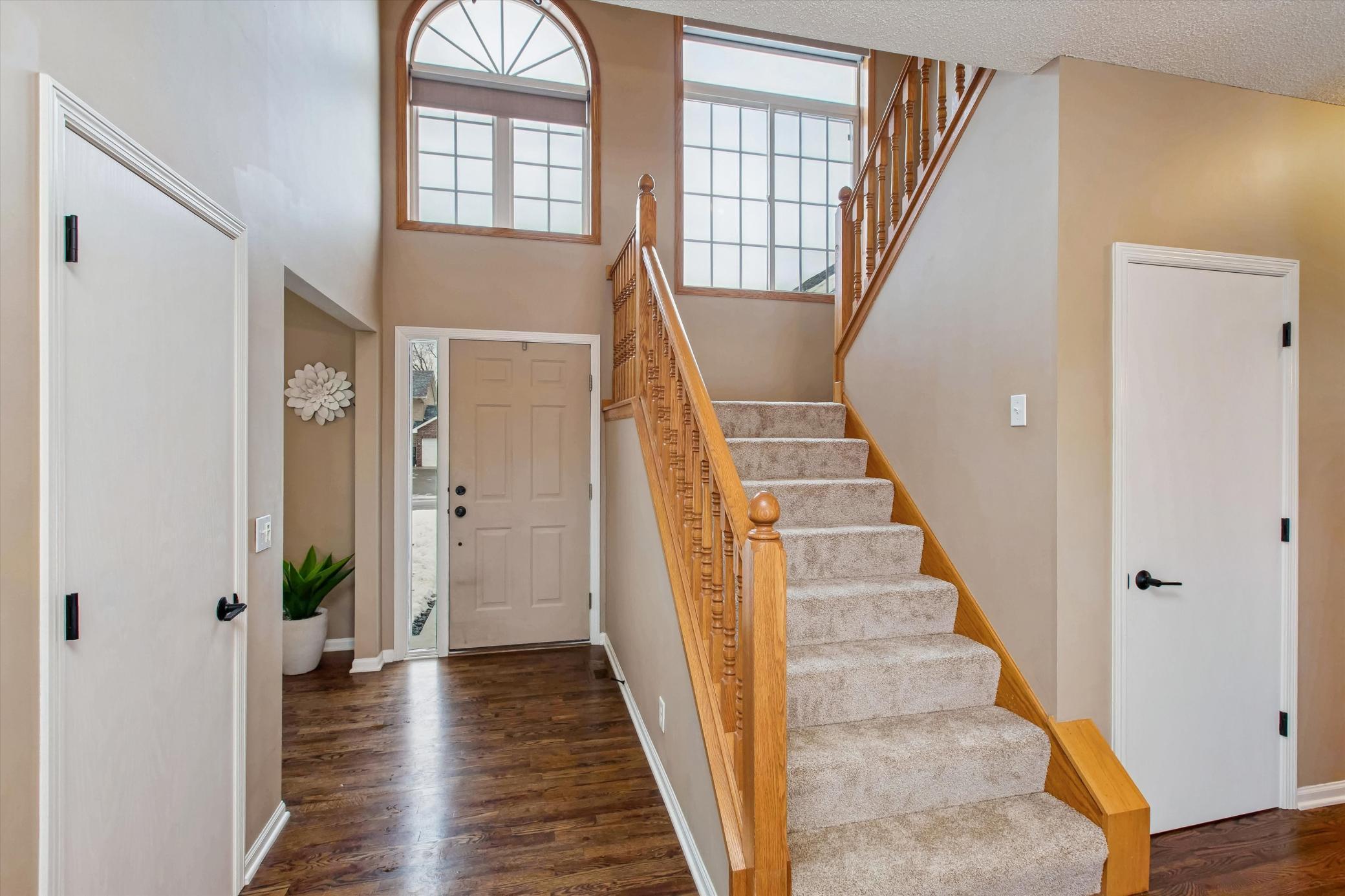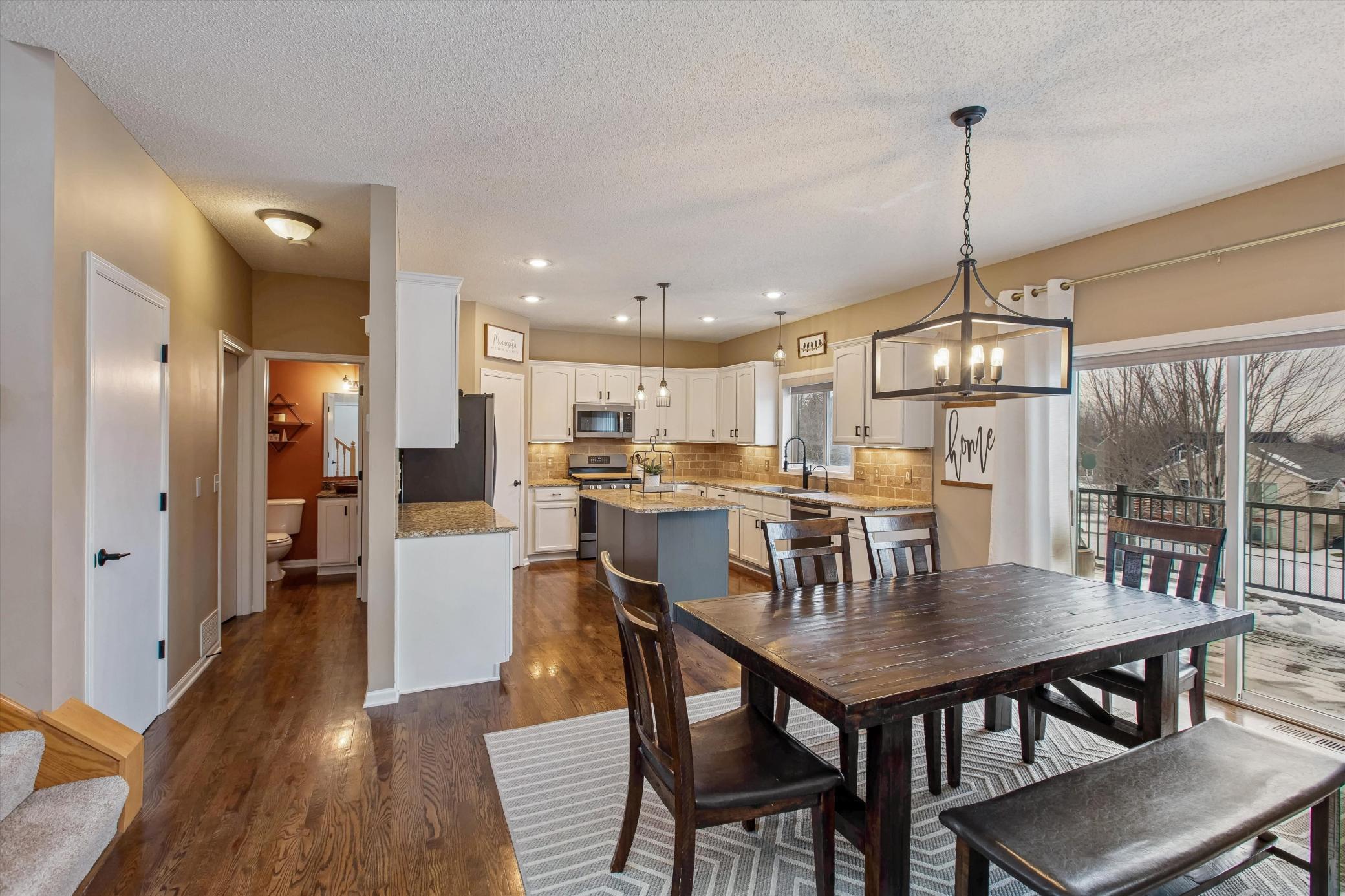 Well-maintained and updated 3-bedroom, 2.5-bath home with numerous improvements completed since ownership, including newly sanded and stained hardwood floors, freshly painted trim, doors, and main-floor cabinetry, and upgraded light fixtures. Big, extra deep, 750 sq. ft., heated, three car garage. Spacious unfinished, walkout lower level, plumbed and ready for bedroom number four and bathroom number four. Brand-new carpet adds a fresh, move-in-ready feel. Exterior updates include a brand new fence, a new asphalt driveway, concrete sidewalk, stamped concrete patio, professional landscaping, upgraded aluminum deck railings, new retaining wall with shed, and new garage doors. Major updates include upgraded appliancesrefrigerator, oven, microwave, dishwasheralong with new A/C and water heater. Conveniently located with quick and easy access to I-35dont miss this move-in-ready opportunity.