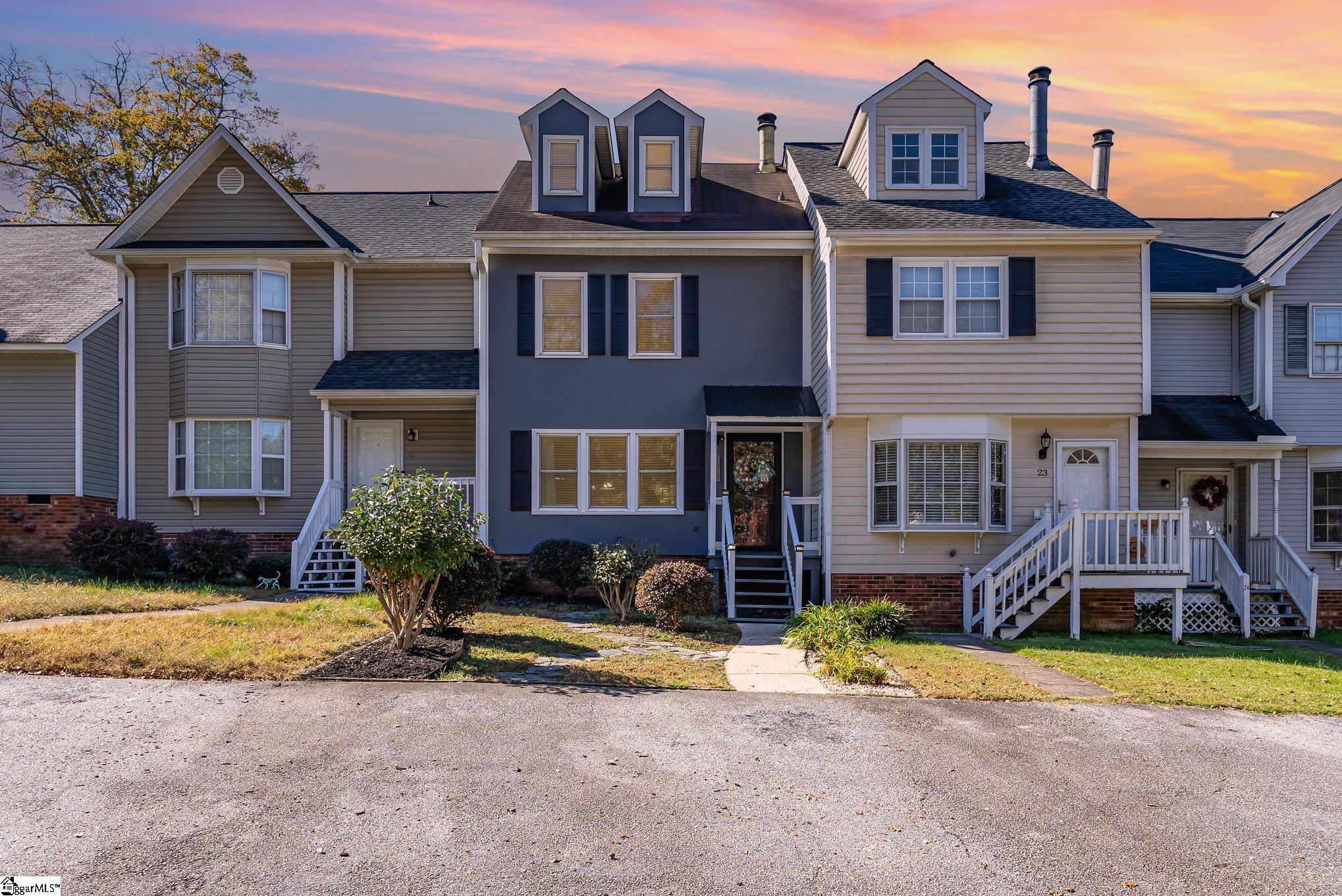 22 Hidden Springs Rd is an adorable 3 bed 2.5 bath townhome close to downtown Spartanburg and all the wonderful amenities that entails. HOA due's are only $197 a year! New shutters, new covered front porch and lovely landscaping provide instant curb appeal. Walk into this cozy living room with fresh paint, updated windows, an impressive stone hearth and mantle perfect for a flat screen TV. Next we have the kitchen with beautiful laminate flooring, refreshed cabinets, tile backsplash and cut out creating an open feel to the living/dining space. The convenient powder room has been updated as well with new light, wall plates, mirror and fresh paint. Upstairs we have 2 spacious bedrooms each equipped with ceiling fans and have a shared full bathroom. Bedroom 2 even has new carpet. The third level could easily be the primary suite as well offering plenty of space to spread out with a private full bathroom with updated lighting and fixtures. Finally let's head out back to your ,fully fenced, back yard get-a-way. Relax and unwind on your private covered patio after a long day. This home is located near award winning schools and shopping/dining for all tastes. Be sure to schedule your private tour today.