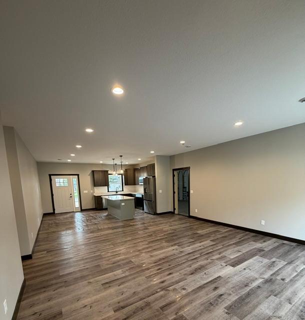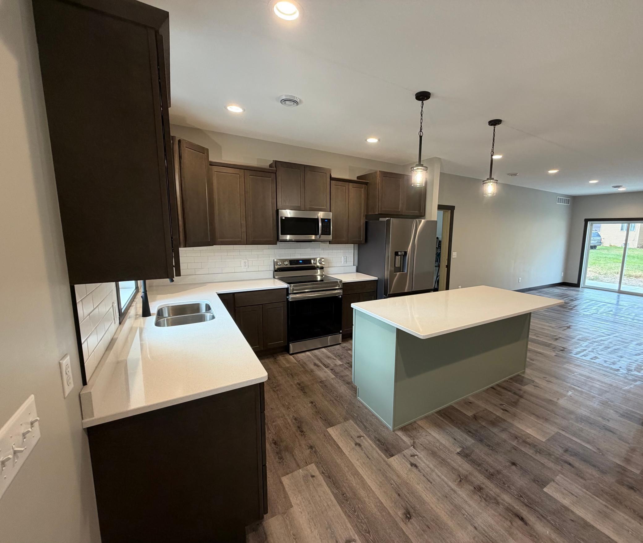 Move-in ready new construction ranch in Clear Lake, WIThis quality-built slab-on-grade home offers 1,656 sq ft of single-level living with 3 bedrooms, 2 bathrooms, and an oversized 936 sq ft 2-car garage. The open-concept layout features 9 ft ceilings, luxury LVP flooring, solid wood doors, and custom trim throughout. The kitchen includes quartz countertops, an island, custom cabinetry, and stainless steel appliances. The private primary suite offers a walk-in closet and a spacious bath with double vanity and custom tile walk-in shower. Additional features include a large laundry/mud room, spray foam insulation with blown-in attic, forced air heating (in-floor heat plumbing readyboiler optional), and energy-efficient construction. Exterior highlights include vinyl siding, cedar-wrapped posts, covered front porch, poured concrete back patio, paved driveway, and completed landscaping. Located on a quarter-acre lot in a quiet Clear Lake neighborhood, this home is ideal for anyone seeking modern comfort with low-maintenance living.