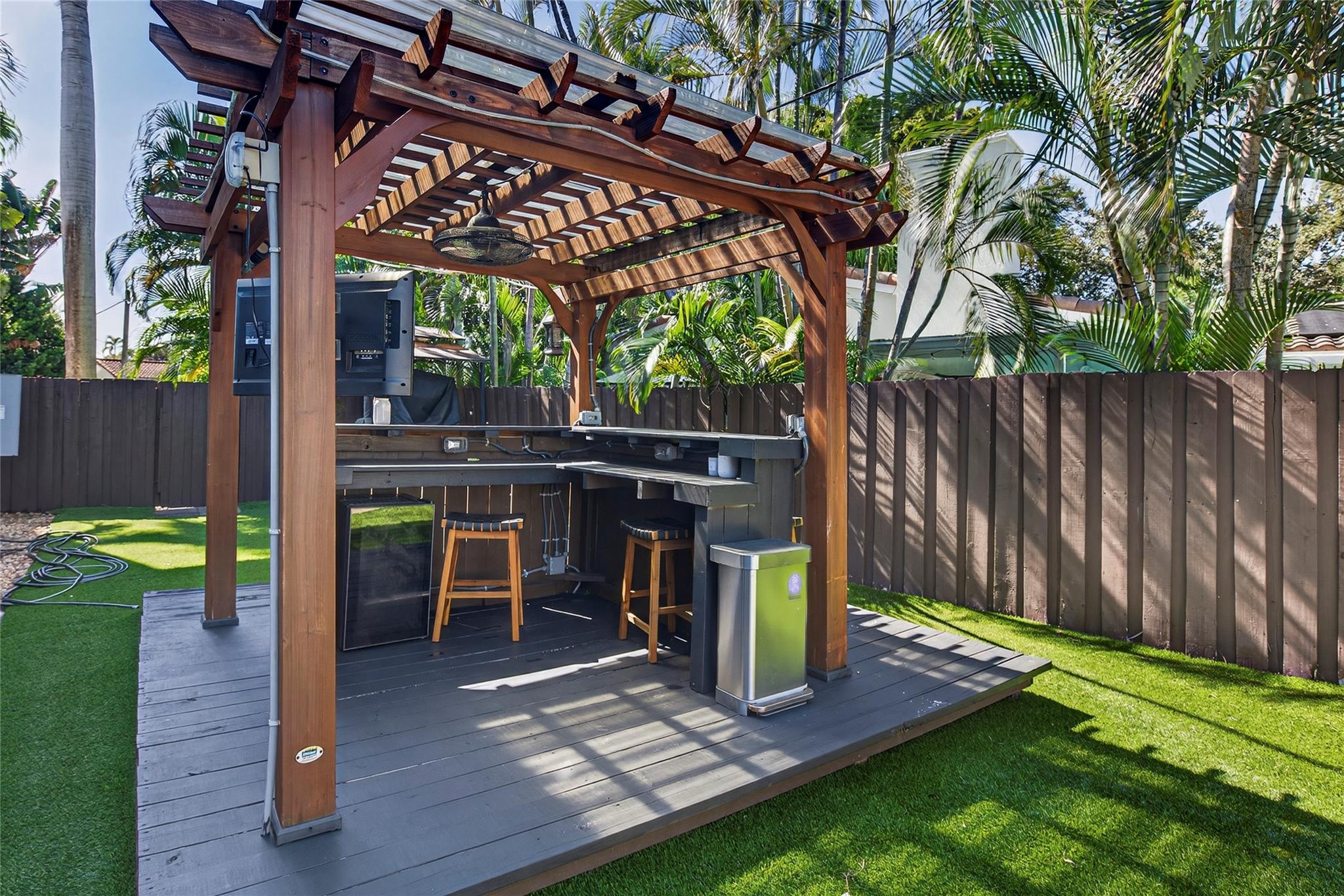 Spectacular renovated 6BD/6BA estate on an oversized lot just minutes from the beach! This modern home features a bright, open floor plan with an updated, first floor primary suite, office, and junior suite on the main level plus three ensuite bedrooms, a loft, and a huge screened terrace upstairs. The bedrooms offer generous space, custom closets, and beautifully updated bathrooms. Impact windows fill the home with natural light throughout. The brand-new kitchen boasts white shaker cabinets, quartz counters, a center island with wine storage, farmhouse sink, stainless steel appliances, and a wrap around breakfast bar. Enjoy entertaining in your private backyard oasis with a covered living area, tropical pool, and fully fenced yard perfect for the South Florida lifestyle!