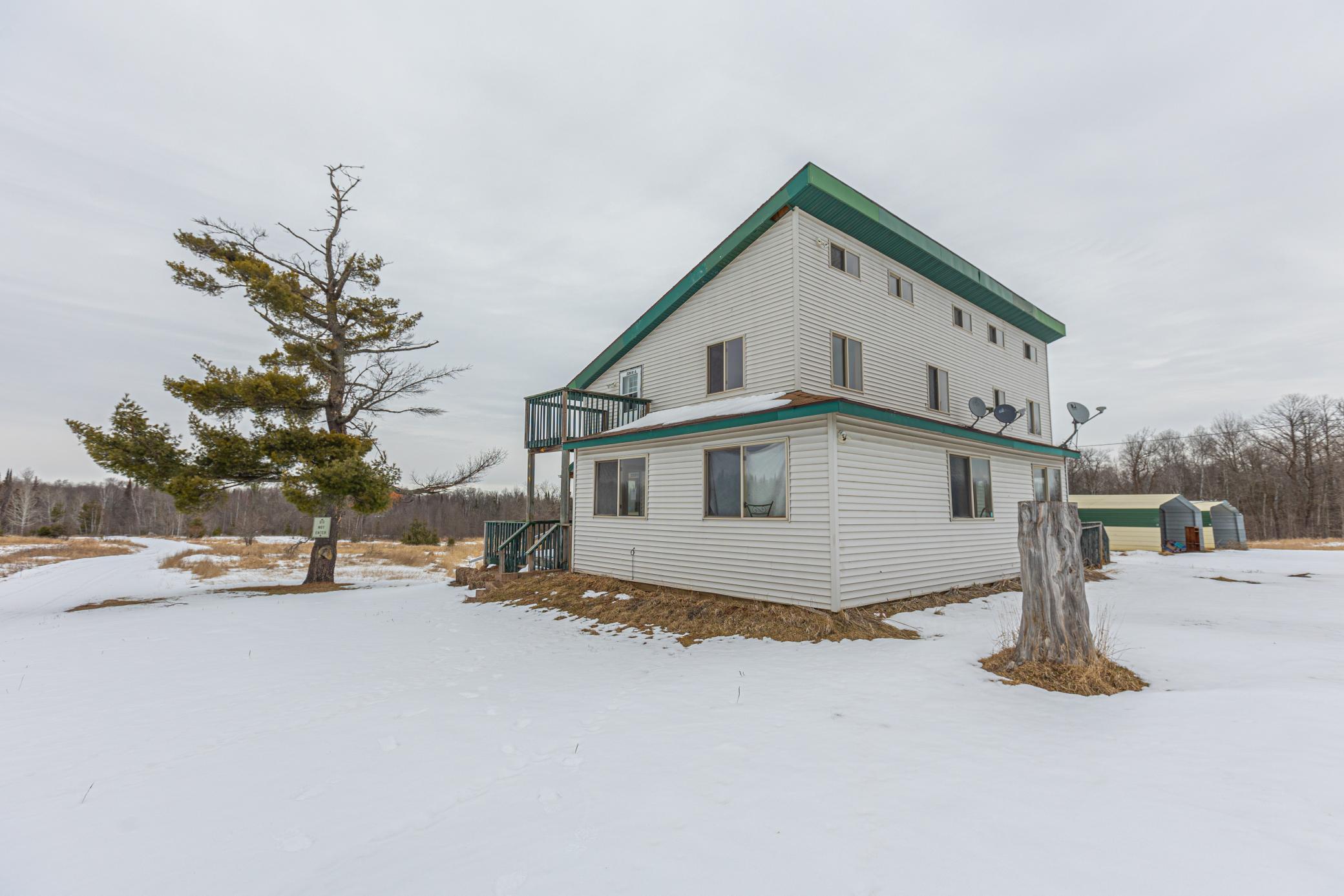 3 houses nestled on 38+/- acres directly 20 miles east of Malmo (north end of Mille Lacs Lake) in Aitkin county. The 3 houses combined add up to roughly 7,800 finished sqft. On top of this there is a 58 tower structure to get an awesome look from up above and an outbuilding (48x31). You will also find yourself smack in the middle of a ton of public ground to really get you the up north feel. To the west and to the south of property is the Solana State Forest, which consists of 55,000 public acres and endless atv trails to get off the grid. Not to mention endless deer, grouse, turkey and other hunting opportunities. Contents of outbuilding stay except for atv and tractor is available for purchase. If you are looking for an awesome hunting camp for a big group of people, a retreat for big groups or if you are looking for an investment opportunity for renters this property has a lot to offer. This would also be perfect for a group of buyers looking for a get away from the cities.