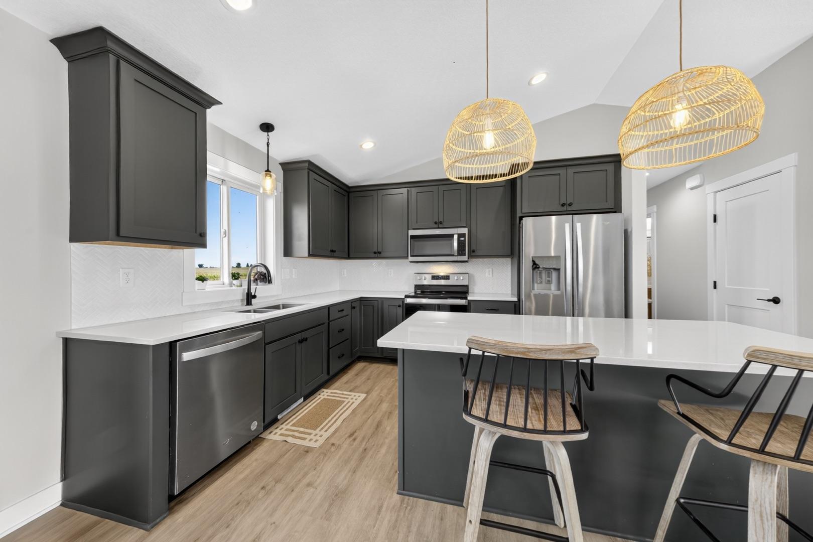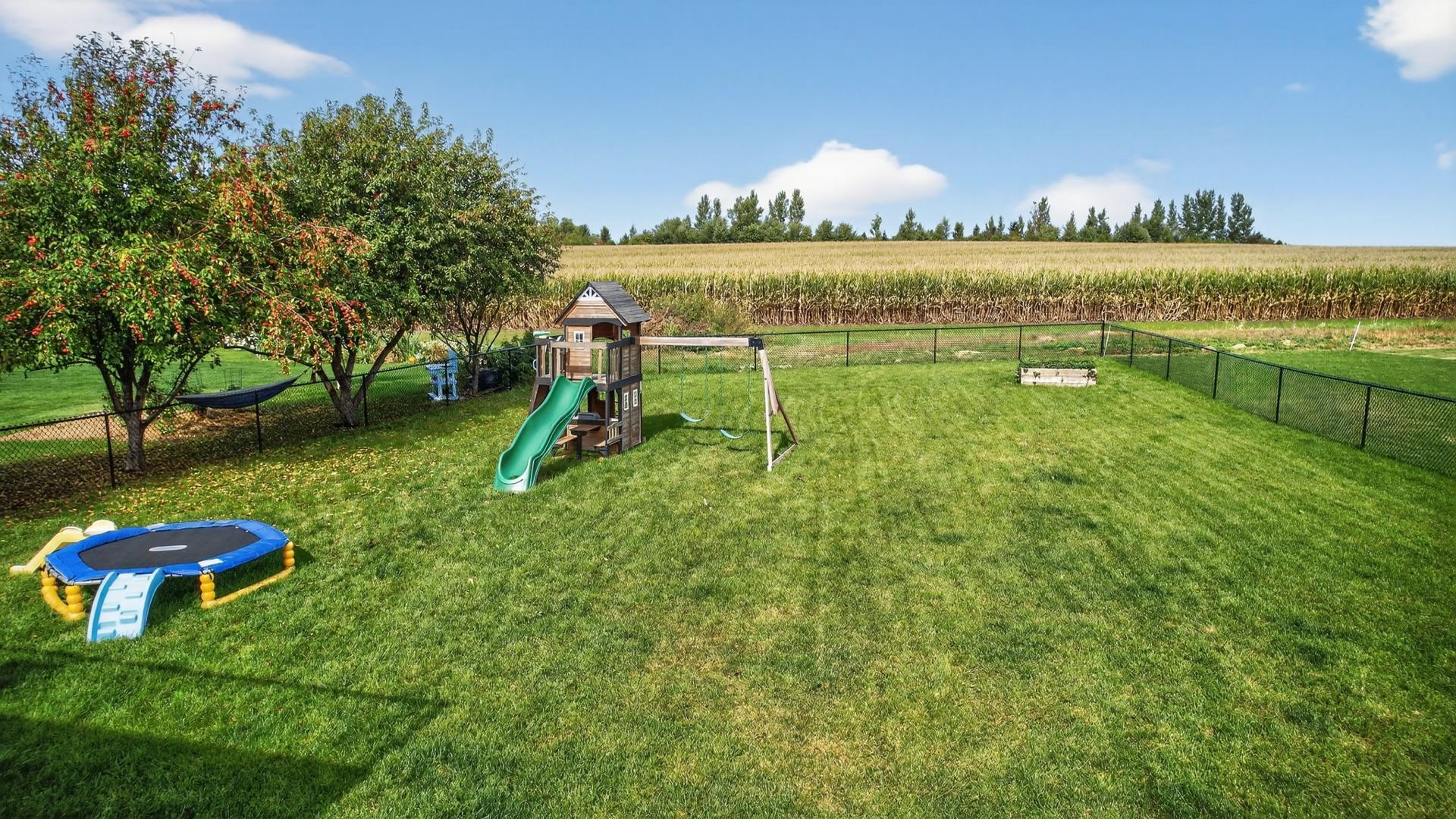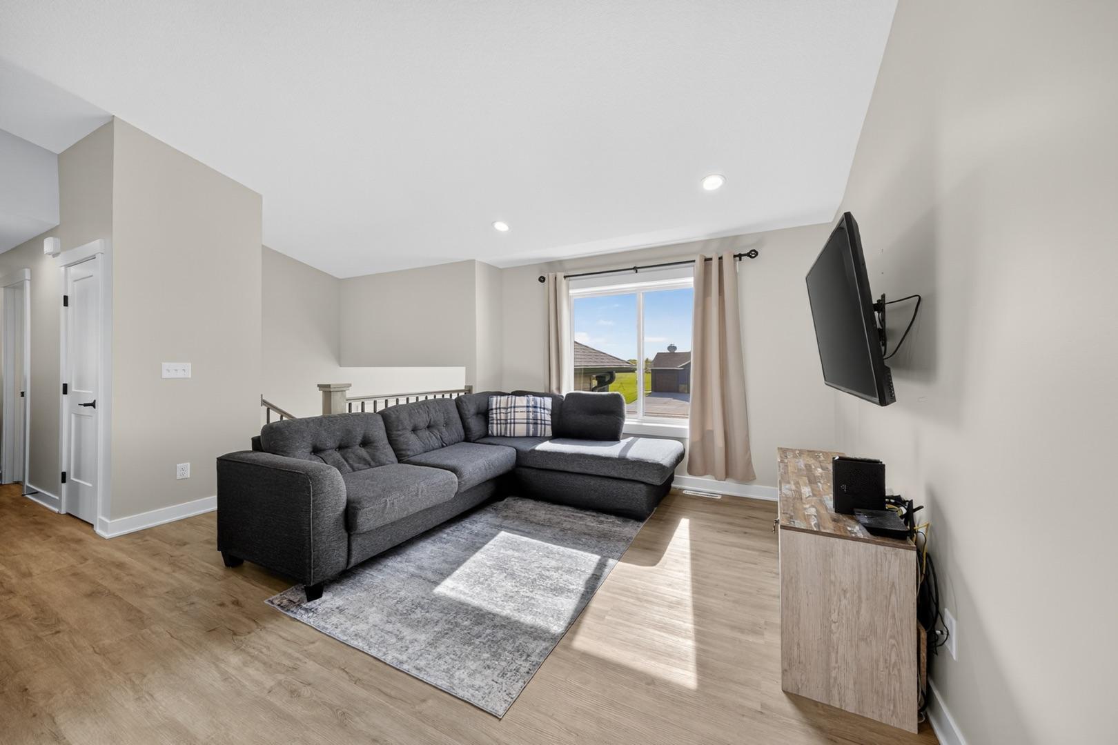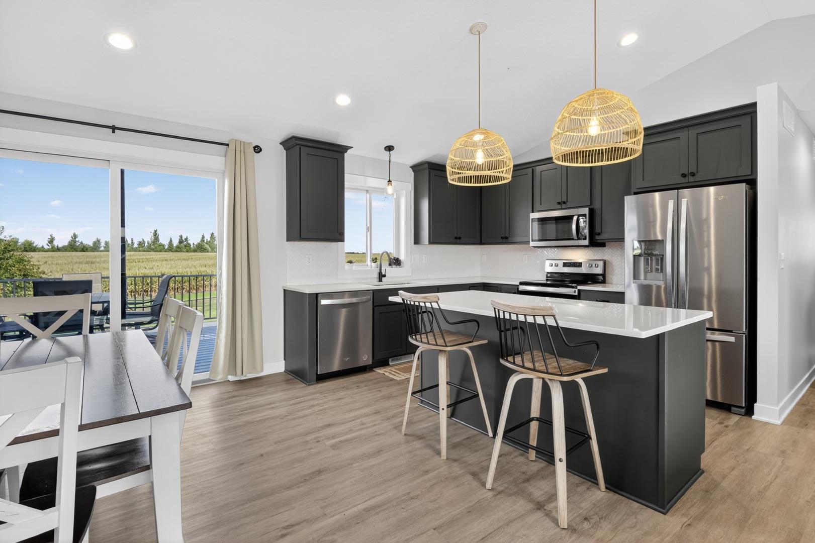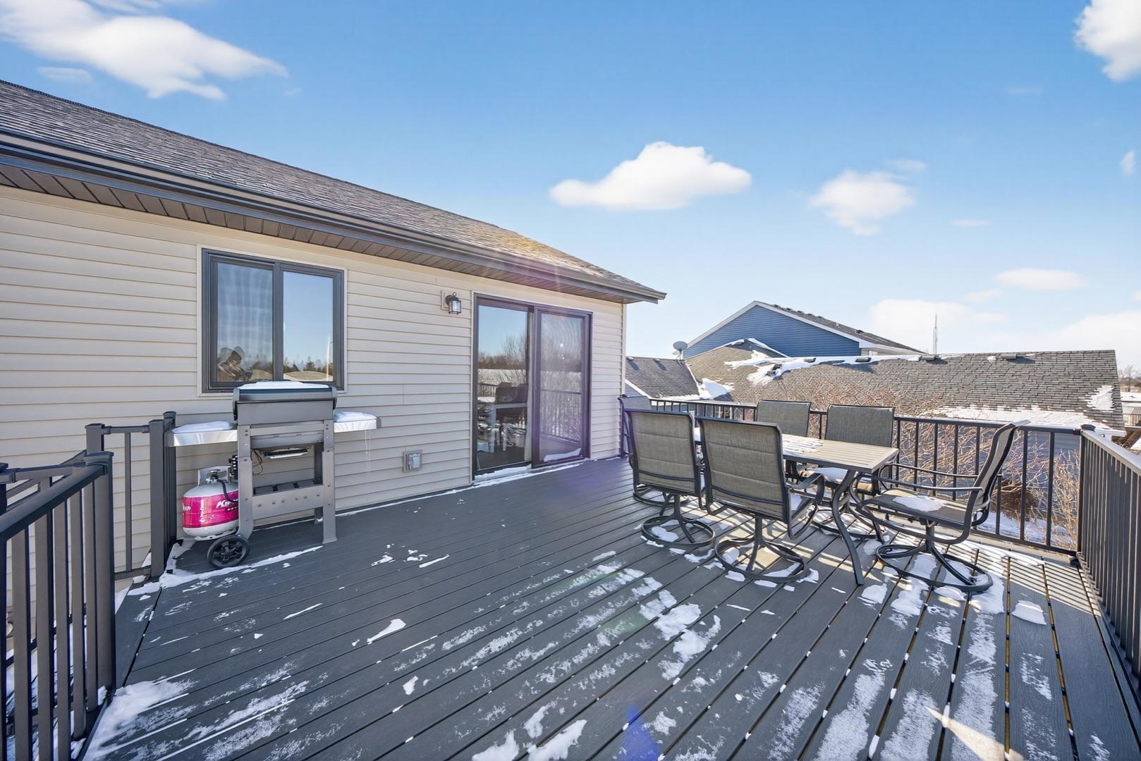 Built in 2023, this 4-bedroom, 3-bath home combines modern design with everyday comfort. The open main level features a bright, open concept living area and a spacious kitchen with sleek countertops, stainless steel appliances, and a center island, plus a dining area that opens to a maintenance-free deck. The primary suite offers a walk-in closet and private bath. The finished lower level adds a large walk-out family room with a beautiful corner fireplace, 2 bedrooms, full bath, and laundry room with storage. The washer, dryer, and water softener are also included. Outside, the fully fenced backyard backs up to open fields with no rear neighbors and includes a garden bed, play set (negotiable), and plenty of space to enjoy. Builder warranties are still in effect, offering peace of mind. Located in a desirable NW neighborhood, this thoughtfully finished home provides quick access to Rochester and I-90 and is the perfect place to call home.