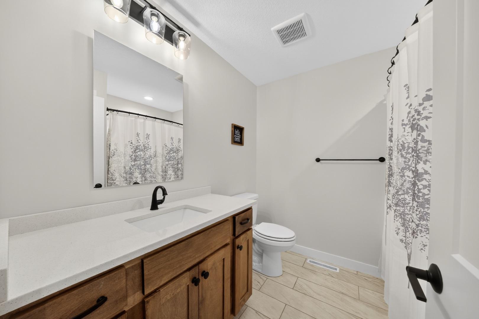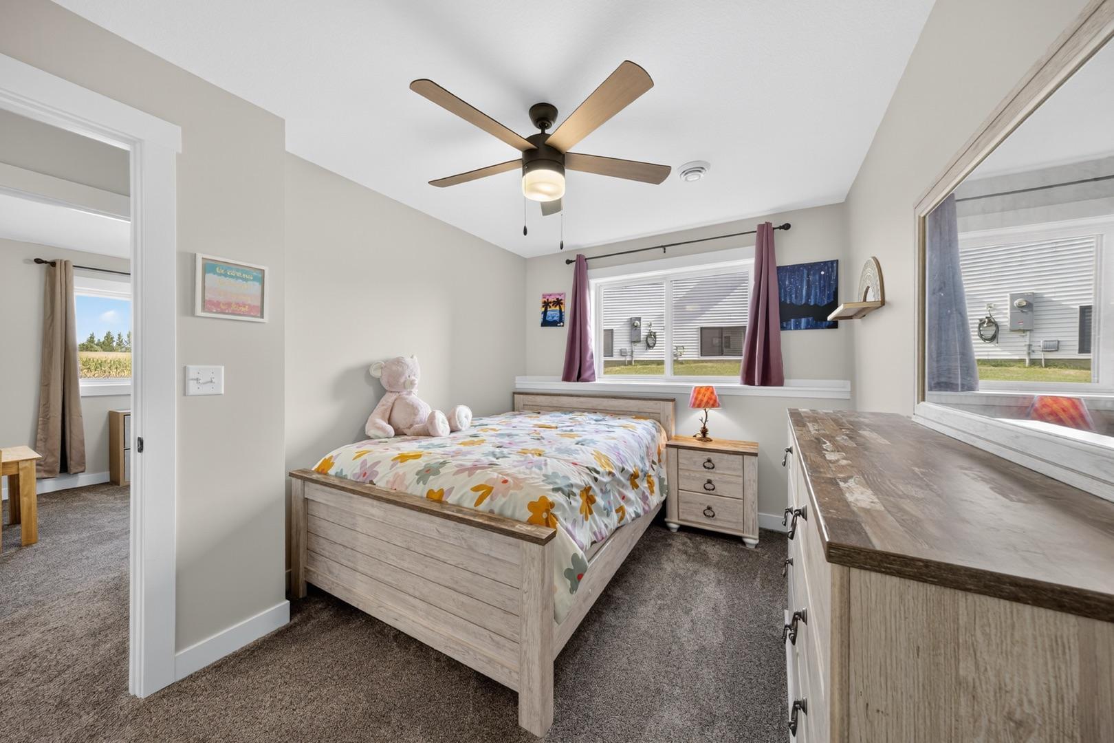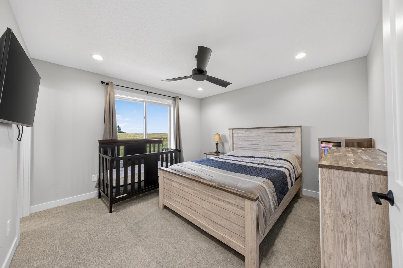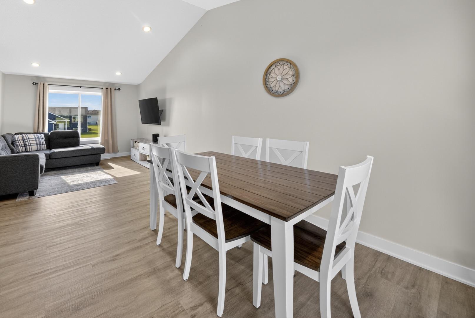 Built in 2023, this 4-bedroom, 3-bath home combines modern design with everyday comfort. The open main level features a bright, open concept living area and a spacious kitchen with sleek countertops, stainless steel appliances, and a center island, plus a dining area that opens to a maintenance-free deck. The primary suite offers a walk-in closet and private bath. The finished lower level adds a large walk-out family room with a beautiful corner fireplace, 2 bedrooms, full bath, and laundry room with storage. The washer, dryer, and water softener are also included. Outside, the fully fenced backyard backs up to open fields with no rear neighbors and includes a garden bed, play set (negotiable), and plenty of space to enjoy. Builder warranties are still in effect, offering peace of mind. Located in a desirable NW neighborhood, this thoughtfully finished home provides quick access to Rochester and I-90 and is the perfect place to call home.