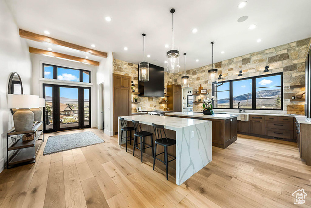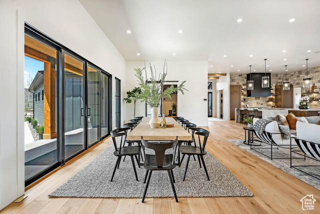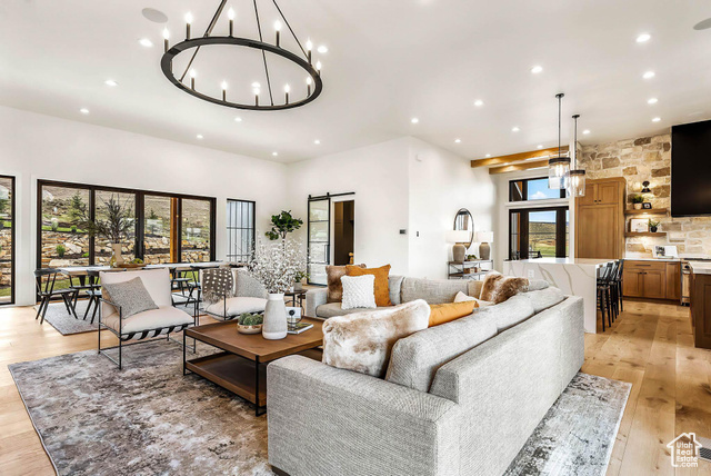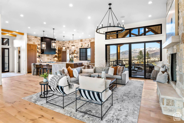 Harwood Homes proudly presents The Savannah, a fully furnished, Cozy Modern estate just 15 minutes from downtown Park City. Perched at the end of a private cul-de-sac, this exceptional residence offers sweeping views of the valley and surrounding mountains. Thoughtfully designed for both everyday comfort and effortless entertaining, The Savannah features main-level living, anchored by a stunning chef's kitchen with an oversized butler's pantry. Warm, natural tones and textures echo throughout the home, consistent with our signature Cozy Modern aesthetic. Expansive windows and large sliding glass doors flood the interior with natural light and frame breathtaking views from every room. Multiple porches, private patios, and spacious decks invite indoor-outdoor living, while a brilliantly designed detached casita offers flexibility as a guest suite or private office. The lower level is ideal for hosting, with a secondary kitchen, game areas, and complete guest accommodations. A generously sized safe room adds peace of mind, and the impressive 2,100 sq ft heated garage comfortably fits five vehicles. Amenities include a dedicated pickleball court and fitness gym, with a private wellness suite beneath the garage featuring a sauna and cold plunge for full-body recovery. Surrounded by thoughtfully curated landscaping, The Savannah brings the beauty of the Uinta Mountains right to your doorstep. Sold fully furnished and landscaped, this is luxury mountain living at its finest.