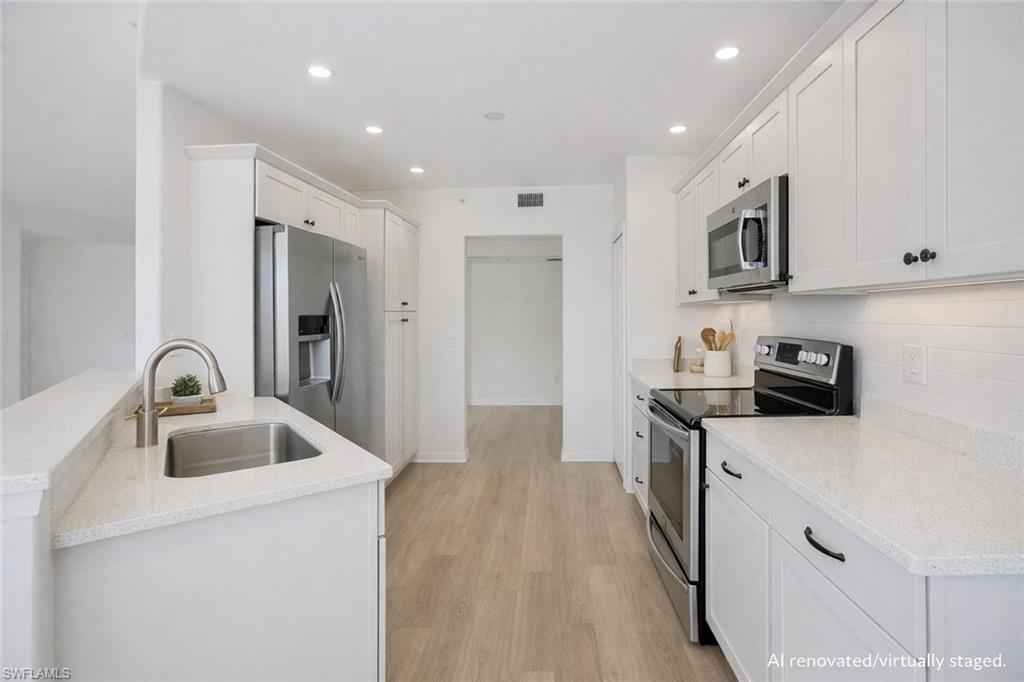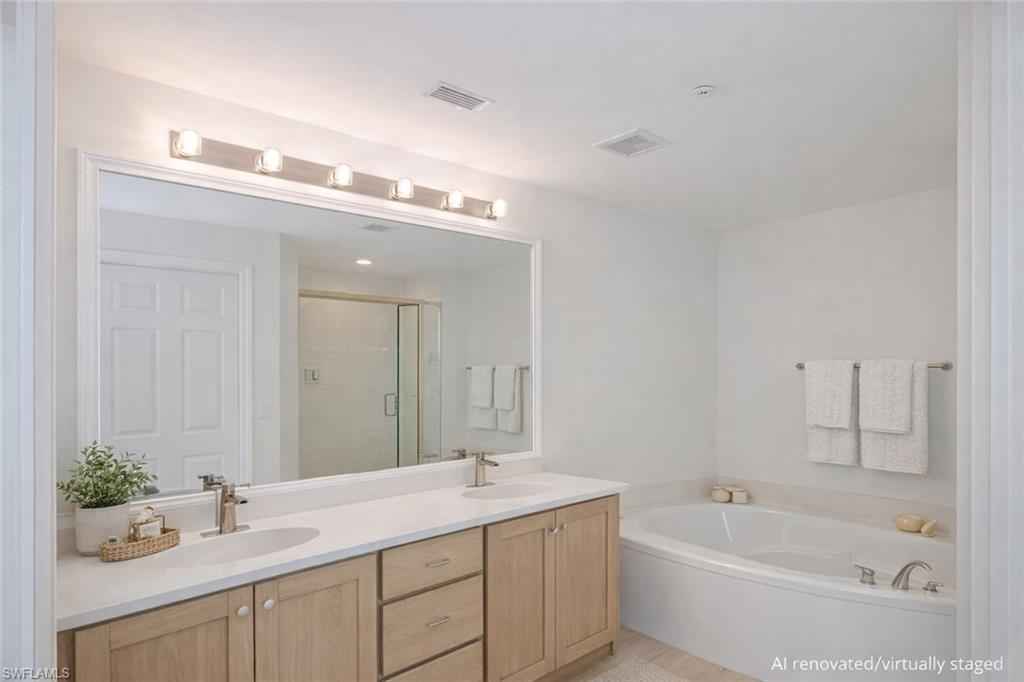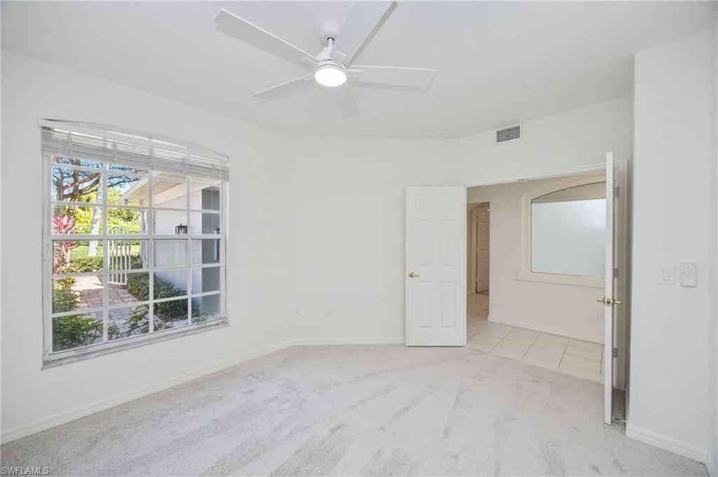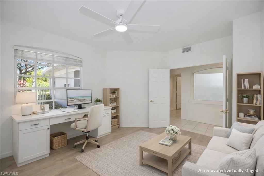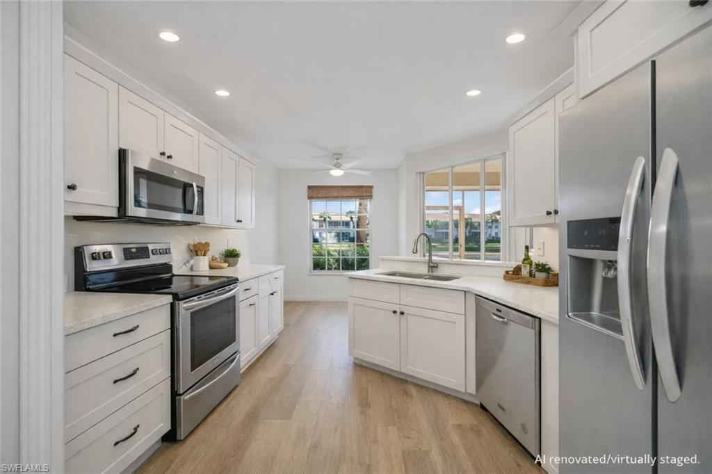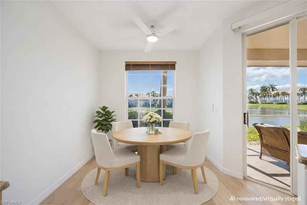 LOWEST-PRICED RESIDENCE IN PELICAN MARSH at time of listing! Perfect for year-round living or a seasonal Southwest Florida retreat. Located in the prestigious gated golf course community (golf is optional) of Pelican Marsh, this well-maintained lakefront first-floor 2 bedroom plus den (or 3rd bedroom) condo offers privacy, convenience, and resort-style amenities. Ideally situated with four gated entrances and easy access to the renowned shopping and dining district of Fifth Avenue South, Mercato and Bonita Springs, as well as the beautiful Gulf beaches. Enjoy desirable southern exposure and peaceful lake views from your screened lanai, and enjoy that there are no residences directly across the street, providing added privacy. xD;xA;xD;xA;The residence features a private gated courtyard entry, spacious great room floor plan, updated kitchen with wood cabinetry, granite countertops and stainless steel appliances, breakfast nook plus formal dining area, split-bedroom layout, guest bedroom with new carpet, den/home office with French doors, and a primary suite with dual sinks, a soaking tub, separate shower, two walk in closets and private lanai access. Additional highlights include an in-residence laundry room with upper cabinetry, attached one-car garage, fresh interior paint, new ceiling fans, and a new water heater (2025).xD;xA;Situated within Arielle, residents enjoy a private community pool plus full access to Pelican Marsh amenities, including 8 lighted Har-Tru tennis courts, 6 pickleball courts, fitness center, bocce, scenic walking and biking trails, pro shop, on-site activities director, and the Courtside Bar & Grill.xD;xA;An exceptional opportunity to own in one of Naplesx2019; most desirable communities at an outstanding value. Arielle allows 3 rentals per year (with a 30 day minimum for each rental) after the first year of ownership. They allow two domestic pets of any size (no pit bulls).xD;xA;xD;xA;One or more photo(s) has been virtually staged, AI generated or rendered.
