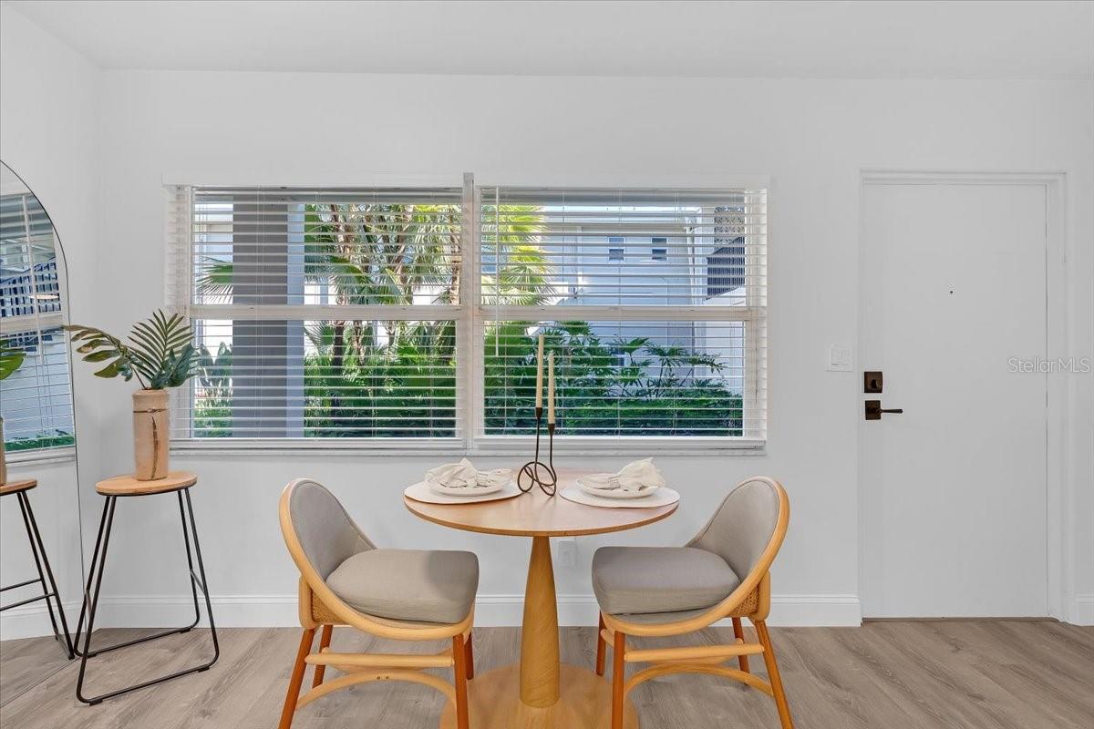Intimate downtown living in one of the most ideal locations in town, where vibrant Downtown transitions to St. Petersburgs revered Historic Old Northeast. This beautifully remodeled 1-bedroom, 1-bath ground-level condo opens directly to a lush, professionally landscaped courtyard, creating a peaceful and private extension of the living space. The seller has thoughtfully refinished every surface, delivering a fresh, modern interior within a charming boutique community. Located just behind the Palladium Theatre and moments from downtown St. Petes dining, shopping, coffee shops, parks, and waterfront, this residence offers walkable and bikable urban living with a quiet neighborhood feel.