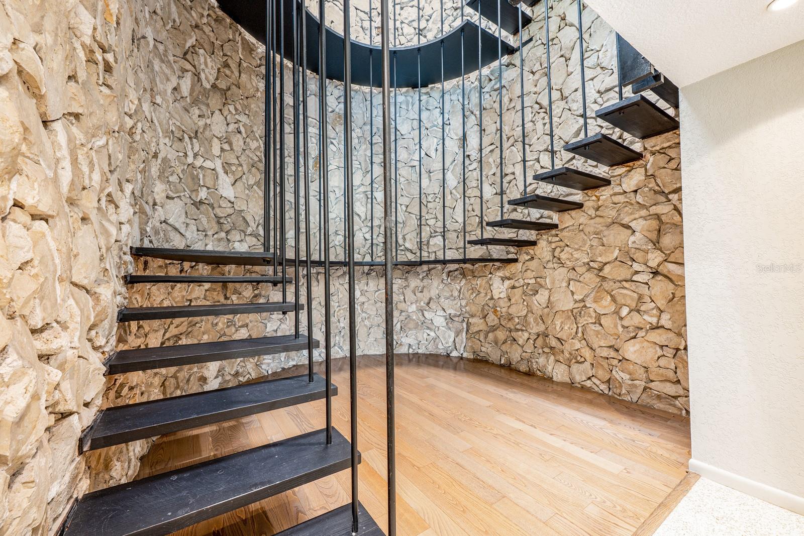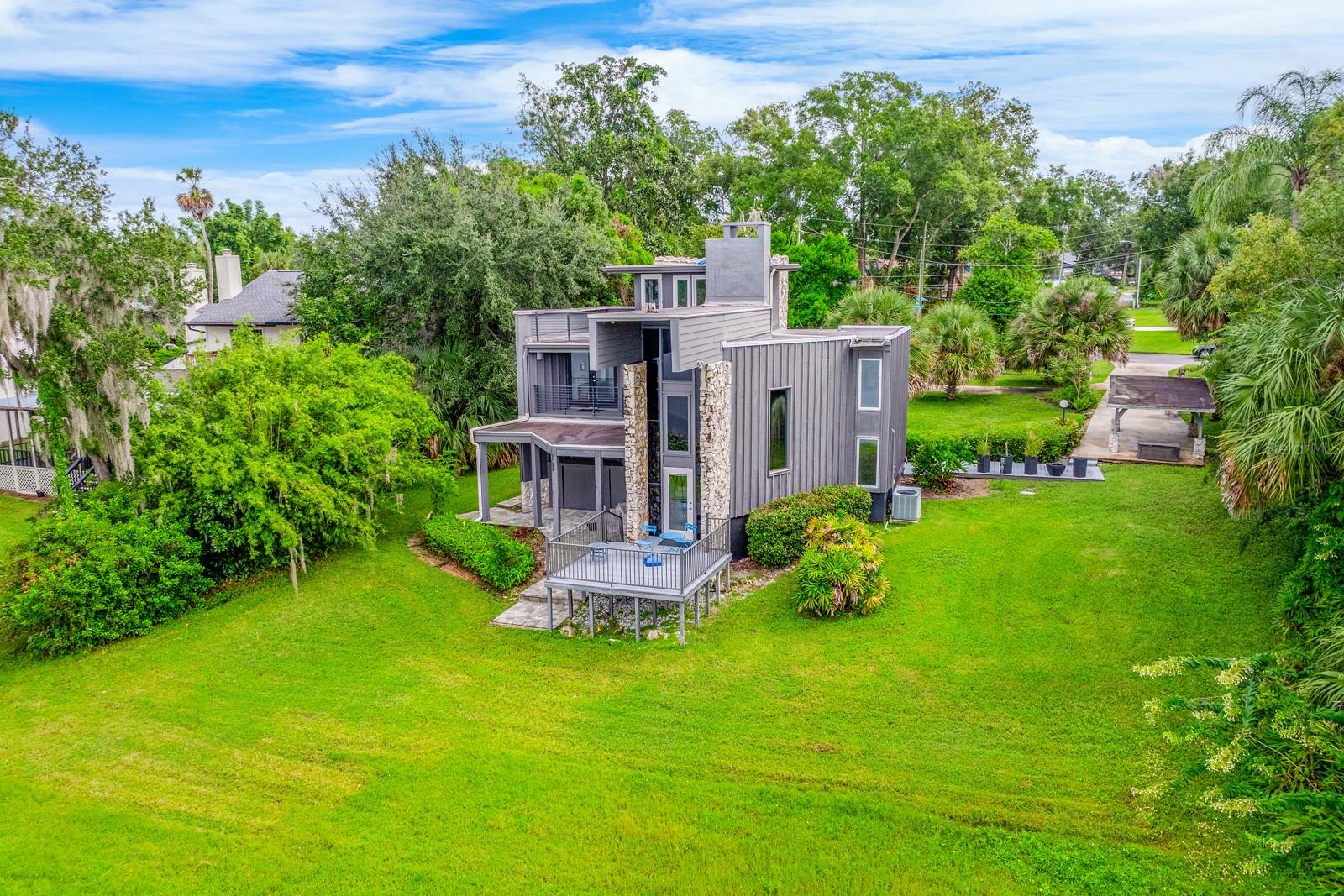 One or more photo(s) has been virtually staged. Ask about a lender provided RATE BUY-DOWN CREDIT on this home *** Seller may consider buyer concessions if made in an offer *** Rare opportunity to own a piece of architectural history on the shores of PRIVATE, SKIIABLE LAKE ADELAIDE NO HOA, just pure, unfiltered charm and freedom! This one-of-a-kind three story masterpiece originally designed by architect Frank Sheehy for renowned Orlando symphony pianist Bill Stubbs, blends striking mid-century modern design with breathtaking WATER VIEWS and timeless craftsmanship. Tucked away off SR 436 in a quiet community that feels worlds away, yet is just minutes from I-4, shopping, dining, and AdventHealth, making it a true hidden gem. Sitting on nearly HALF AN ACRE (.47), this home is thoughtfully placed to maximize lake views from every level, with MULTIPLE OUTDOOR SPACES on different levels 4 in total to soak in the sweeping views. Inside, you will be pleased to find beautiful terrazzo and engineered hardwood flooring, SOARING CEILINGS, and massive windows that drench every room in NATURAL LIGHT. The design is inspired by Frank Lloyd Wright, with an updated, modern kitchen that flows into the living and dining areas complete with a quartz sink and stylish fixtures. But the real showstopper? The jaw-dropping SUSPENDED STAIRCASE, winding up through the home, with treads hung from steel rods anchored to the ceiling and surrounded by walls of 16 Chert rock a sculptural centerpiece that must be seen to be believed! Not to be outshined, the spacious living room delivers a 22 CEILING and cozy wood burning FIREPLACE built into a feature wall. The main living area is paired with a half bath for added convenience. The second floor is home to restful bedroom spaces, and the third floor offers flexible space for a third bedroom, loft, office, studio or reading nook with direct access to the ROOFTOP DECK and uninterrupted lake views! The home has been well maintained with an UPDATED ROOF (2018), EXTERIOR PAINT (2019), newer DOUBLE PANE ARGON WINDOWS on the lake-facing side, and a newer SEAWALL (1012 panels capped with 1 thick concrete). There is a long circular driveway, covered parking, and the SPRING-FED LAKE is a haven for fishing, boating and skiing your personal slice of waterfront paradise. If you are seeking a home that breaks the mold with rich architectural character, lakefront serenity, and unmatched lifestyle potential this is it! Call today to schedule your tour!