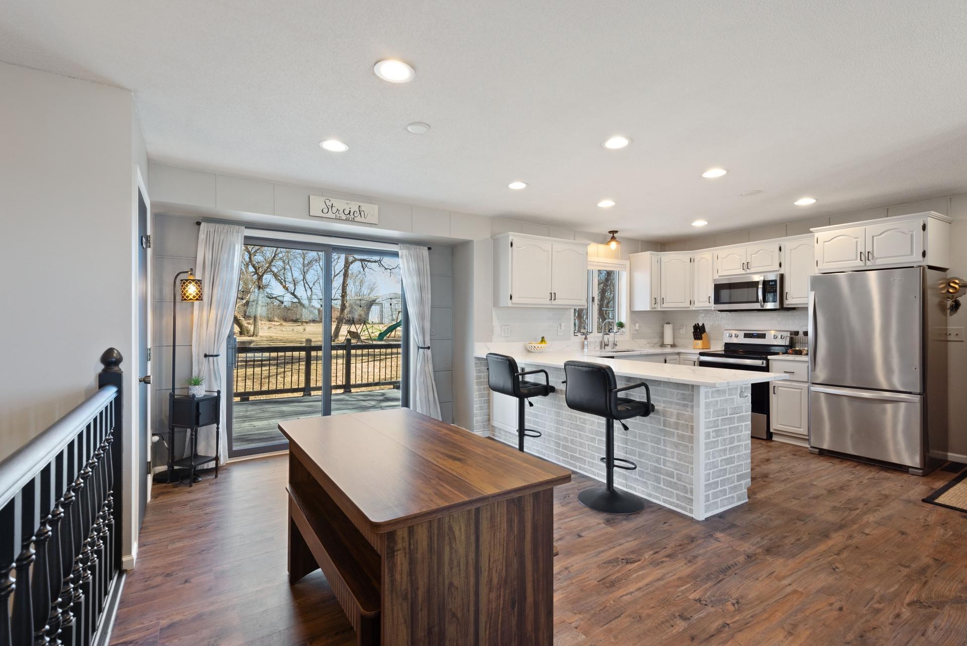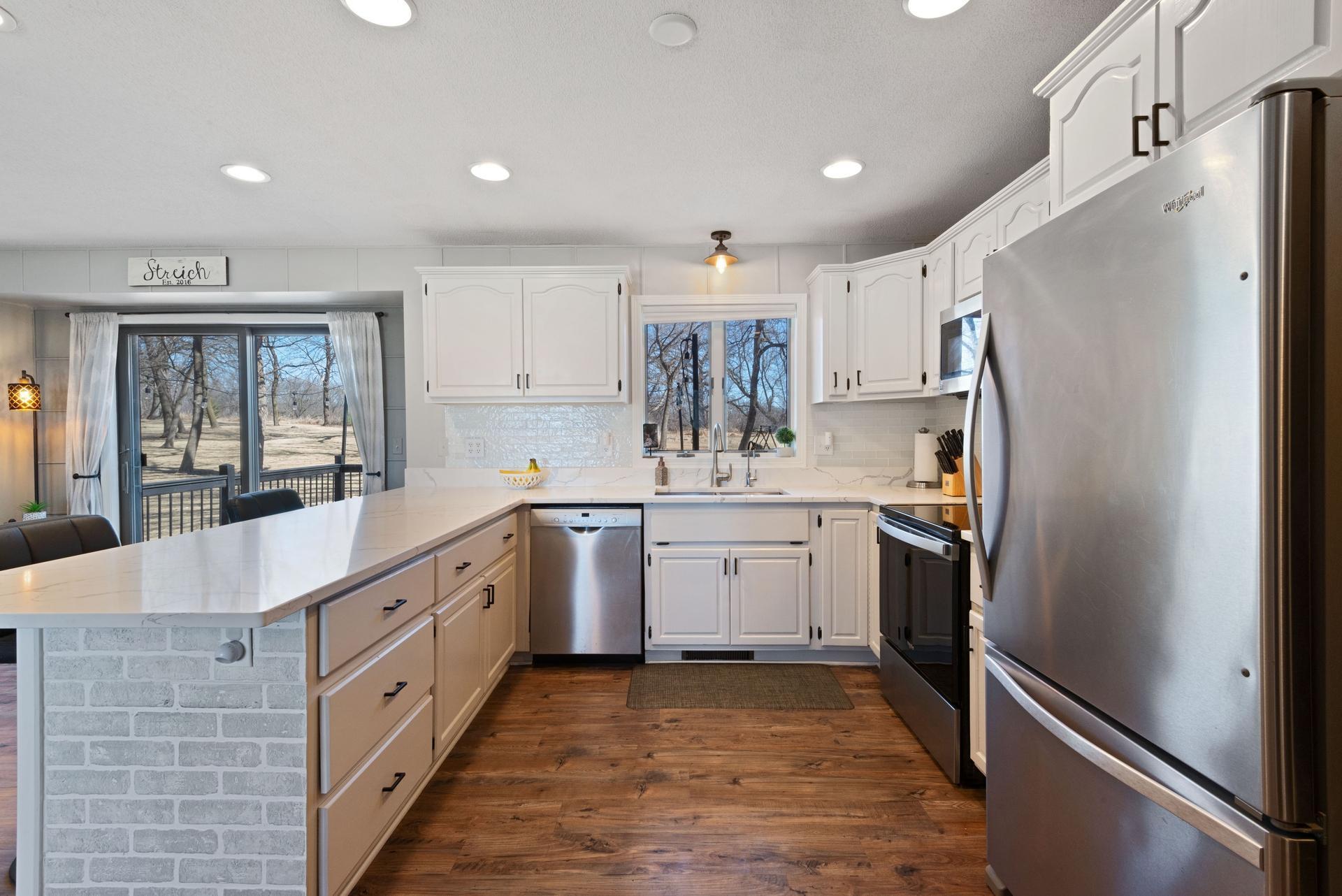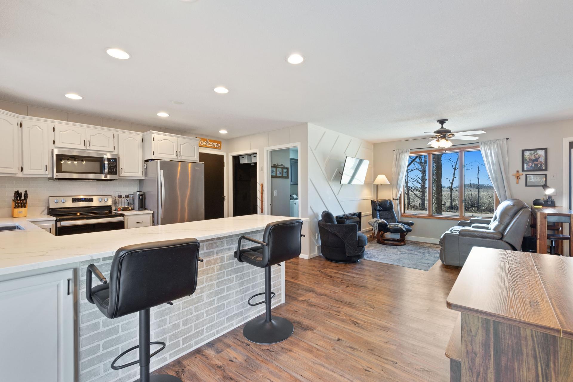 Welcome to 22495 650th Avenue! This charming home is nestled in a peaceful rural setting, offering the perfect blend of tranquility and convenience. Situated on a spacious 1.84-acre lot, the property features 3 generous sized bedrooms and 2 updated bathrooms, providing plenty of room for comfort and relaxation. The recently renovated kitchen boasts stylish finishes, ample cabinet space, and modern appliances, making it perfect for cooking and entertaining. A large pole barn (24'x36') offers plenty of storage, space for hobbies, or a place to work on projects. The home also features a spacious deck off the dining room and great front and back concrete patio space, perfect for enjoying outdoor meals or relaxing while taking in the beautiful surroundings. Set in natures beauty, the property is ideal for outdoor activities, gardening, or simply enjoying the serenity. Despite its peaceful, private location, its just a short drive to Litchfields amenities. Dont miss this incredible opportunity to own a beautiful country retreat with modern updates and an abundance of space!