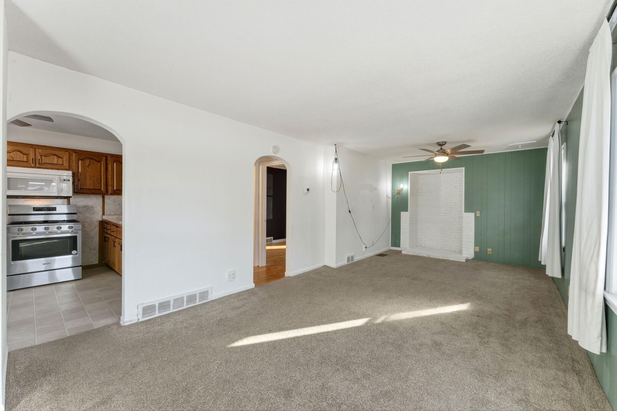 Charming bungalow in a prime Mounds View location! Nestled in a quiet neighborhood and conveniently close to schools, restaurants, shopping, and more. This home features beautiful hardwood floors (also under carpet in living room) and newer stainless steel appliances. The roof, central air, and gas furnace were all replaced in 2019. The upper level has been recently updated with new electrical, fresh paint, updated flooring, and a mini-split system for improved heating and cooling.Enjoy the large, fully fenced backyard (new in 2021), complete with a spacious maintenance free deck and firepitperfect for relaxing or entertaining.