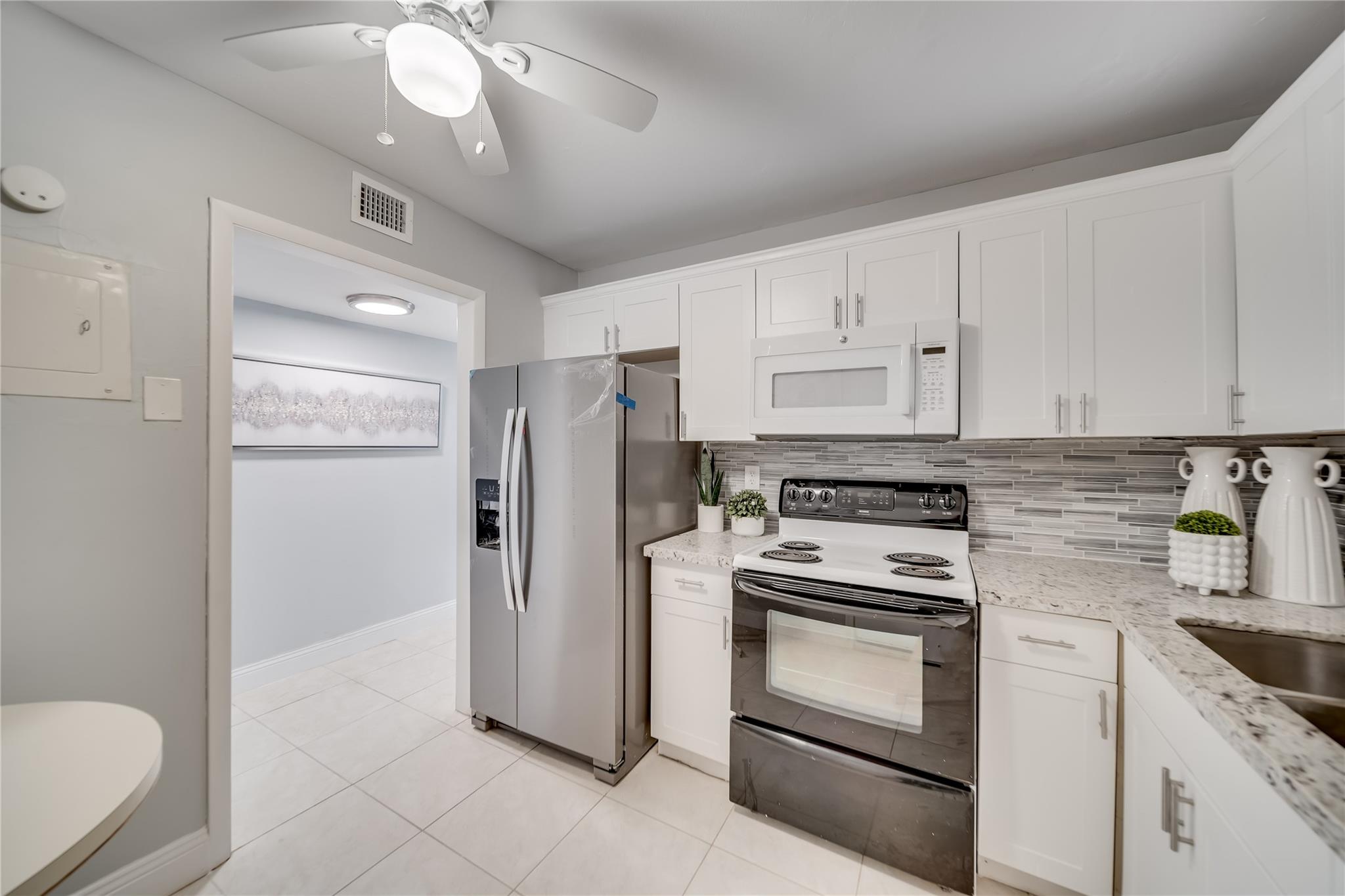 NO NEED TO BE ROYALTY TO OWN THIS SPACIOUS TOTALLY RENOVATED 2 BED/2 BATH CORNER UNIT. IT IS NESTLED IN THE BEAUTIFUL QUIET 55+ COMMUNITY OF CASTLE GARDENS. SEE THIS SUPER LARGE LIVING AND DINING ROOM COMBINATION AREA, ENJOY COOKING AND DINING IN YOUR UPDATATED KITCHEN WITH GRANITE COUNTERTOP AND BEAUTIFUL MOSIAC TILED BACKSPLASH, NEW APPLIANCES, TILED FLOORS THROUGHOUT, EXCEPT FOR THE BEDROOMS AND MASTER BATHROOM WITH VINYL. ENJOY YOUR COFFEE, OR YOUR COCKTAILS ON THE COSEY PRIVATE ENCLOSED PATIO. ENGAGE IN THE THE COMMUNITY ACTIVITIES: 3 HEATED POOLS, BOWLING ALLEY, MEN'S AND WOMEN'S GYM & SAUNA, BILLARD ROOM, COURTESY BUS, SHUFFLE BOARD, LIBRARY, THEATER & PARTY ROOM AND CONFERENCE ROOM. ROVING SECURITY PATROL IN THE NEIGBORHOOD. CLOSE TO HIGHWAYS, SHOPPING, RESTAURANTS, & HOSPITAL.