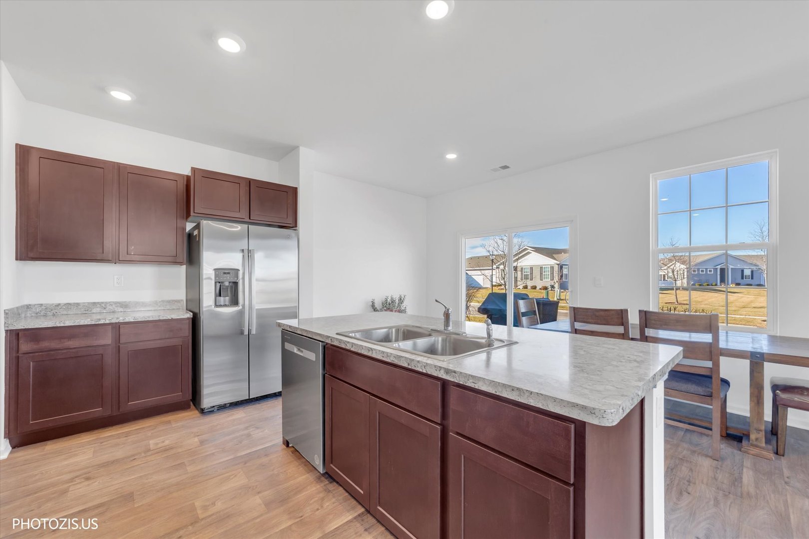 BETTER THAN NEW! Skip the wait for construction and move right into this immaculate, barely-lived-in Elliot Ranch Townhome. Built in 2022 and maintained to model-home standards, this pristine residence offers the modern style of a new build without the 2026 price tag. The airy, open-concept layout features soaring 9-foot ceilings and a designer kitchen anchored by a massive island, stainless steel appliances, and a seamless flow perfect for entertaining. Retreat to the spa-inspired primary suite, complete with a dual-bowl vanity, walk-in shower, and an expansive walk-in closet. This turn-key home includes a 2-car garage and sits within the sought-after Stonewater community-a low-maintenance lifestyle where you can trade lawn care for resort-style amenities. Enjoy the Aquatic Center, fitness hub, scenic ponds, and miles of nature trails right outside your door. Whether seeking a peaceful full-time residence or a smart investment (long-term rentals allowed!), this rare ranch gem is move-in ready today.