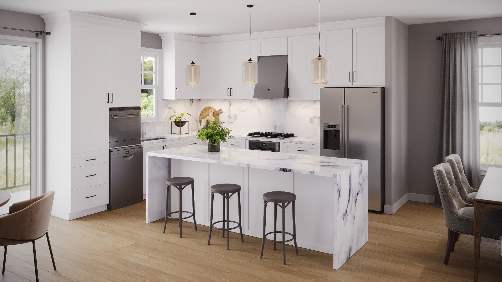 Welcome to this exquisite One-of-a-Kind new construction semi-custom townhome. Located within the #1-rated STEVENSON High School District 125 AND District 103 Top-rated elementary/middle schools!!!. Prairie Pointe townhomes where luxury meets functionality in a highly desirable location.The low-maintenance,attractively landscaped grounds with a private patio for meals or gatherings ( or even just a little solo relaxation ) under the open sky. You will savor pleasant weather days from your vantage point on the breezy balcony. This stunning residence offers 4 spacious bedrooms and 3.1 bathrooms, each crafted with thoughtful design and high-quality finishes for elevated living. Step inside to find a beautifully designed open-concept floor plan with hardwood flooring throughout that flows seamlessly from room to room. The gourmet kitchen is a chef's dream, featuring stainless steel appliances, quartz countertops, and 42-inch custom cabinets, creating an ideal space for both daily life and entertaining. The living room is a natural light-filled space perfect for lounging with your family. Retreat to the sophisticated ensuite primary bedroom, conveniently located is well designed and spacious. In addition to the convenience of the private bathroom, you will find ample closet space to let your wardrobe breathe. The exterior of the property features stunning curb appeal, with sidewalks and tree-lined streets that provide a tranquil setting. This home is ideal for families seeking both quality and convenience. The location offers easy commute to the Metra train, along with nearby shopping and a variety of fine dining options. This property is a gateway to a dynamic lifestyle and functionality, embodying the best of semi-custom craftsmanship in a top-tier community.