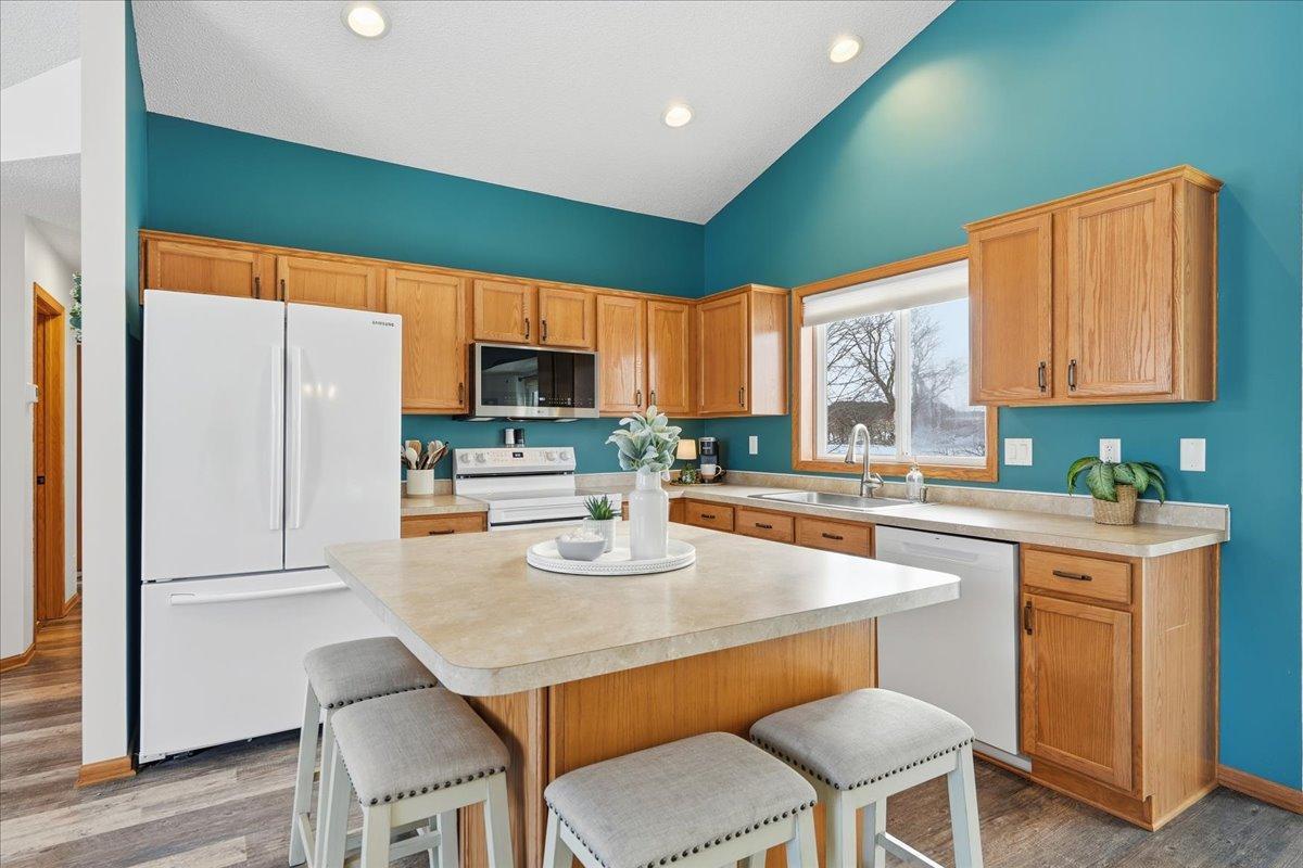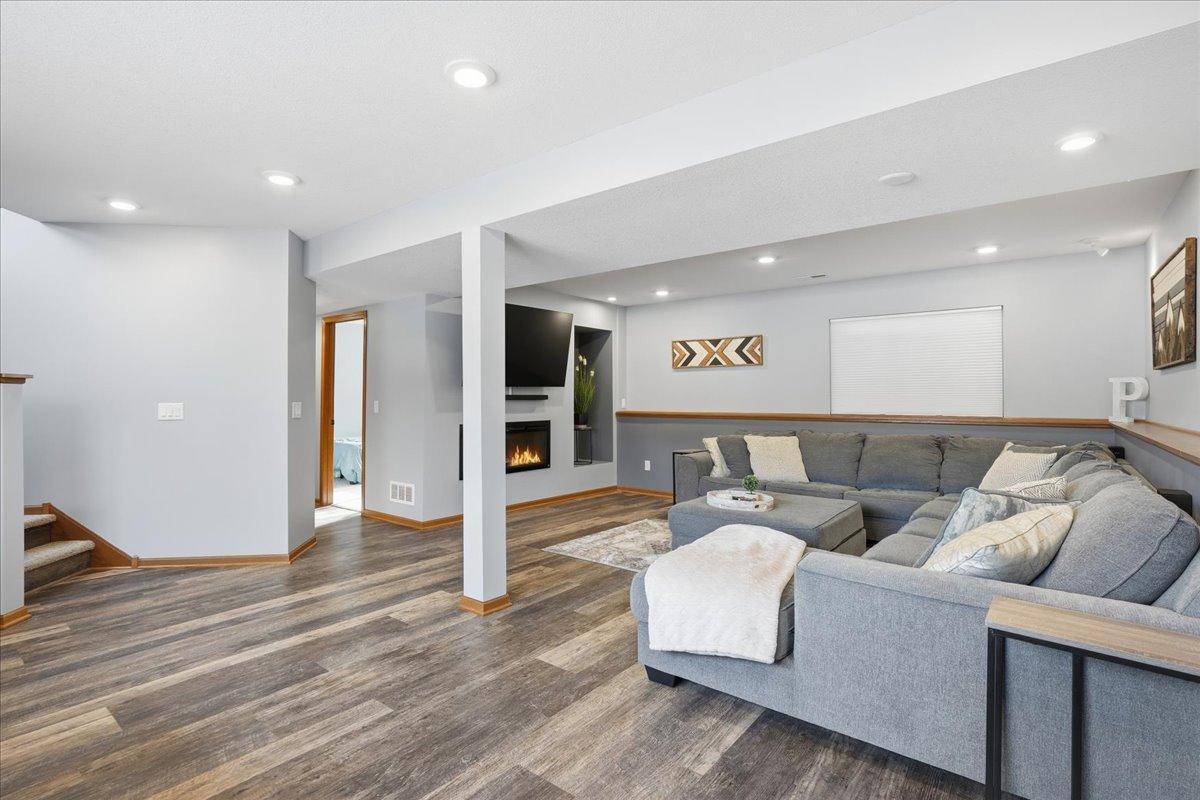 This updated split-level 4 bedroom, 3 bathroom home offers a thoughtful blend of modern upgrades and everyday functionality. Recent improvements include updated flooring, fresh paint throughout, a finished lower level, and an electric LED fireplace that adds warmth and character. The kitchen features a farm sink, new cabinet hardware, updated appliances, and durable finishes designed for daily living. Mechanical updates, improved insulation, and fiber optic service add peace of mind, while the insulated and sheetrocked garage with gas heater and dedicated power enhances year-round usability. Exterior updates include newer roof, siding, gutters, driveway, doors, and refreshed landscaping, all set against a peaceful backdrop with a hay field behind the property.