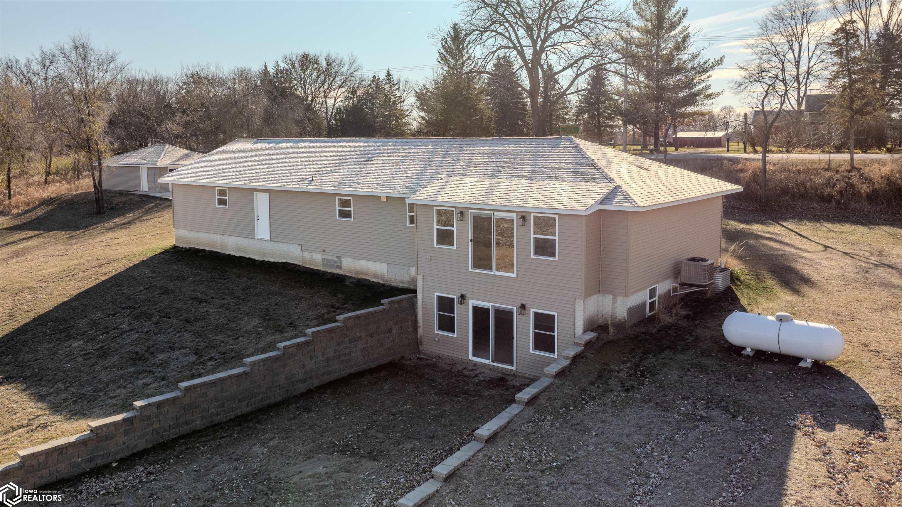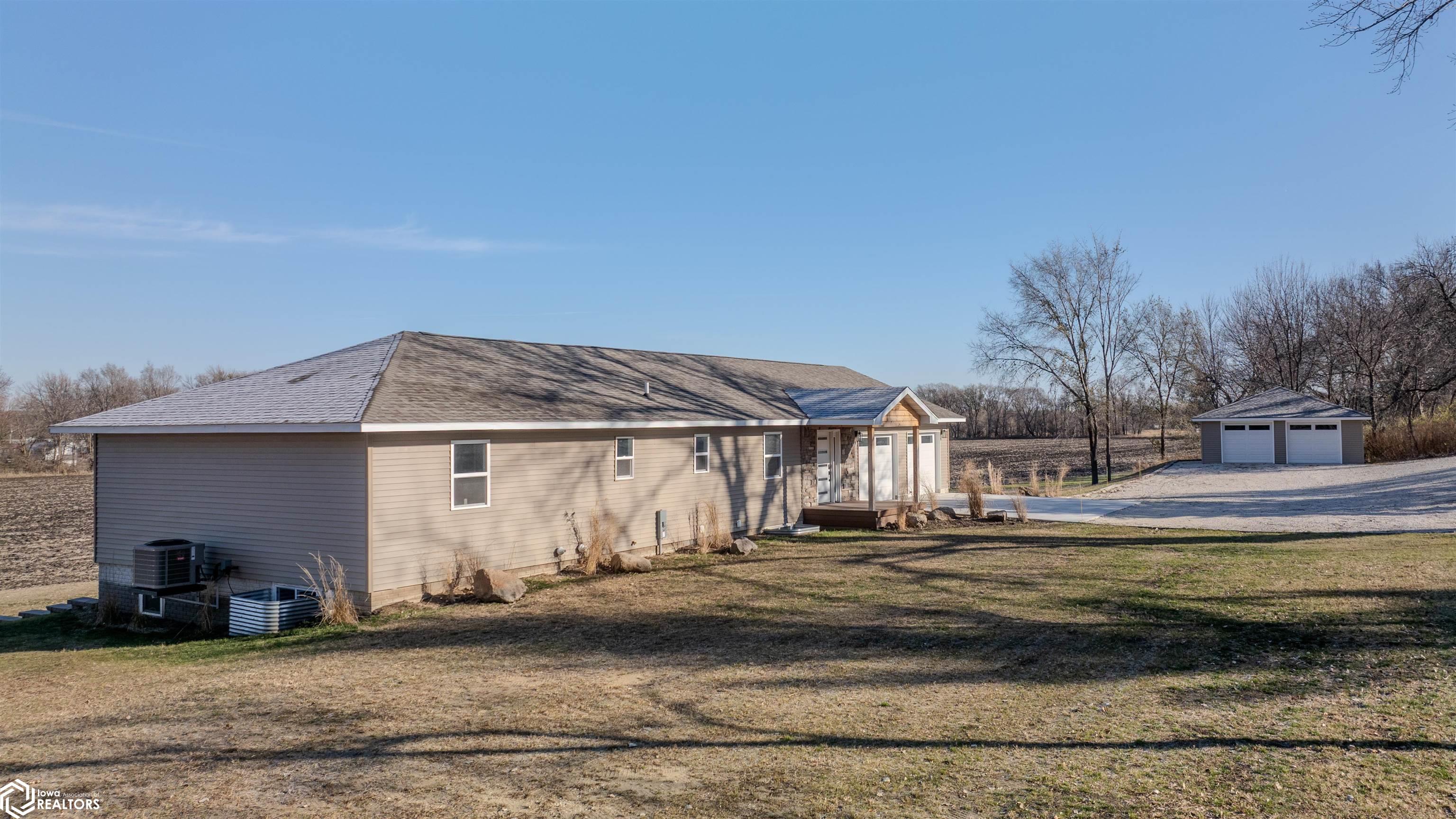 Quiet rest and relaxation await you in this home! Move in and enjoy listening to nature outside your door. This home offers approx 3032 sq ft of living space and sits on 2.42 acres that are located within city limits on a hard surface road. This home was moved from another location, fully gutted and placed on a brand new foundation with the exception of the original house framing (and the two stall detached garage). Everything in this home is NEW: foundation, roof, septic, well (shared with lot next door), heating, central air, plumbing, and electrical. There is a large, spacious entryway, walk-in pantry for storage, a large spacious kitchen with plenty of cupboards and an eating bar, a dining room/living room that has a large sliding door overlooking the backyard (for your future designed deck). The primary bedroom features a large, walk-in closet, plus a private bath with soaker tub. There is an additional main floor bedroom, as well as a second 3/4 bath with laundry service included. Downstairs is a very large family room with high ceilings, another set of sliding glass doors to a patio area, two additional bedrooms complete with egress windows, full bathroom, utility room, plus a storage room. There is a 26 x 28 attached garage, along with a 30 x 24 detached garage! This house has beautiful features and awaits your finishing touches to make it a HOME.