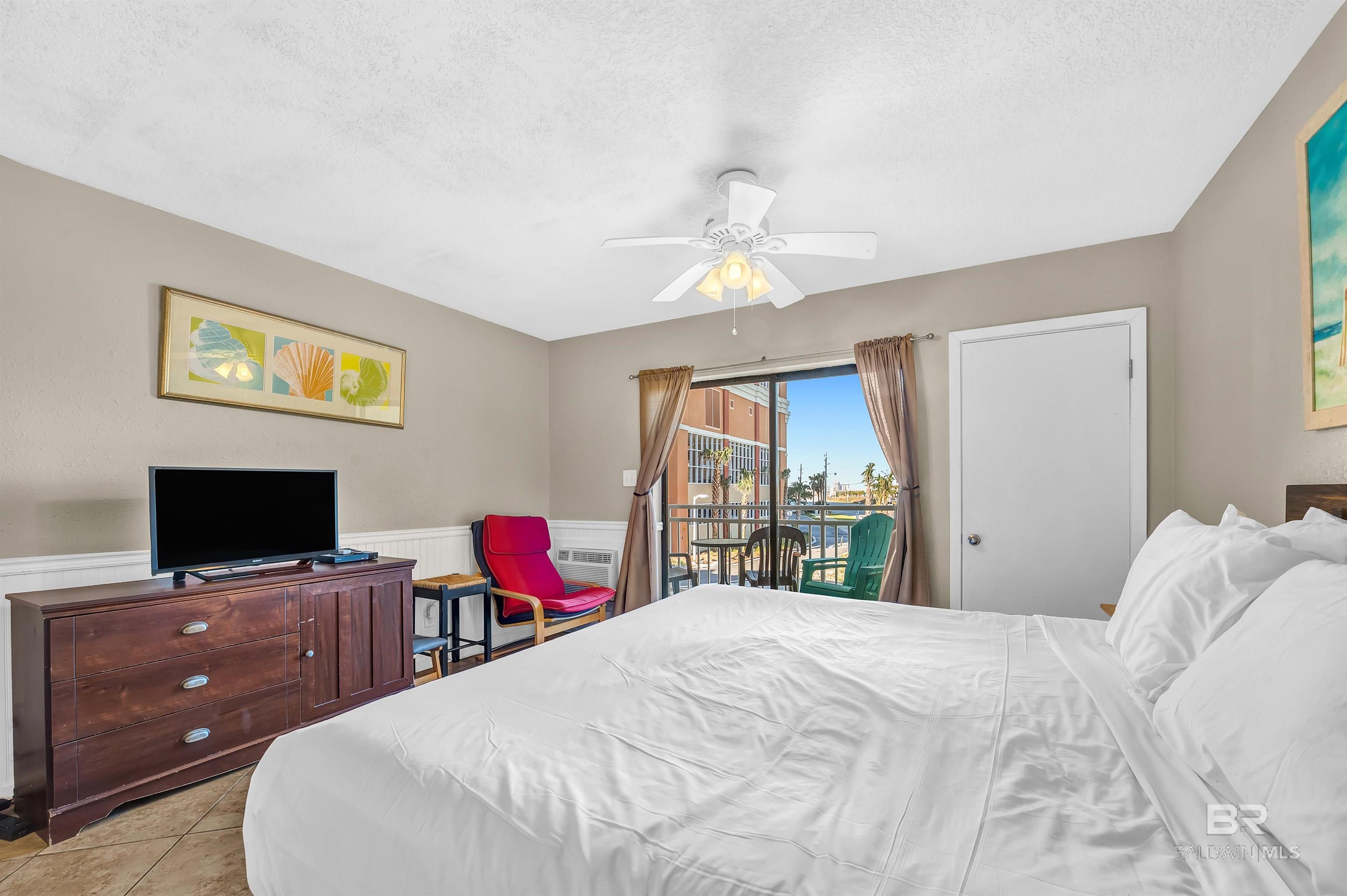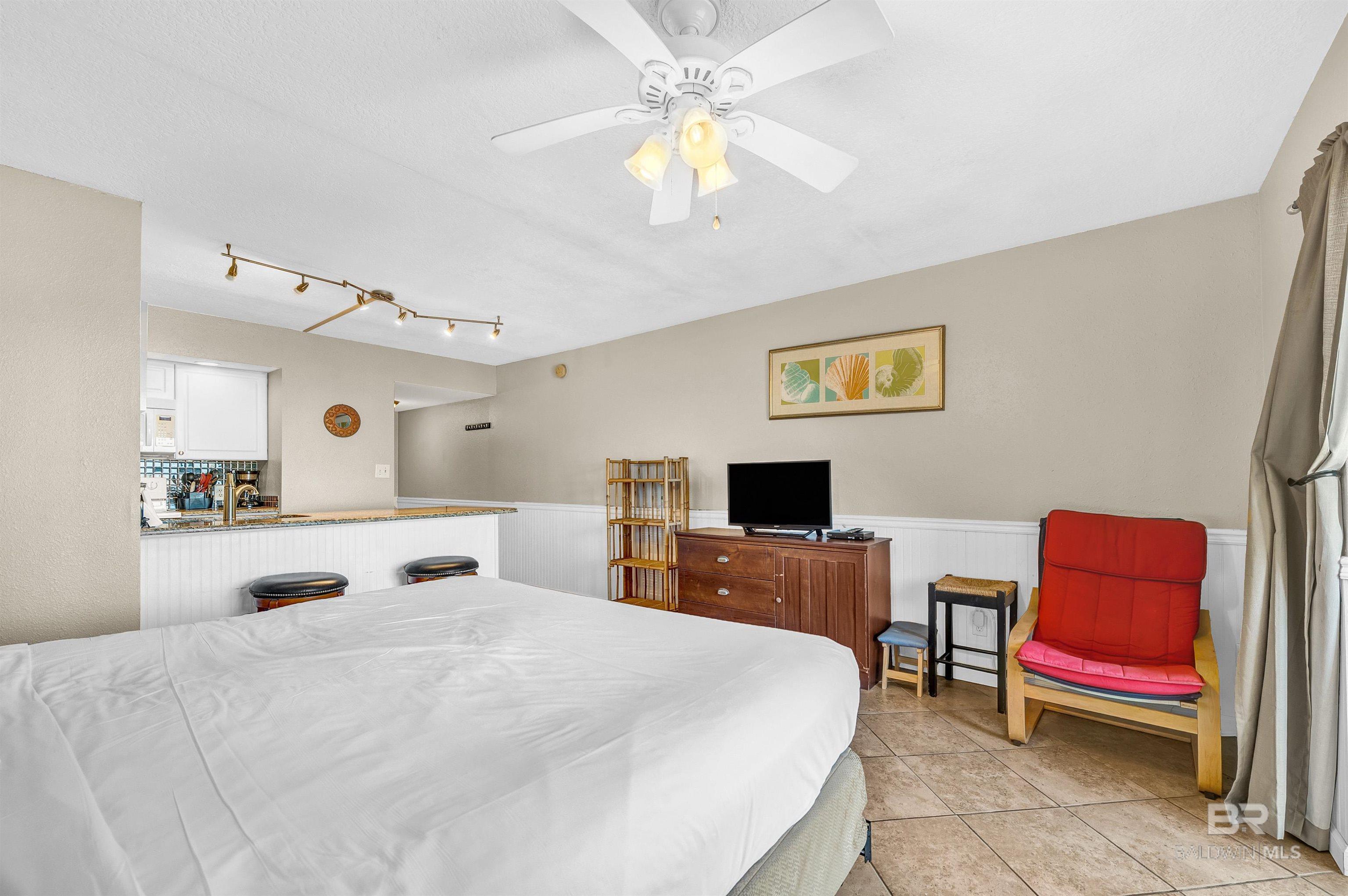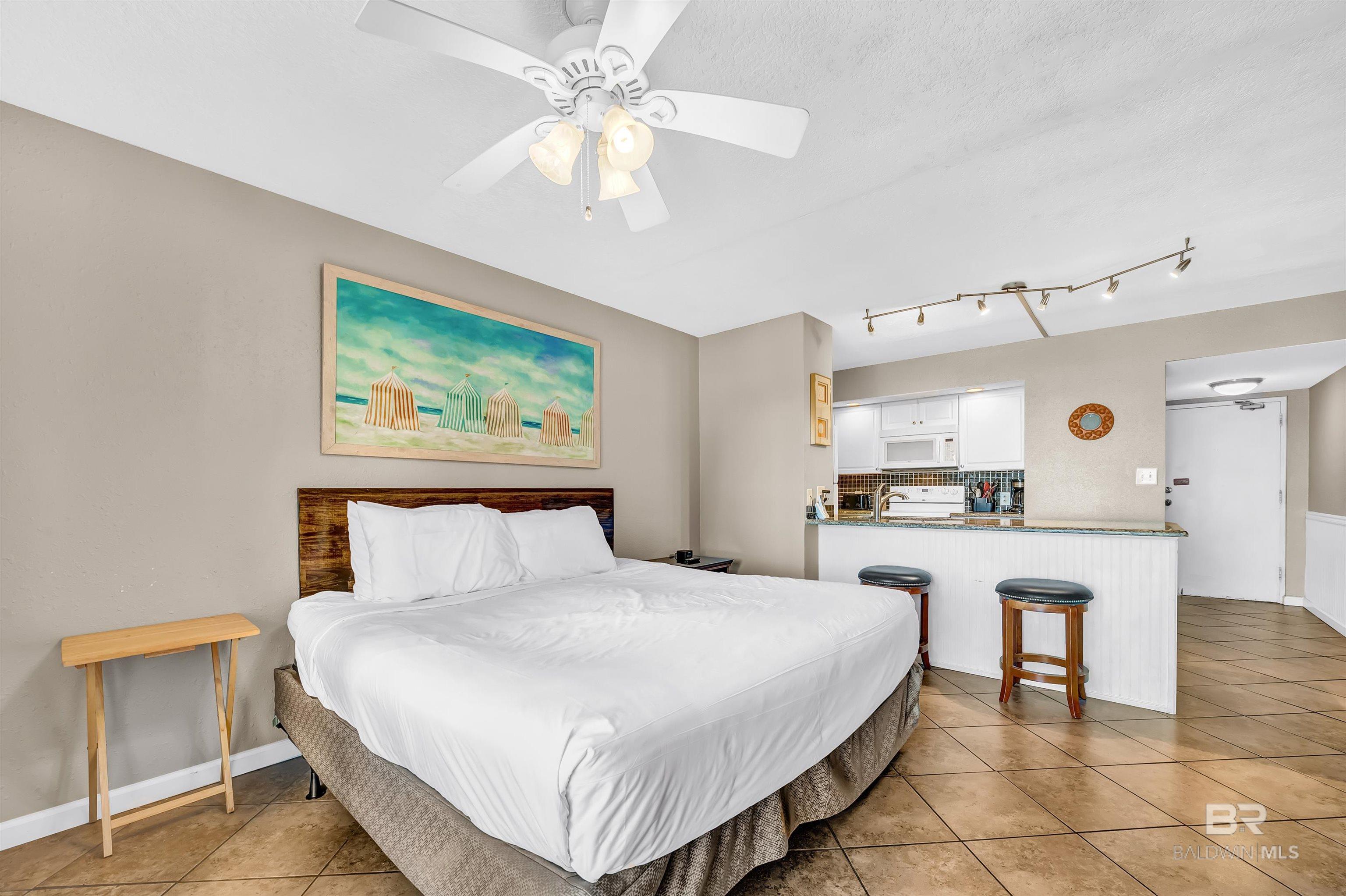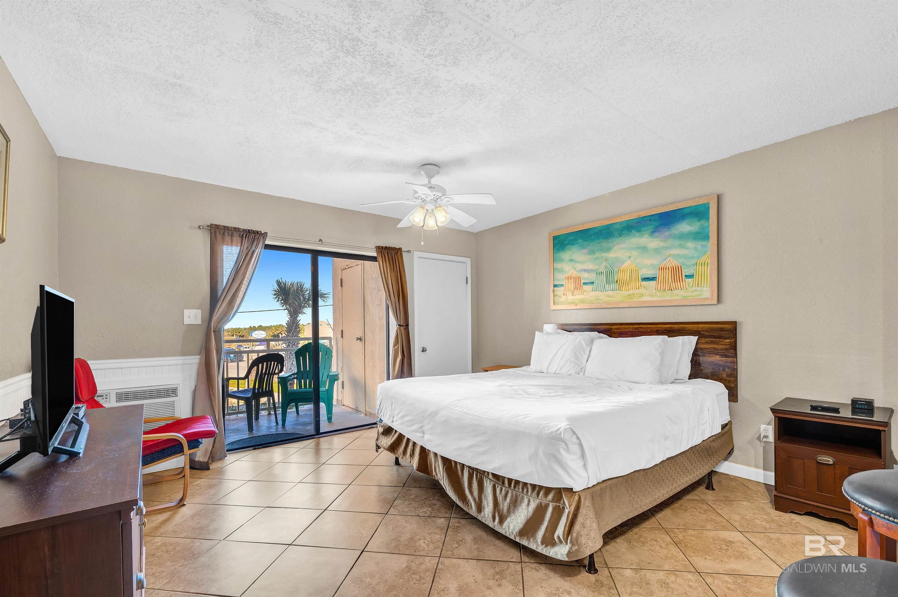 Beachfront Efficiency Condo in Orange Beach Turnkey & Income-Producing! Welcome to Sugar Beach Condos, a classic Orange Beach destination! This fully furnished, exterior view studio is perfect for a personal getaway or a great income rental. Thoughtfully updated, it features a modern kitchen with quartz countertops with ai stylish backsplash, and an open layout for a bright, airy feel. The spacious living area includes a queen-size bed, offering comfort for owners and guests alike. The bathroom has also been upgraded with tiled, walk-in shower. Enjoy resort-style amenities, including FOUR outdoor pools (one heated in cooler months), a kiddie pool, tennis court, gazebos, grilling areas, and the Sugar Shack snack bar. With 330 feet of private access to white sand beaches, youre just steps from the Gulf. Or enjoy the view from the beachfront sunbathing deck. You're also within a short jaunt to shopping, dining, fishing, and live entertainment. This prime beachfront complex offers low HOA fees, covered parking, an onsite security guard, and a strong rental history, making it a fantastic investment. Whether you're looking for a vacation home or a turnkey short-term rental, this condo is the perfect opportunity. Don't miss your chance to own a slice of paradise in Orange Beach! Buyer to verify all information during due diligence.