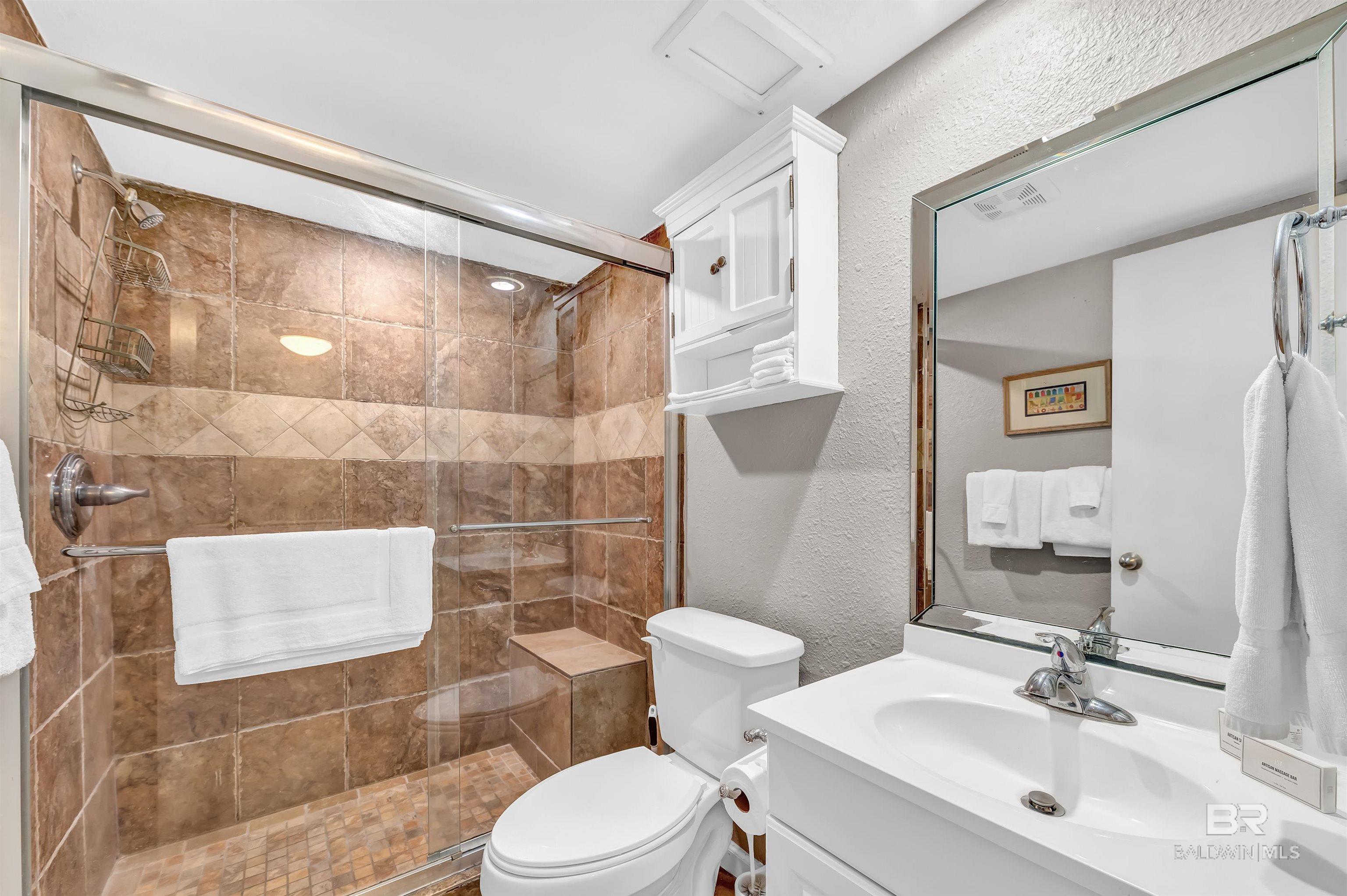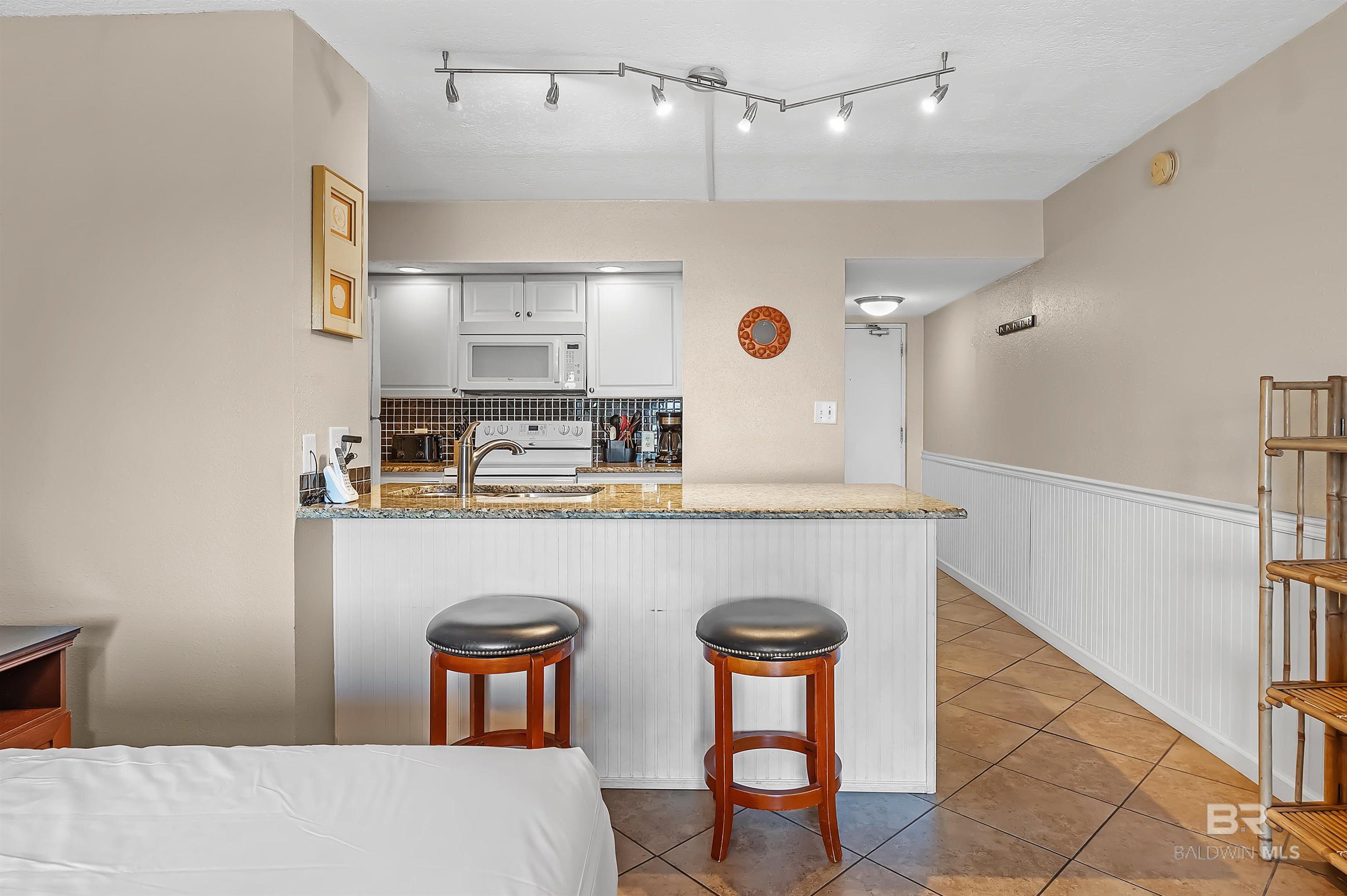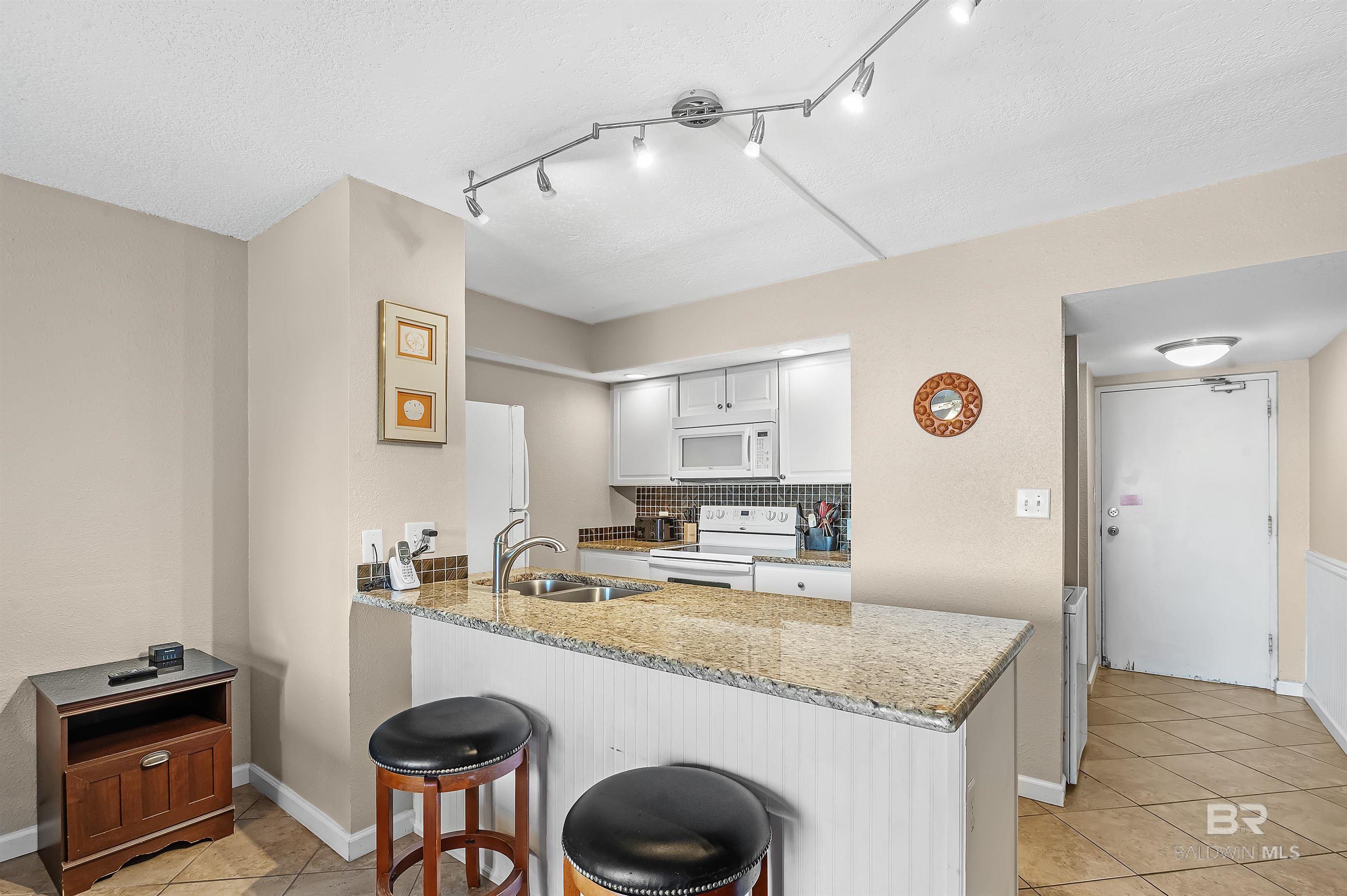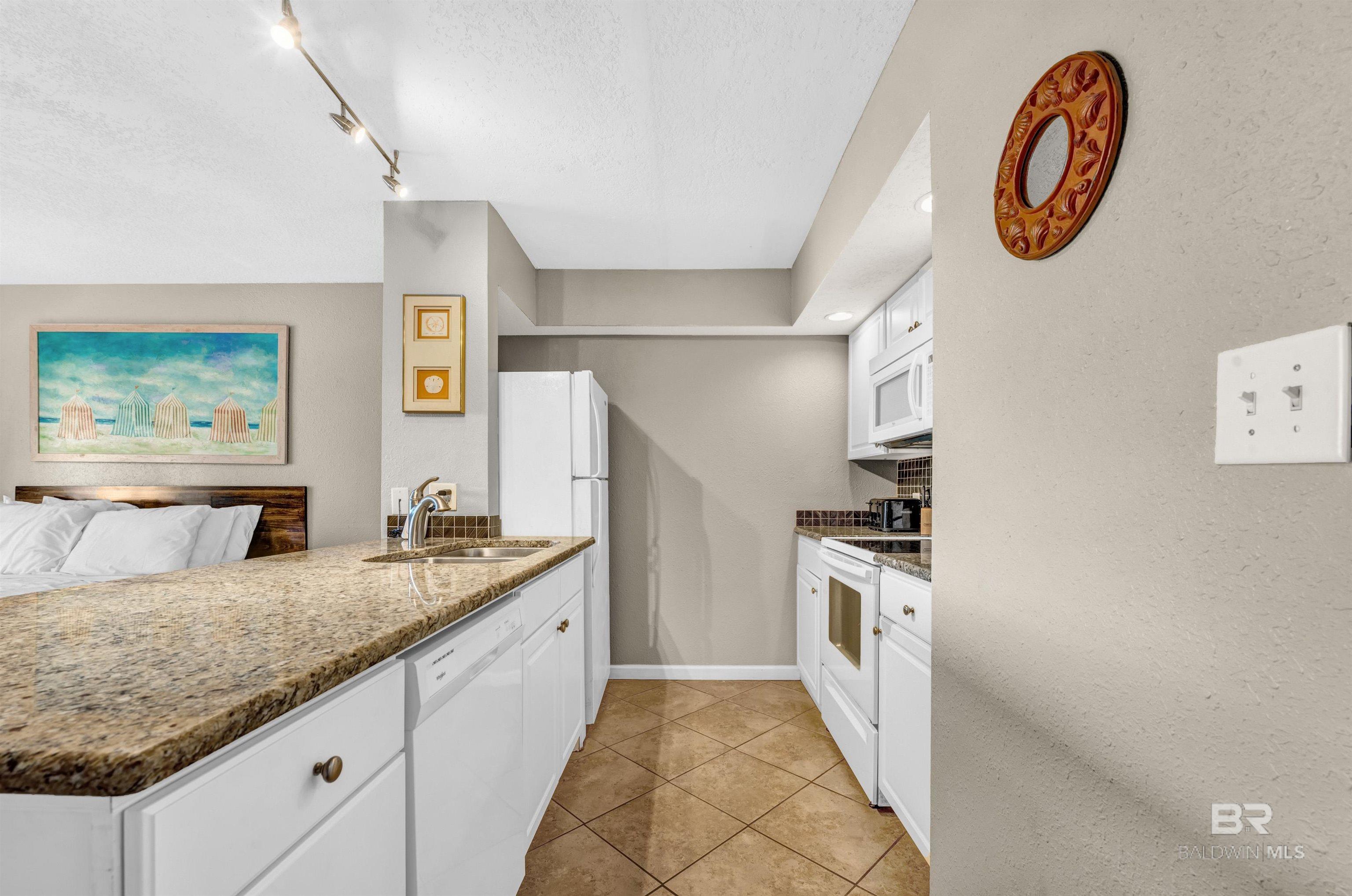 Beachfront Efficiency Condo in Orange Beach Turnkey & Income-Producing! Welcome to Sugar Beach Condos, a classic Orange Beach destination! This fully furnished, exterior view studio is perfect for a personal getaway or a great income rental. Thoughtfully updated, it features a modern kitchen with quartz countertops with ai stylish backsplash, and an open layout for a bright, airy feel. The spacious living area includes a queen-size bed, offering comfort for owners and guests alike. The bathroom has also been upgraded with tiled, walk-in shower. Enjoy resort-style amenities, including FOUR outdoor pools (one heated in cooler months), a kiddie pool, tennis court, gazebos, grilling areas, and the Sugar Shack snack bar. With 330 feet of private access to white sand beaches, youre just steps from the Gulf. Or enjoy the view from the beachfront sunbathing deck. You're also within a short jaunt to shopping, dining, fishing, and live entertainment. This prime beachfront complex offers low HOA fees, covered parking, an onsite security guard, and a strong rental history, making it a fantastic investment. Whether you're looking for a vacation home or a turnkey short-term rental, this condo is the perfect opportunity. Don't miss your chance to own a slice of paradise in Orange Beach! Buyer to verify all information during due diligence.