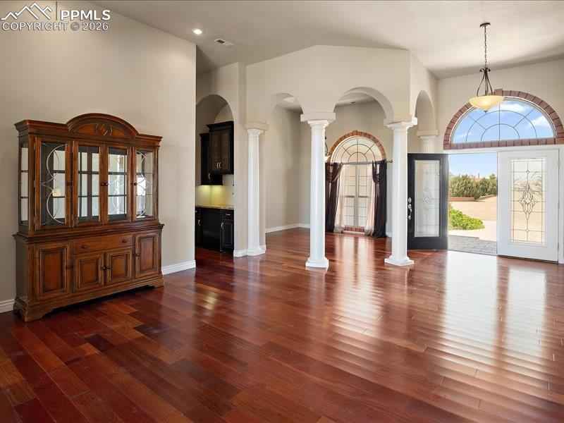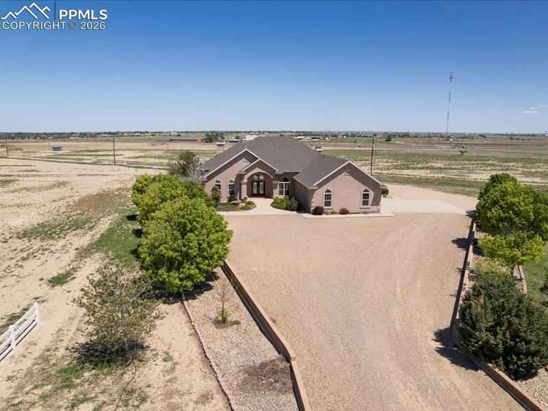 Experience refined rural living just minutes from La Junta, Colorado. Situated on approximately 7.86 acres, this stately residence captures expansive prairie sunrises and sunsets while offering privacy, comfort, and thoughtful design throughout.xD;xA;A grand front entry welcomes you into this beautifully maintained 2,959 sq. ft. home, complemented by an oversized three-bay garage providing an additional 764 sq. ft. The home is designed to maximize natural light, with large, strategically placed windows that brighten the spacious interior.xD;xA;The family friendly layout offers flexibility for both everyday living and entertaining. The main living area features elegant architectural details and generous space for gathering. The kitchen blends style and function with abundant counter space, quality appliances, and an efficient layout that flows seamlessly into the breakfast nook, fireside family room, and rear patiox2014;perfect for indoor-outdoor living.xD;xA;The expansive primary suite is privately positioned on the southwest side of the home and includes direct patio accessx2014;an ideal setting for a future hot tub. The four-piece en-suite bath is spacious and designed for comfortable shared use. A nearby bedroom, well-suited as a home office, also enjoys access to a private covered deck for quiet moments of relaxation.xD;xA;The split-bedroom floor plan ensures privacy. Two guest bedrooms each feature attached three-quarter baths, and one offers a private exterior entrance and patiox2014;ideal for guests, extended family, or multi-generational living.xD;xA;The durable stucco exterior is both low-maintenance and insurance-friendly. Mature trees and established flower beds frame the rear patio, creating an inviting setting for outdoor gatherings.xD;xA;With a newly installed well, panoramic views, and convenient proximity to town, this exceptional property offers luxury prairie living without compromise.xD;xA;Some photos may include virtually staged furnishings, amenities, or fixtures.