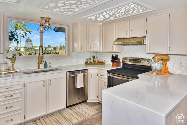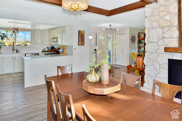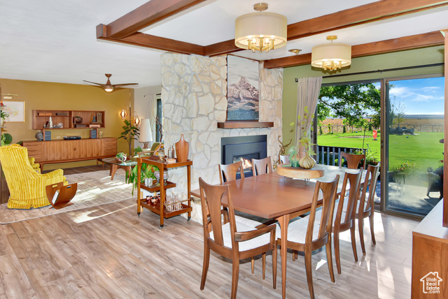 A mid-century modern dream, this classic ranch style home is a must see. Nestled in beautiful Downey, Idaho, this home sits on over 13 acres with 360 degrees of amazing views. Featuring a white washed brick exterior, when walking to the front door you will be welcomed by double entry doors and a covered porch. Entering through the front door, you'll find a spacious, open floor plan with large picture windows. The home also features a double fire place between the kitchen and dining room providing ambiance for entertaining or a quiet evening at home. The updated kitchen is complete with quartz countertops, tiled backsplash, and stainless steel appliances. Just down the hall from the kitchen sits the pantry, laundry room, and bathroom. Spacious master bedroom with walk-in closet and master bathroom. Venture to the basement into the large family room where you can enjoy comfy evenings with the wood burning stove. Three additional bedrooms and a bathroom can be found downstairs. The basement also features a wine cellar, and cold storage. The exterior of this home is just as amazing as the inside with the open deck, fully fenced yard, and beautiful landscaping. Love gardening? You'll enjoy the eight raised garden beds with commercial grade weed barrier for low maintenance. Outside you'll also find a 30'x48' shop. Don't miss the opportunity to own this amazing home.