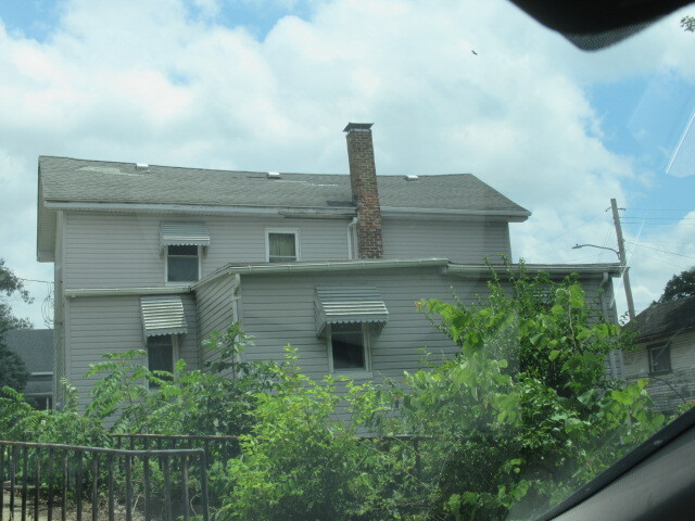 Classic two story house. Windows on all sides peek out from under awnings. A covered front porch runs the width of the front of the house. Lattice on the front porch provides shade to a seating area. Vinyl siding helps lower the maintenance work and cost.