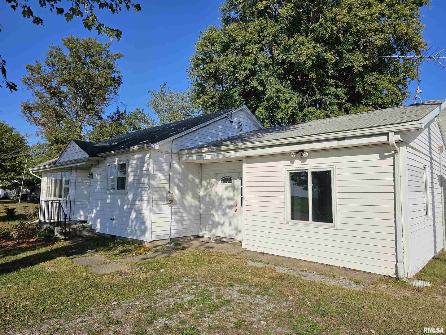 Charming 3-bedroom bungalow featuring a cozy living room with newer carpeting and a kitchen with updated vinyl flooring. The spacious third bedroom offers versatility-perfect as a family room-with a large closet for extra storage. Enjoy the convenience of a laundry room connected to an enclosed breezeway. Property includes a detached garage plus a 20x24 detached hobby shop. Beautifully landscaped with flowers, this home offers city water, sewer, and gas, providing the comfort of small-town rural living with modern conveniences.