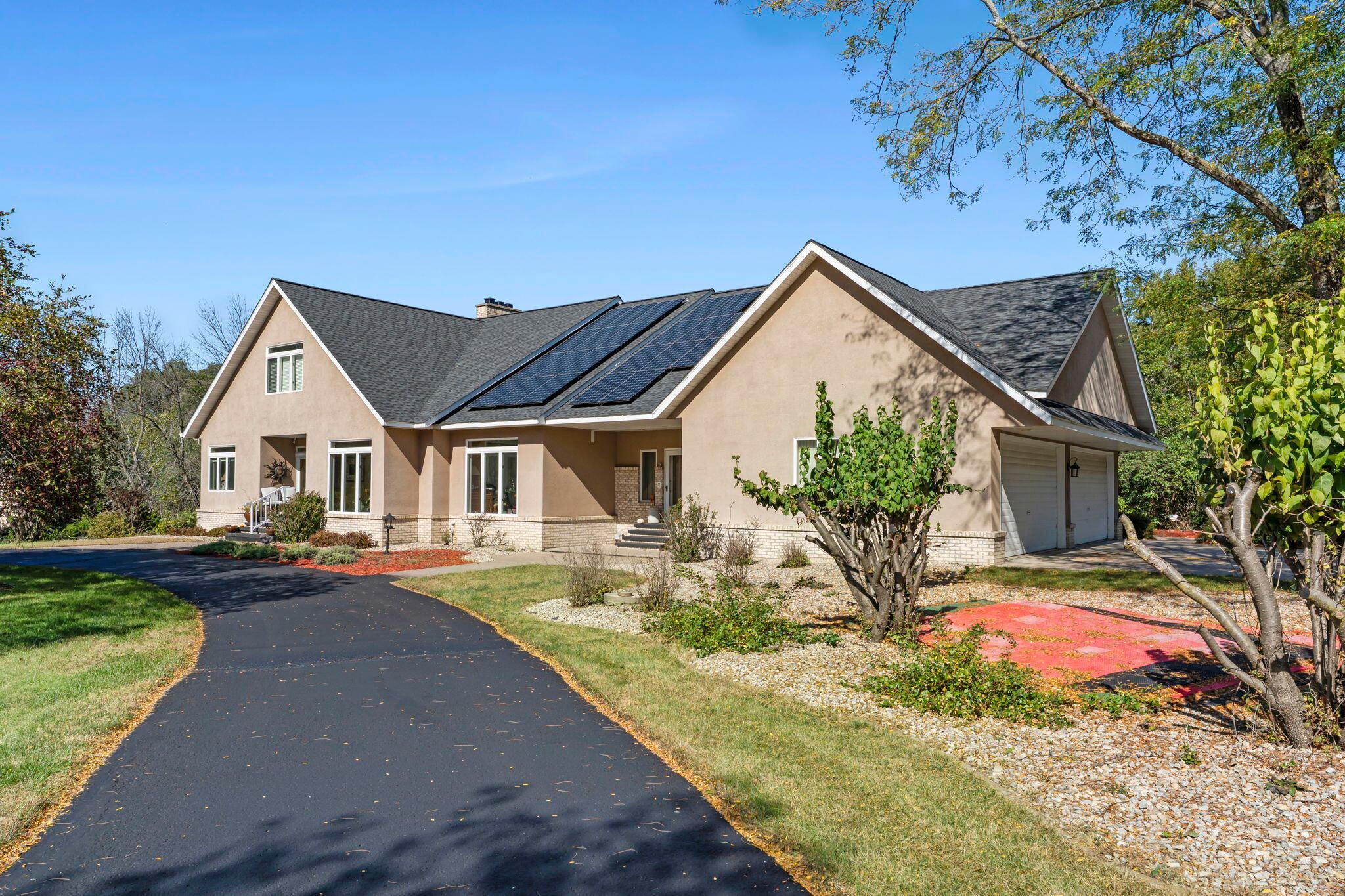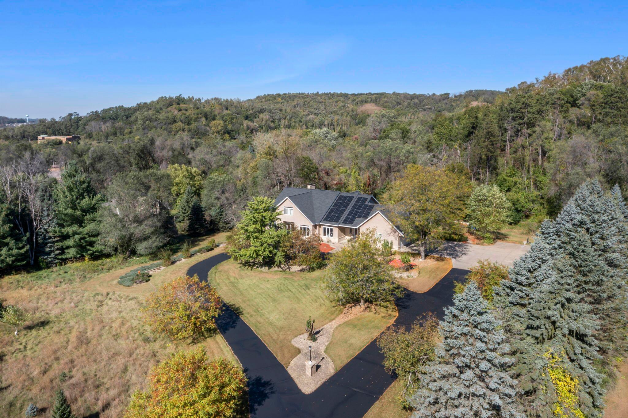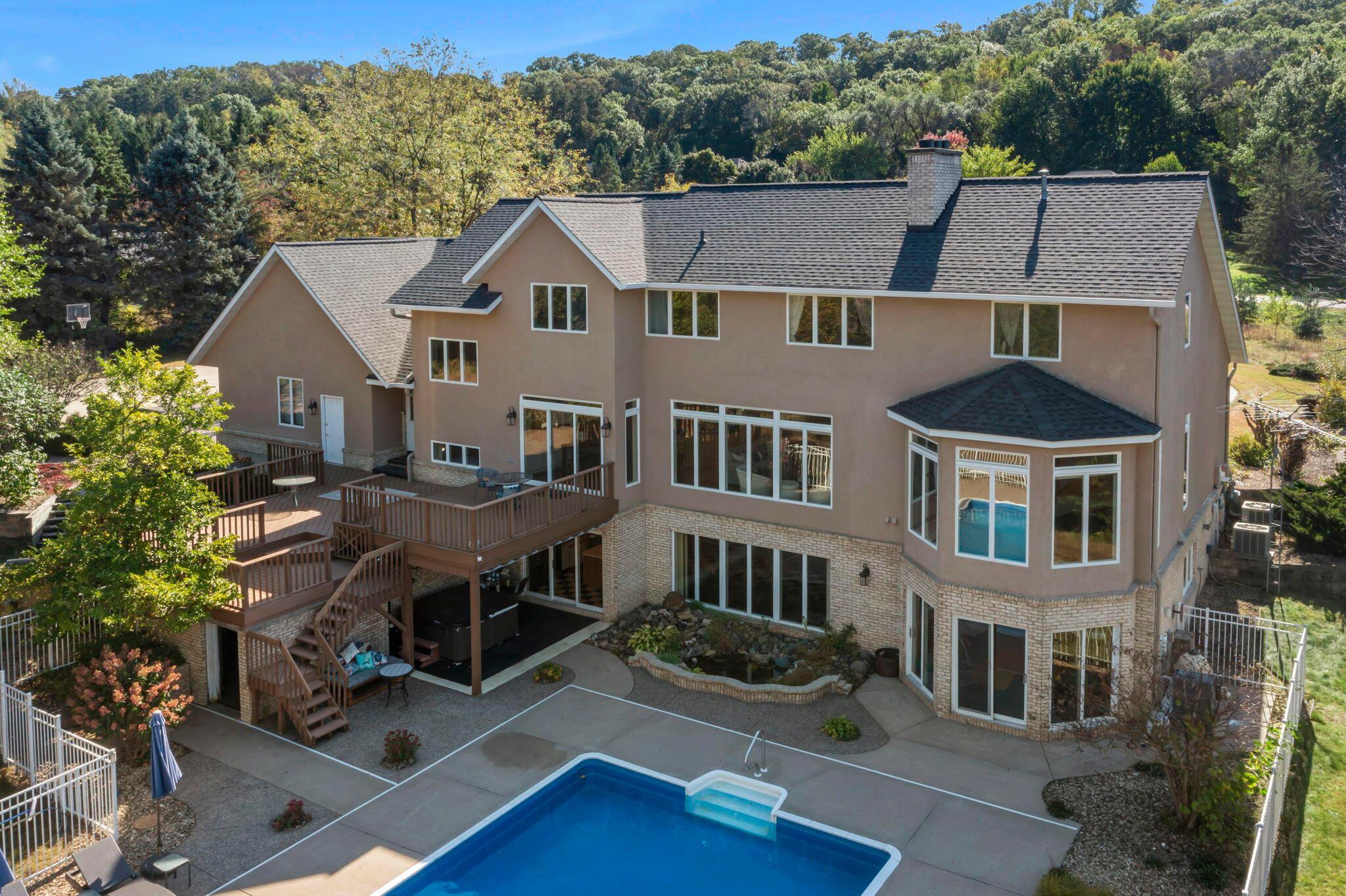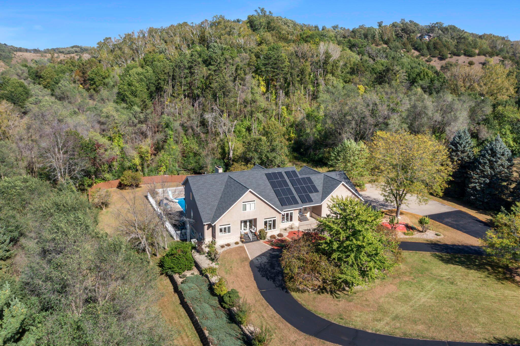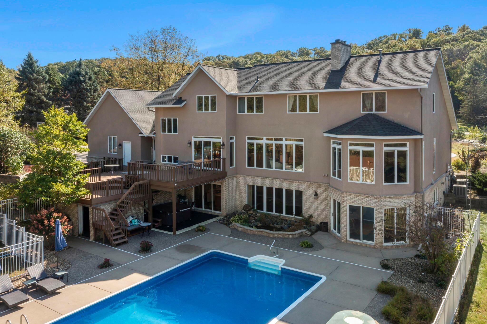 Exquisite 5-Bedroom Estate with Pool & Views in South Oaks Red Wing, MNWelcome to one of Red Wings finest properties, located in the highly sought-after South Oaks neighborhood. This stunning 5-bedroom, 5-bathroom custom home offers over 2 acres of beautifully landscaped grounds, paired with exceptional privacy, serene surroundings, and breathtaking views.Step inside to discover a light-filled floor plan with walls of windows, five sliding glass doors, and thoughtfully designed living spaces perfect for both entertaining and everyday living. The chefs kitchen features professional-series, high-end appliances, elegant finishes, and seamless flow to spacious dining and living areas. A second kitchen on the lower level provides additional convenience and flexibility.Indulge in luxury amenities including:A large in-ground pool ideal for relaxing or entertainingA private theater room for movie nightsA dedicated exercise roomMain level and lower level laundry.Whirlpool bath and Steam showerExpansive decks to enjoy panoramic views4 garage stalls for ample parking and storageIntercom and security systems for peace of mindA new roof and solar system that help maintain ultra-low energy bills installed Fall 2024.Located in a quiet neighborhood with low township taxes, this home offers the rare combination of upscale living, energy efficiency, and tranquility just minutes from downtown Red Wing.Don't miss this rare opportunity to own one of the most exceptional homes in the area.