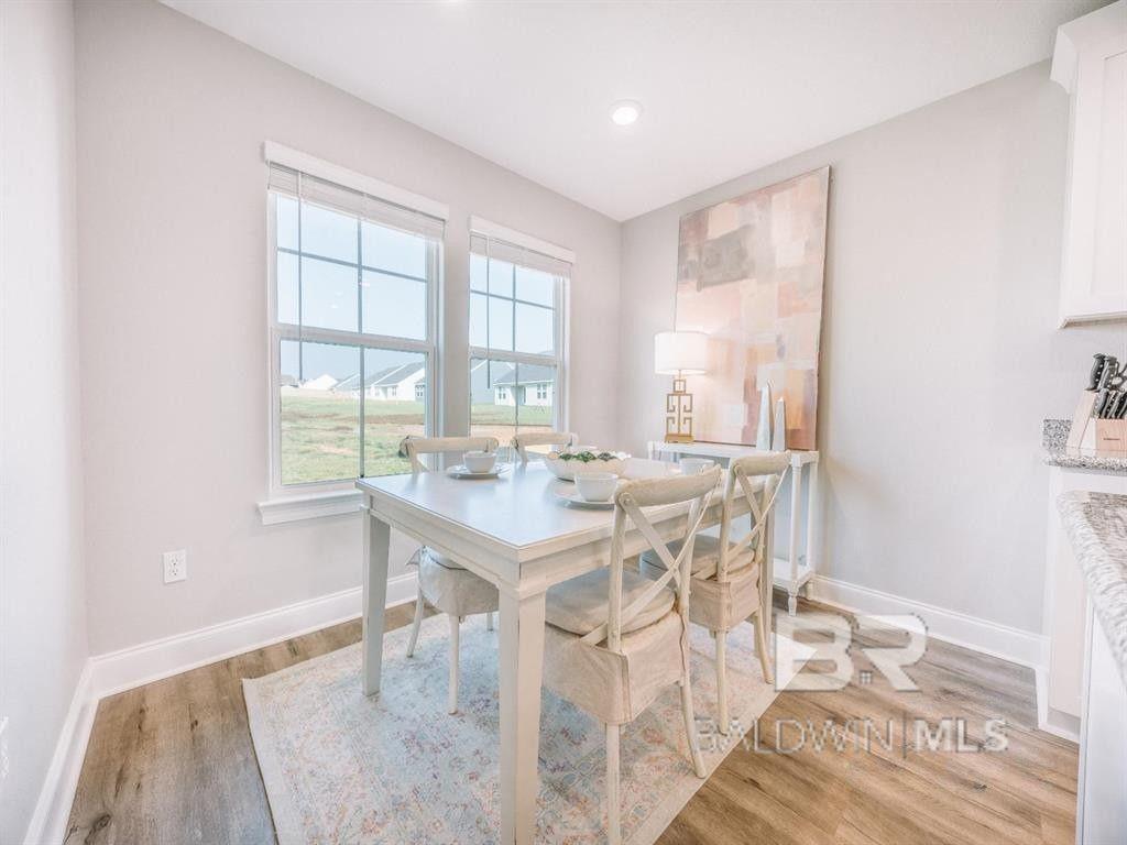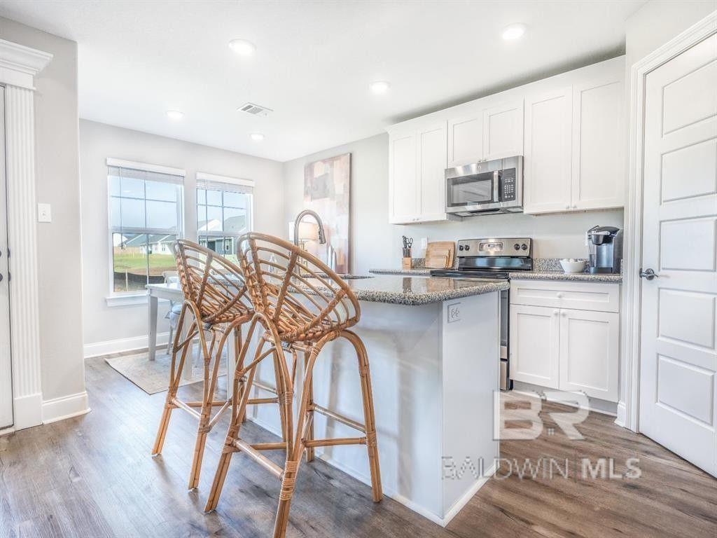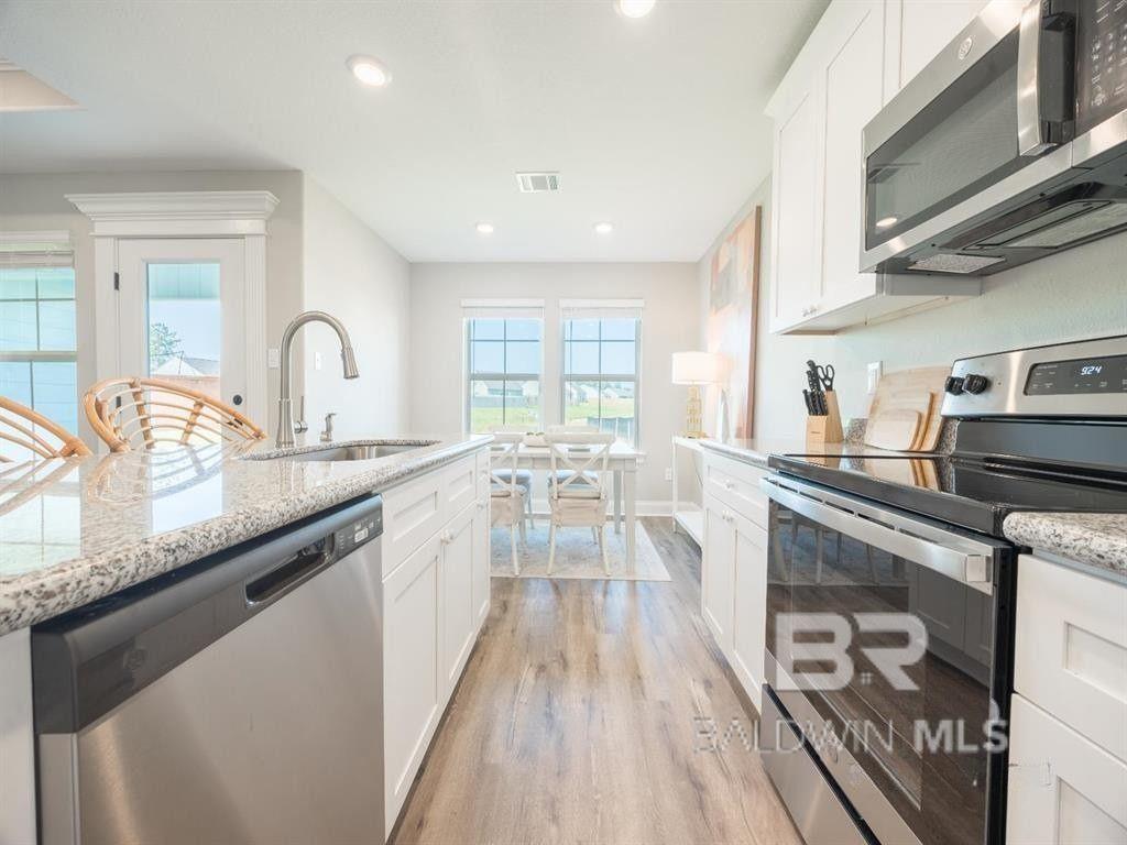 Move-in ready new construction just under 10 miles from the white sandy beaches of the Alabama Gulf Coast. Built by Meritage Homes, the single-story Opal floorplan offers 3 bedrooms, 2 bathrooms of well-designed living space. The open layout brings the kitchen, dining, and great room together in one cohesive area designed for both daily living and entertaining. The kitchen provides ample cabinetry, generous counter space, and a central workspace that overlooks the main living area. The split floorplan includes a primary suite with a bathroom that includes dual vanities, and a walk-in closet. Two additional bedrooms and a full bathroom offer versatile space for a home office, guests, or hobbies. A covered rear patio extends the living area outdoors. Constructed to GOLD Fortified standards, this home may provide enhanced durability and potential insurance savings. Convenient access to the Baldwin Beach Express and Highway 98 places you minutes from Foley, Gulf Shores, Orange Beach, Mobile, and Pensacola. Nearby destinations include Tanger Outlets Foley, OWA Parks & Resort, and Publix, along with shopping, dining, and coastal recreation throughout the Alabama Gulf Coast. If you are searching for a home in Elberta, AL with single-level living near Orange Beach, Gulf Shores and Foley conveniences, the Opal floorplan delivers modern design in a convenient coastal location. Please note: Photos are of a previously built home and may include optional features or finishes that vary from the actual property. Buyer to verify all information during due diligence.