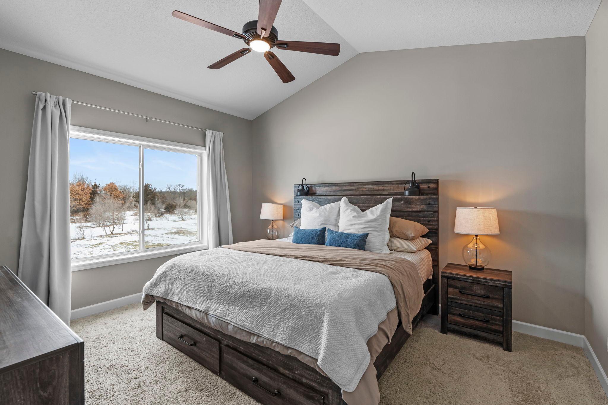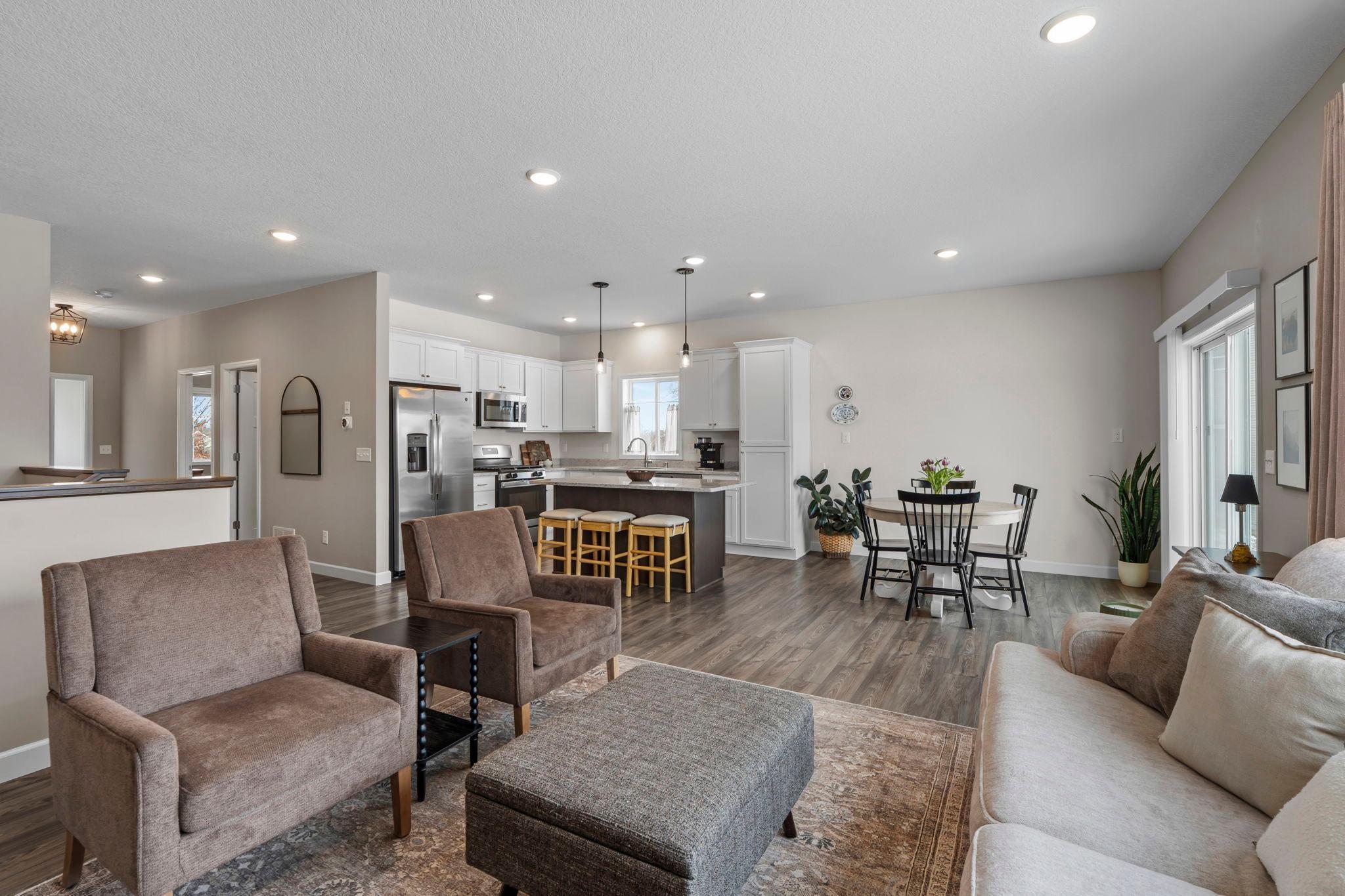 This beautifully maintained rambler offers the ease of newer construction with the bonus of a recently well finished basement. Step outside to a flat backyard perfect for play or pets, complete with a garden, a tree-lined backdrop for privacy, and a walking trail just beyond. The association fee here directly supports a lifestyle most neighborhoods cant offer: private access to Eagle Lake, scenic walking trails woven throughout the community, and a lakeside pavilion and beach that feel like your own vacation spot. Shared well and septic also mean reduced individual maintenance responsibilities and long-term infrastructure care handled together giving you peace of mind.
