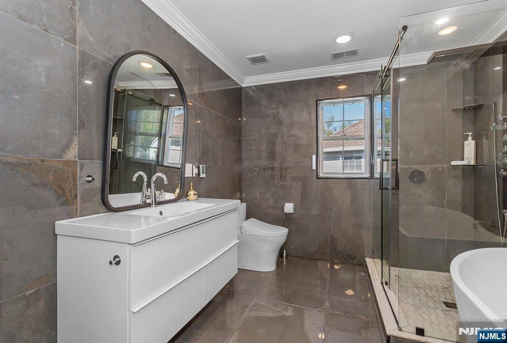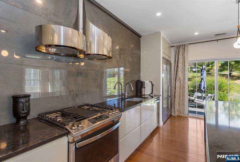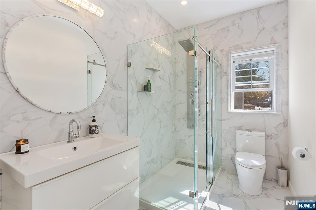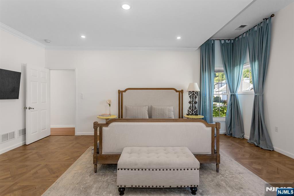 Bright, modern, and spacious 5-bedroom, 3-bath home offering 3,300 sq ft of luxurious living in the highly desirable Bluffs at Ballyowen community. This beautifully maintained 2-story brick-front residence features an open-concept layout thats both inviting and functional. The soaring cathedral ceiling in the LR fills the space with natural light, creating a bright and elegant ambiance. At the heart of the home is a fully renovated chefs kitchen, showcasing a 10-foot quartz island with dual waterfall edges, dual deep-countertop refrigerators, sleek modern cabinetry, and a sliding glass door leading to patio, perfect for seamless indoor-outdoor entertaining. Enjoy the privacy and convenience of a 1st-floor master suite, complete with two walk-in closets. Two additional bedrooms (one is office now), a fully renovated bathroom, a formal dining room, and a laundry room complete the main level. Upstairs open loft lounge overlooks the living space and entry, accompanied by two oversized bedrooms and a 4-piece bathroom featuring heated floors. Thoughtful modern finishes enhance the homes style and comfort throughout. Huge storage space above garage and additional easy access storage possible in the attics. Community amenities are only 40 steps away and include access to a heated saltwater outdoor pool, clubhouse with fitness center and party room. This exceptional home seamlessly blends luxury, comfort, and convenience.