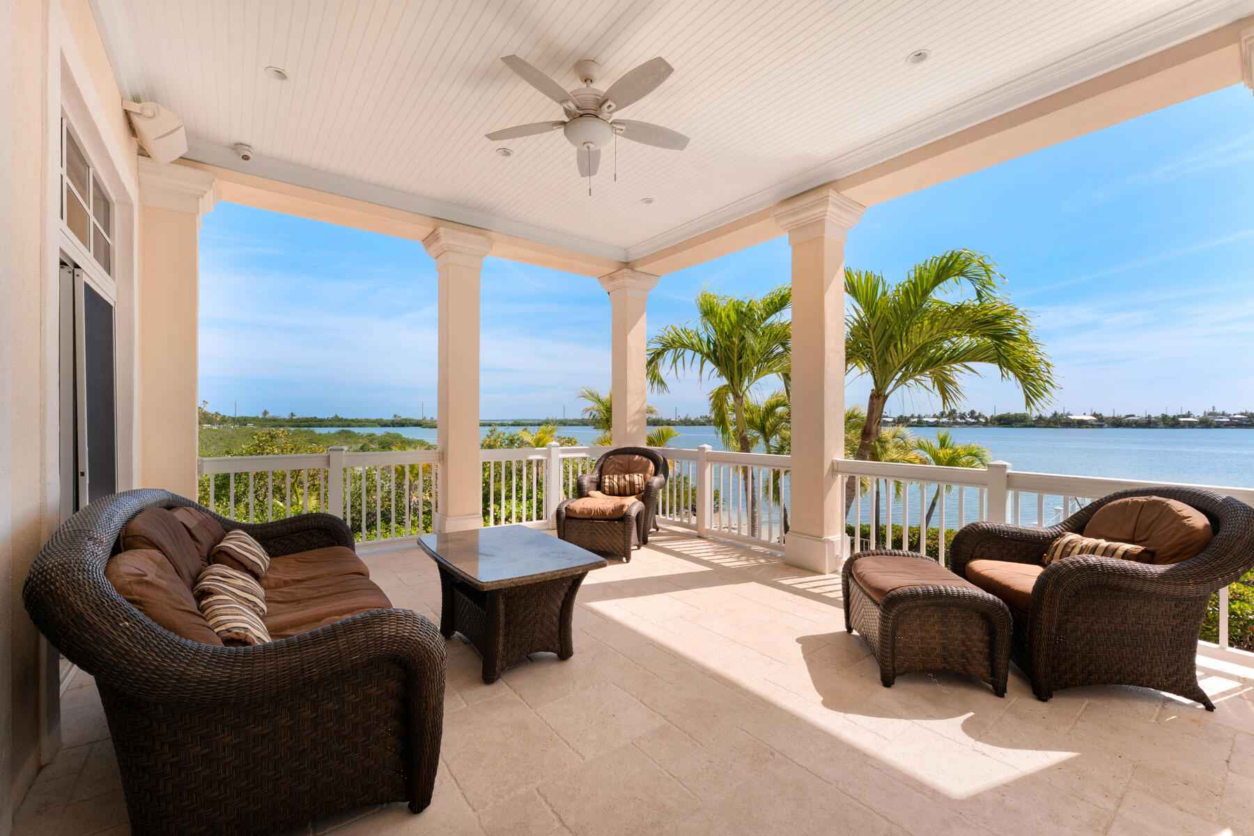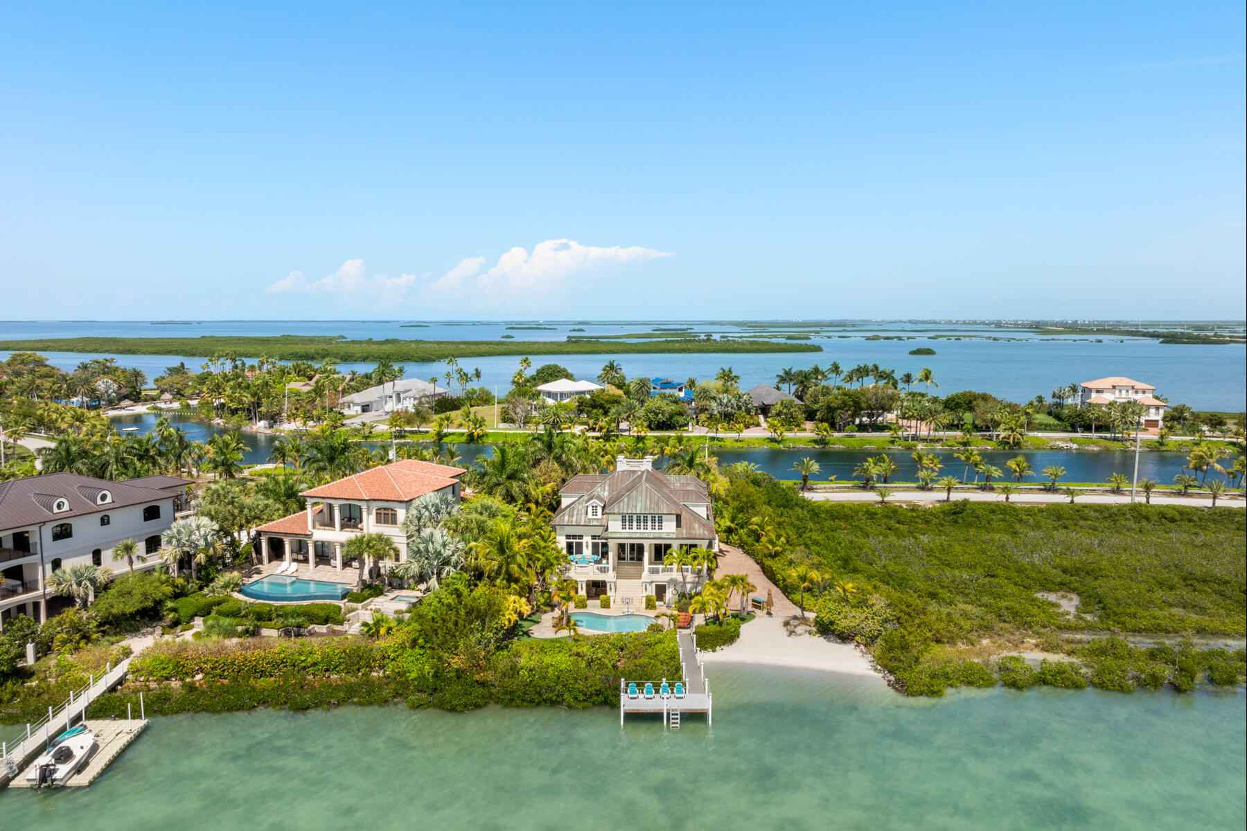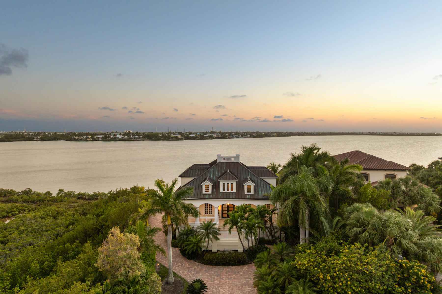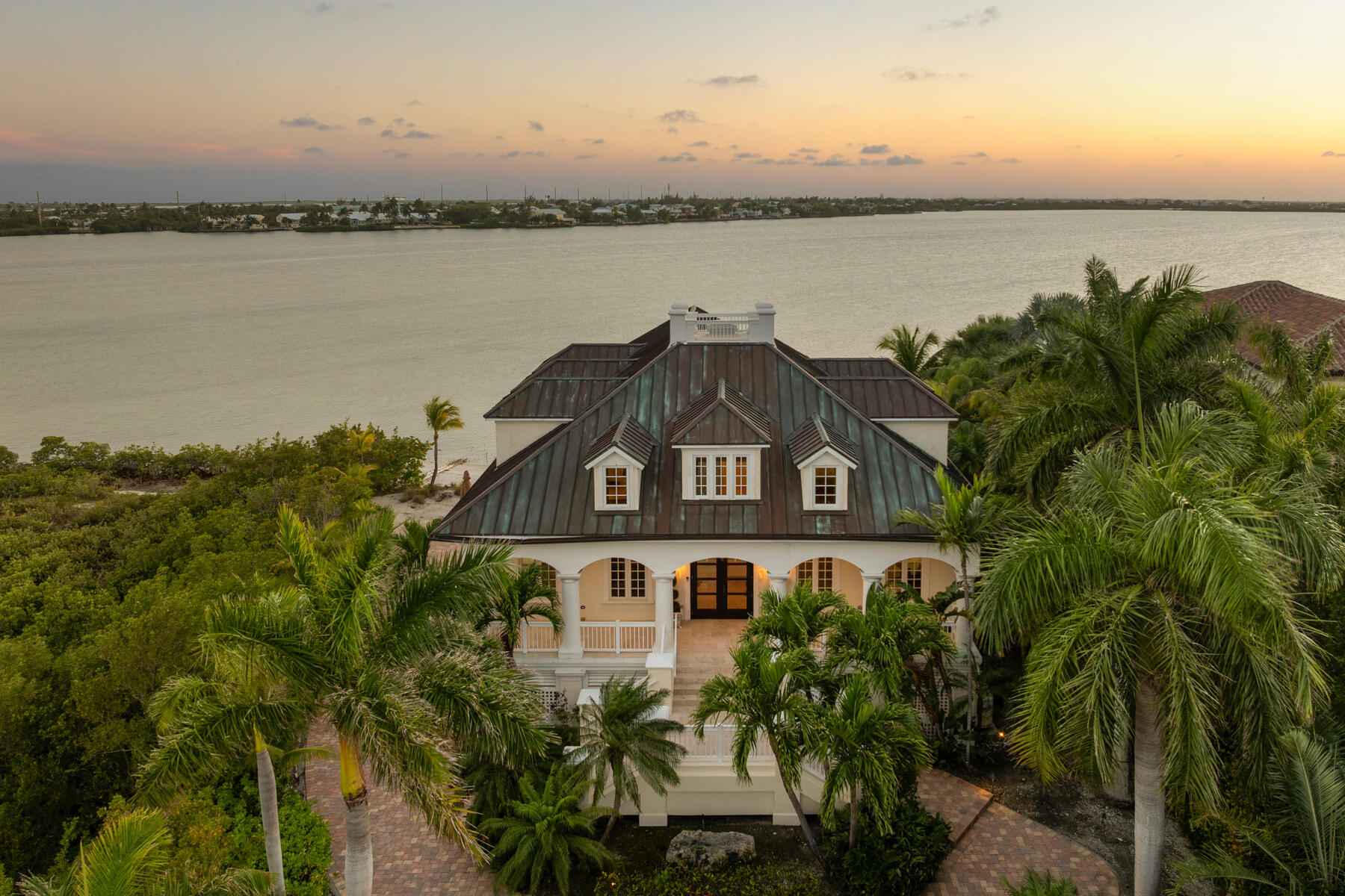 Tucked behind swaying palms and lush tropical landscaping, this elegant waterfront estate captures the very best of Florida Keys living. From breathtaking sunset views to exceptional outdoor spaces, every moment here feels like a true escape.Whether you are relaxing on your private beach or entertaining poolside, the setting is unforgettable. It is the kind of home that reminds you exactly why you chose island life.Inside, sun filled living spaces open to sweeping Gulf views and an abundance of natural light. The gourmet kitchen is beautifully appointed with custom cabinetry, high end appliances, and an oversized island designed for gathering, hosting, and everyday living.Upstairs, the primary suite is a retreat of its own, offering panoramic water views and a spacious walk in closet. Three additional bedrooms are located on the upper level, while a fifth bedroom and full bath on the main level provide flexibility for guests or extended stays.Designed for seamless indoor-outdoor living, the home flows effortlessly to a private deck, sparkling pool, and observation dock. It is a front row seat to some of the most spectacular sunsets in the Keys.Additional highlights include a copper patina roof, a three-car covered carport, full house generator, generous storage, and a wave runner lift.Located within the prestigious gated community of Shark Key, just minutes from Key West, residents enjoy resort style amenities including a clubhouse, inland swimming lagoon and beach, as well as pickleball and tennis courts.24 Cannon Royal Drive is more than a home. It is a lifestyle defined by privacy, beauty, and the magic of the Florida Keys.