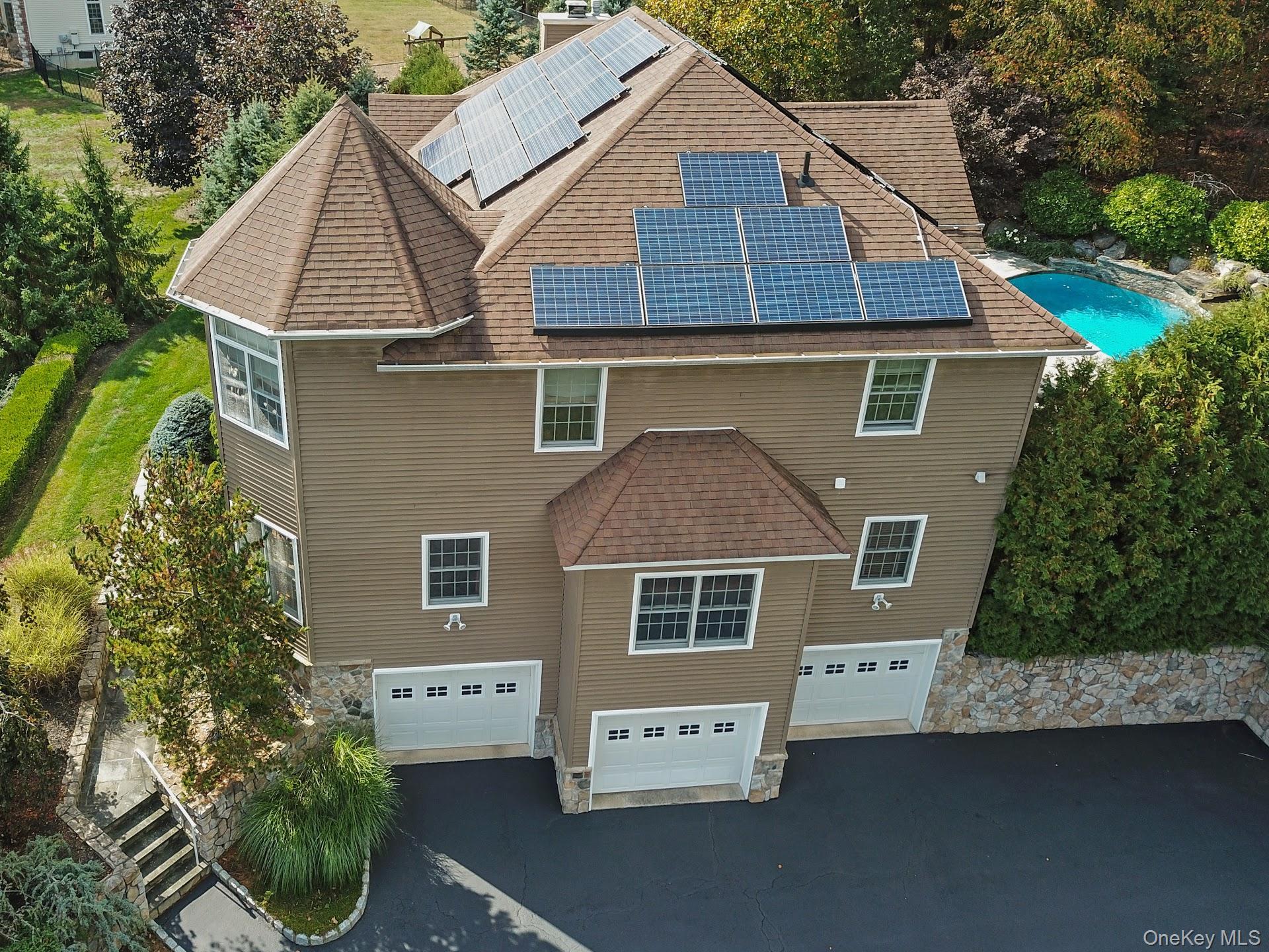 Built in 2005 in the prestigious Montebello's Pines Neighborhood, this stunning colonial is located in a quiet and scenic cul-de-sac. A welcoming bluestone front porch stretches across the front of the home. Enter into the 2-story foyer into a spacious and tastefully finished home featuring open kitchen/dinette/family room w/gas fireplace, formal dining room and living room, guest bedroom, full bath & lavatory. Kitchen with granite, cherry & stainless appliances. The second floor offers a master suite with stunning views and tray ceiling, master bath with jetted tub, 3 more spacious bedrooms and 1 full bath, gleaming hard wood floors throughout. The basement is fully finished adding another 1300 sqft that has 2 additional rooms, full bath and entertaining area. Outside backyard boasts a sun deck off the kitchen that leads to a saltwater energy efficient heated gunite pool with water falls, all surrounded by a beautifully landscaped property providing privacy. The house has a 20 kw Generac whole house generator, 2 zone A/C, tesla solar panels, 240v outlet in garage for EV charging, oversized driveway, 13 zone inground sprinkler system, outdoor speakers. Award winning Suffern schools and close proximity to transportation. . Additional Information: ParkingFeatures:3 Car Attached,