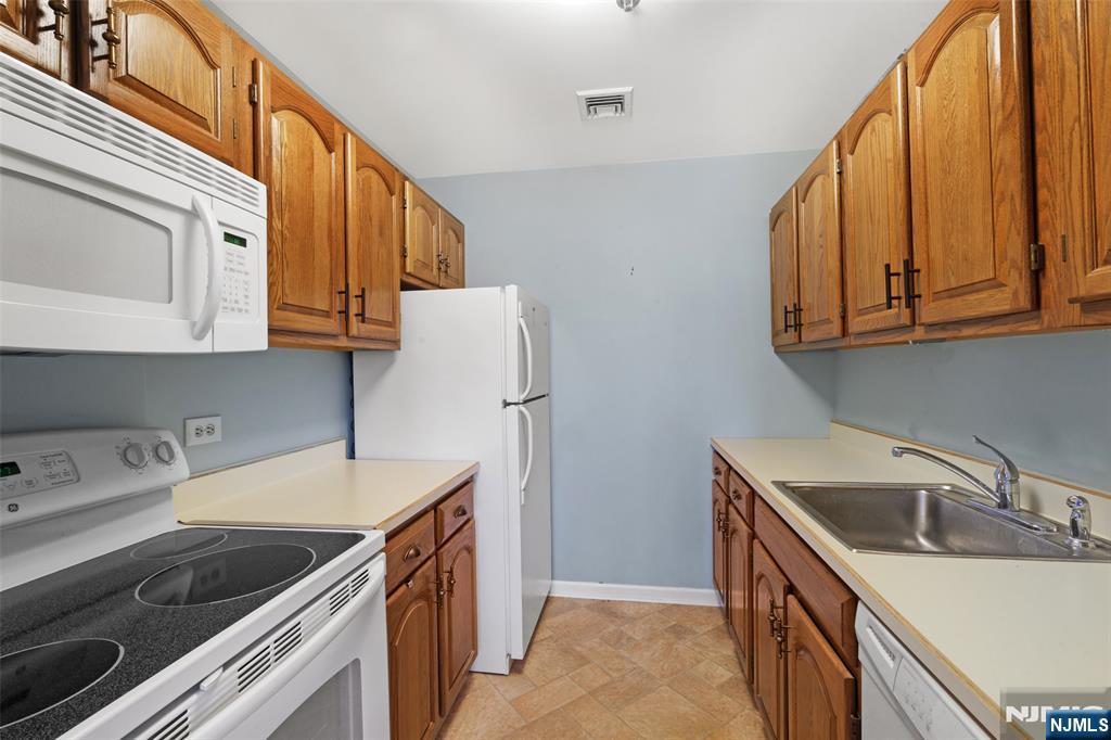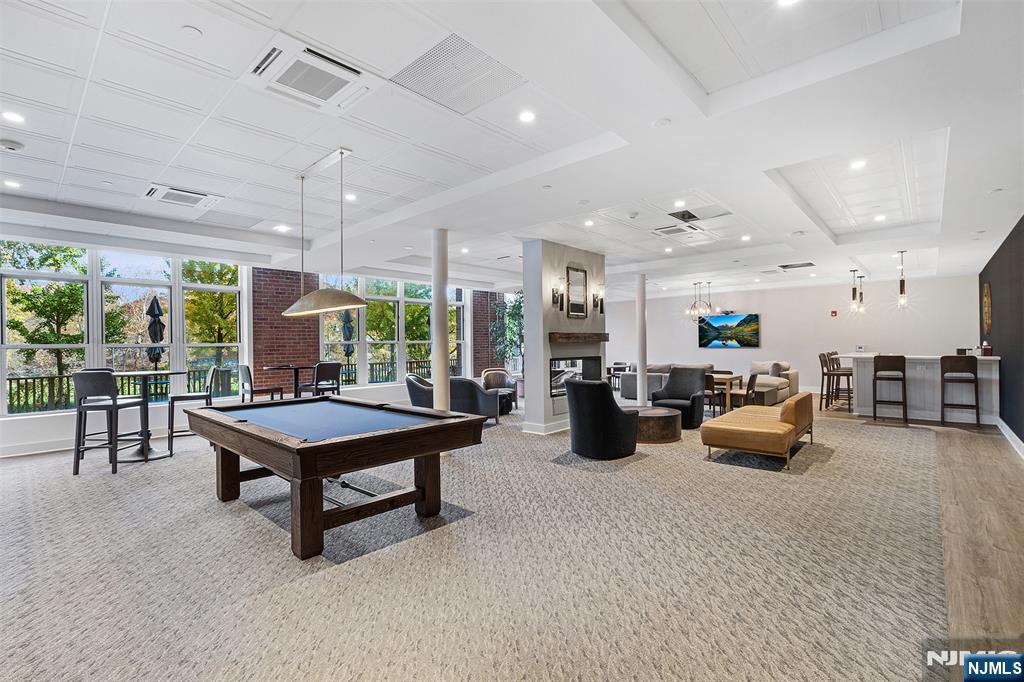 Set on the top floor, this waterfront condo at The Mill showcases classic industrial character and a well-proportioned layout. Exposed brick walls and hardwood floors define the main living space, anchored by a wood-burning fireplace that adds warmth and architectural interest. Oversized windows line the exterior wall, filling the home with natural light and offering peaceful views of the river and surrounding treetops. The living room is generously sized for both everyday living and entertaining, flowing naturally into a dedicated dining area. The kitchen is thoughtfully positioned just off the main living space, creating a functional separation while maintaining an open feel. A front foyer closet adds valuable storage, and in-unit laundry enhances everyday convenience. The bedroom is bright and comfortable, featuring tall windows and a spacious walk-in closet. Residents of The Mill enjoy an impressive array of amenities, including a state-of-the-art fitness center, a renovated community room, tennis courts, an in-ground swimming pool, scenic walking and jogging paths, and the plaza deck overlooking the waterfalls. Located near shops, restaurants, and NJ Transit bus and train options, this community offers easy access to NYC and Hoboken, making it an ideal choice for commuters seeking space, character, and convenience.