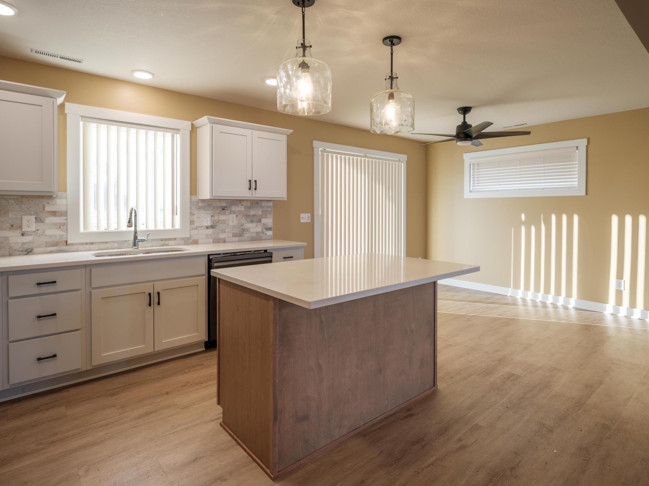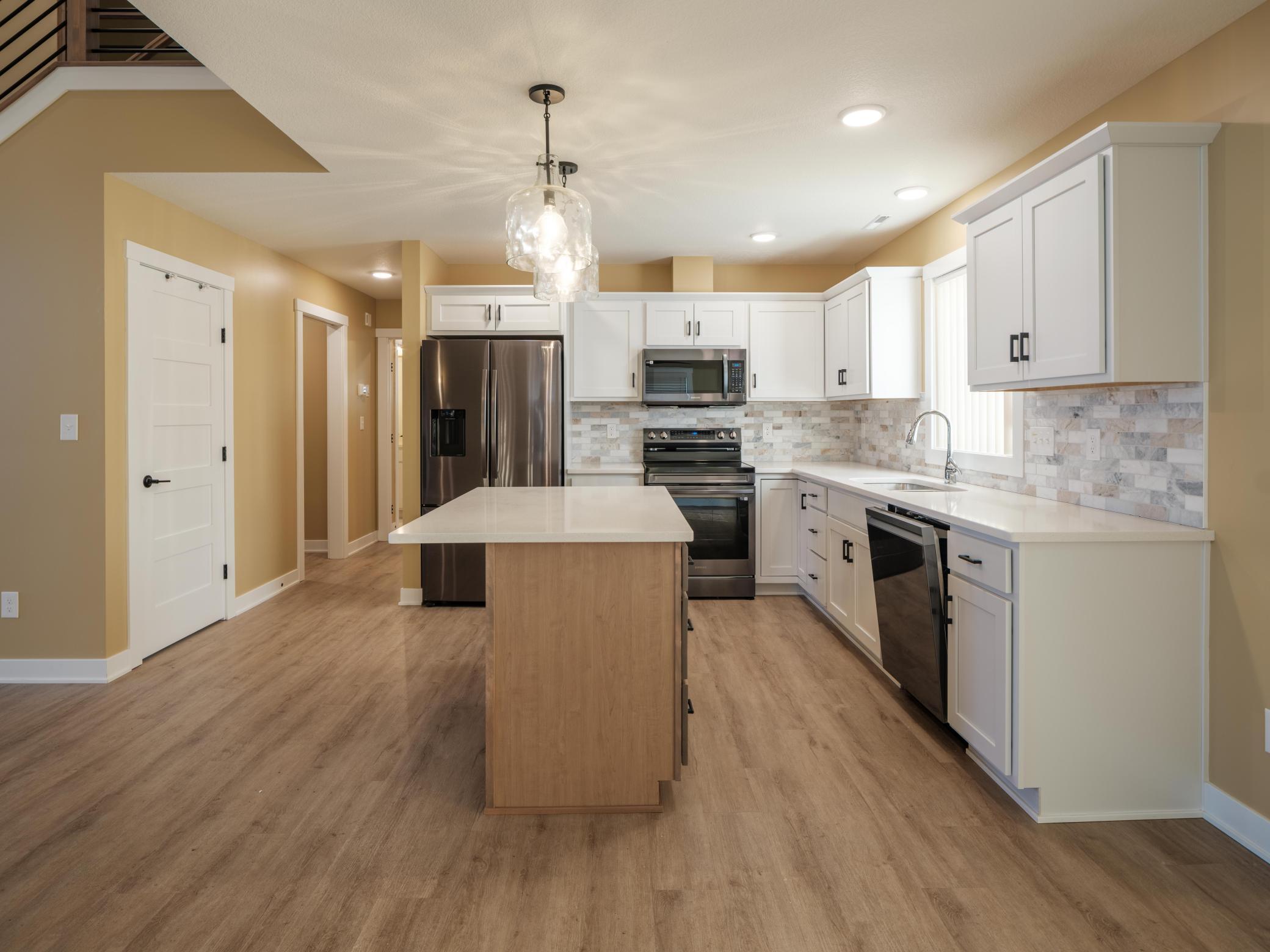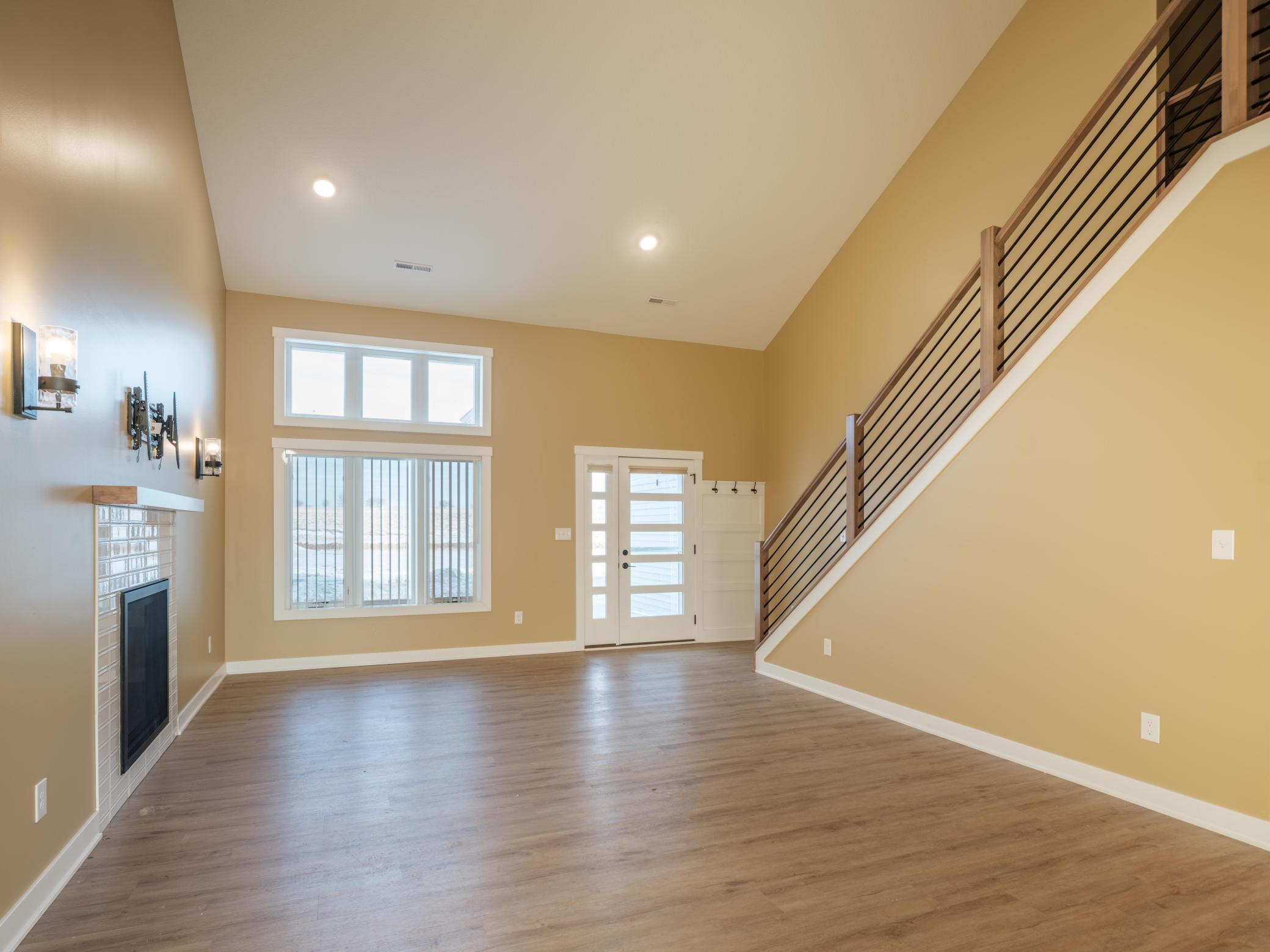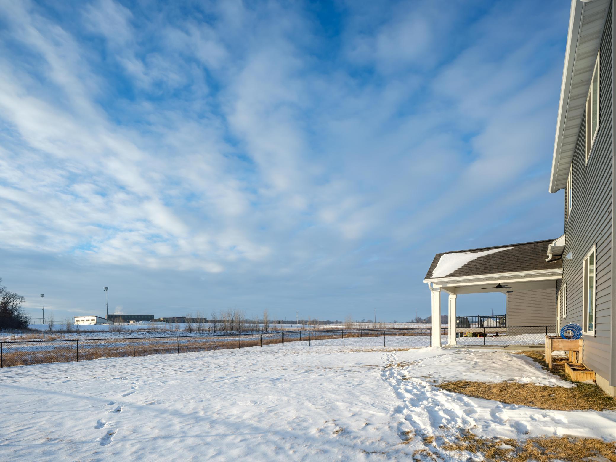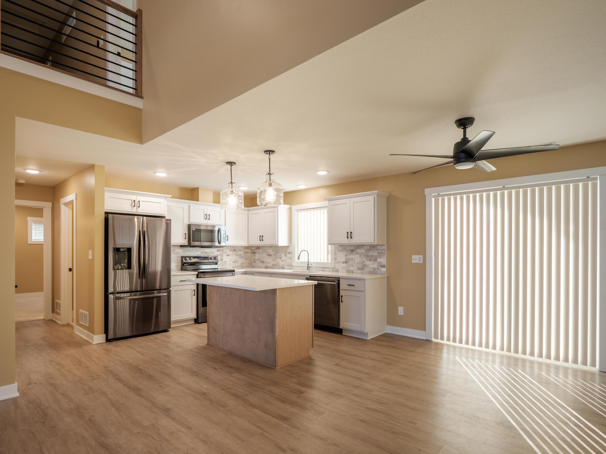 This warm and spacious three bedroom, 2.5 bath provides laundry, kitchen, living space, and primary bedroom on the first floor. Soak in the natural light in the freshly painted large, open living space through kitchen and warm up in front of the fireplace. The primary bed and bath offers comfortable space and privacy with elegant flooring and tile. Upstairs loft space can be used as a reading space, workout room, extra office, or hobby room. Built in 2024 with a large three car garage for ample parking and storage. You and your 4-legged friends can enjoy the security of a fully fenced in backyard while watching wildlife walk through the large open space to the south. Located just blocks from Pine Island Elementary School and the Douglas trail in a quiet and growing neighborhood, this is a must see. Be sure to check out the video walkthrough included in this listing with virtual staging!